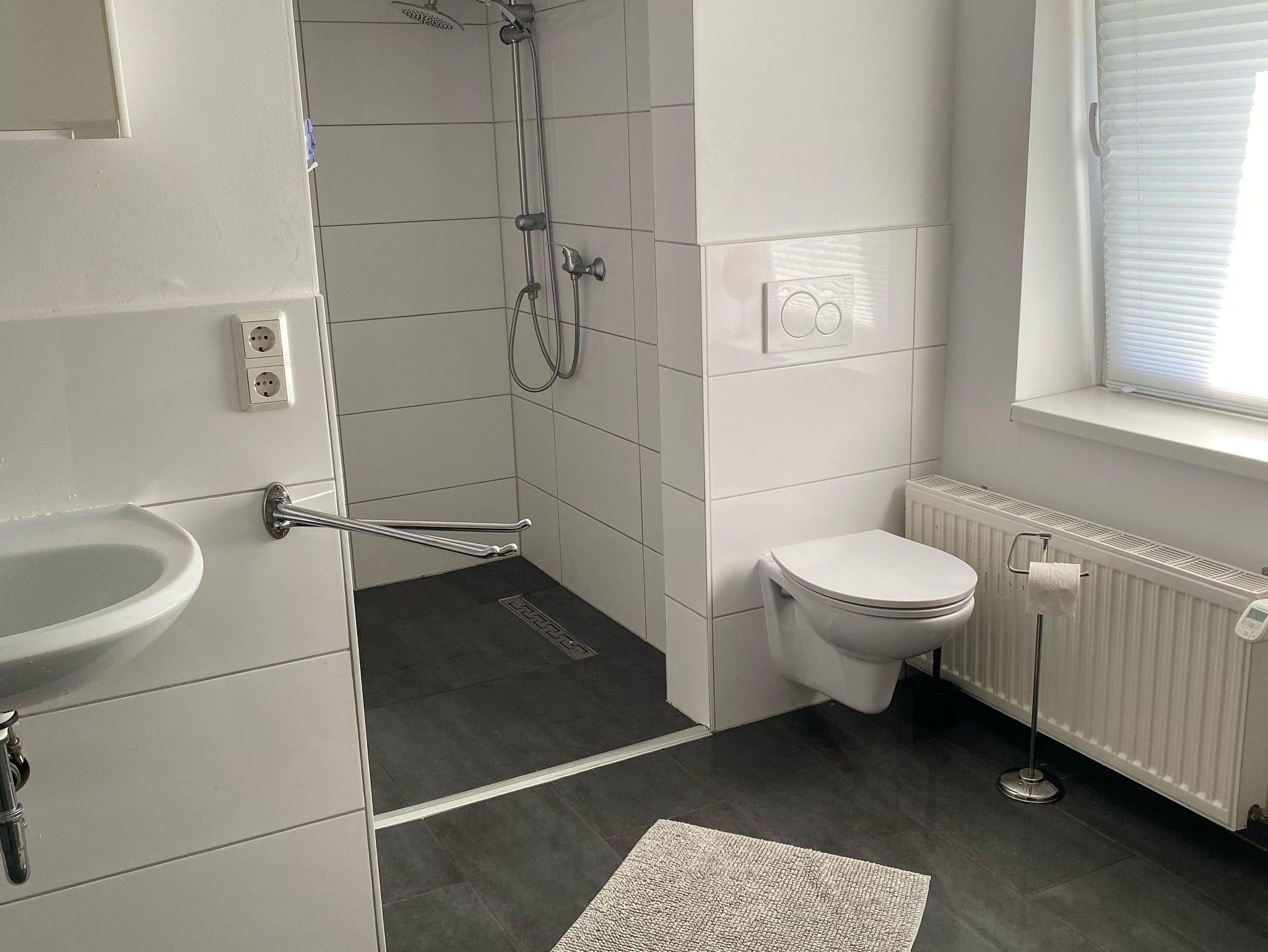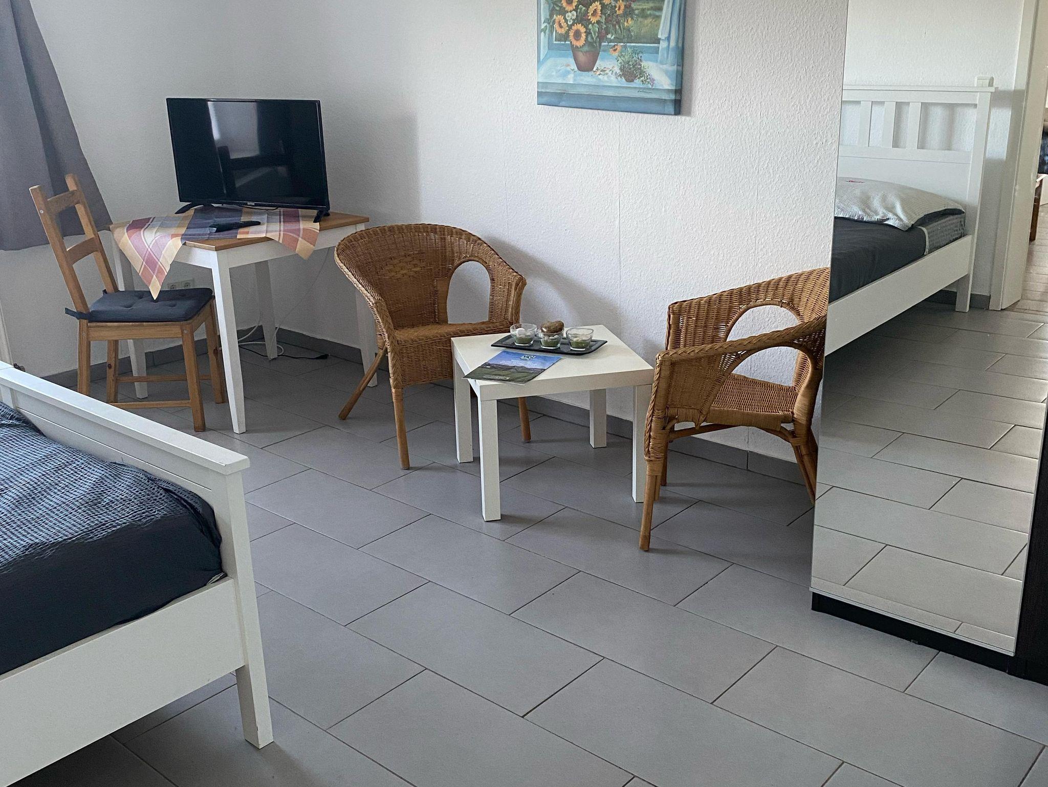 Die sonnige Terrasse lädt zum Entspannen ein, kostenlose Parkplätze befinden sich direkt am Haus. Eine Waschmaschine zur Mitbenutzung ist besonders praktisch bei längerem Verbleib. Dank der ruhigen Lage und der guten Anbindung an Gewerbegebiete und Autobahnen ist die Wohnung perfekt für berufliche Aufenthalte geeignet.