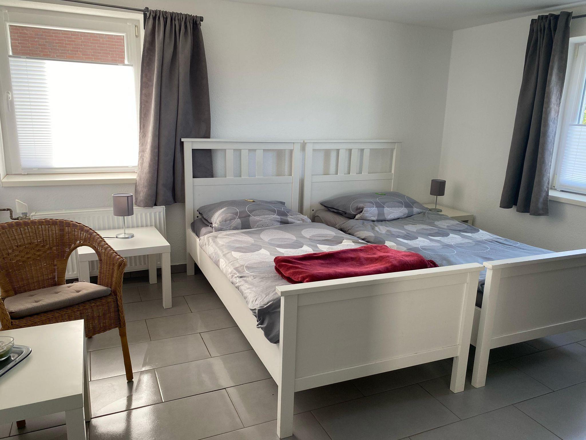 Die Ferienwohnung bietet zwei separate Schlafzimmer und ist damit ideal für Monteure oder Geschäftsreisende. Ein modernes Bad mit Dusche und WC sowie eine komplett ausgestattete Küche mit Sitzgelegenheit sorgen für Komfort im Alltag. ?