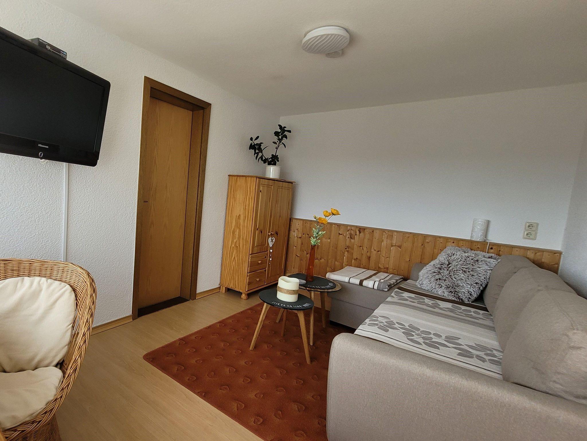Unsere Nichtraucherwohnung bietet Ihnen ein Schlafzimmer, ein Wohnzimmer, eine Wohnküche und ein Bad.