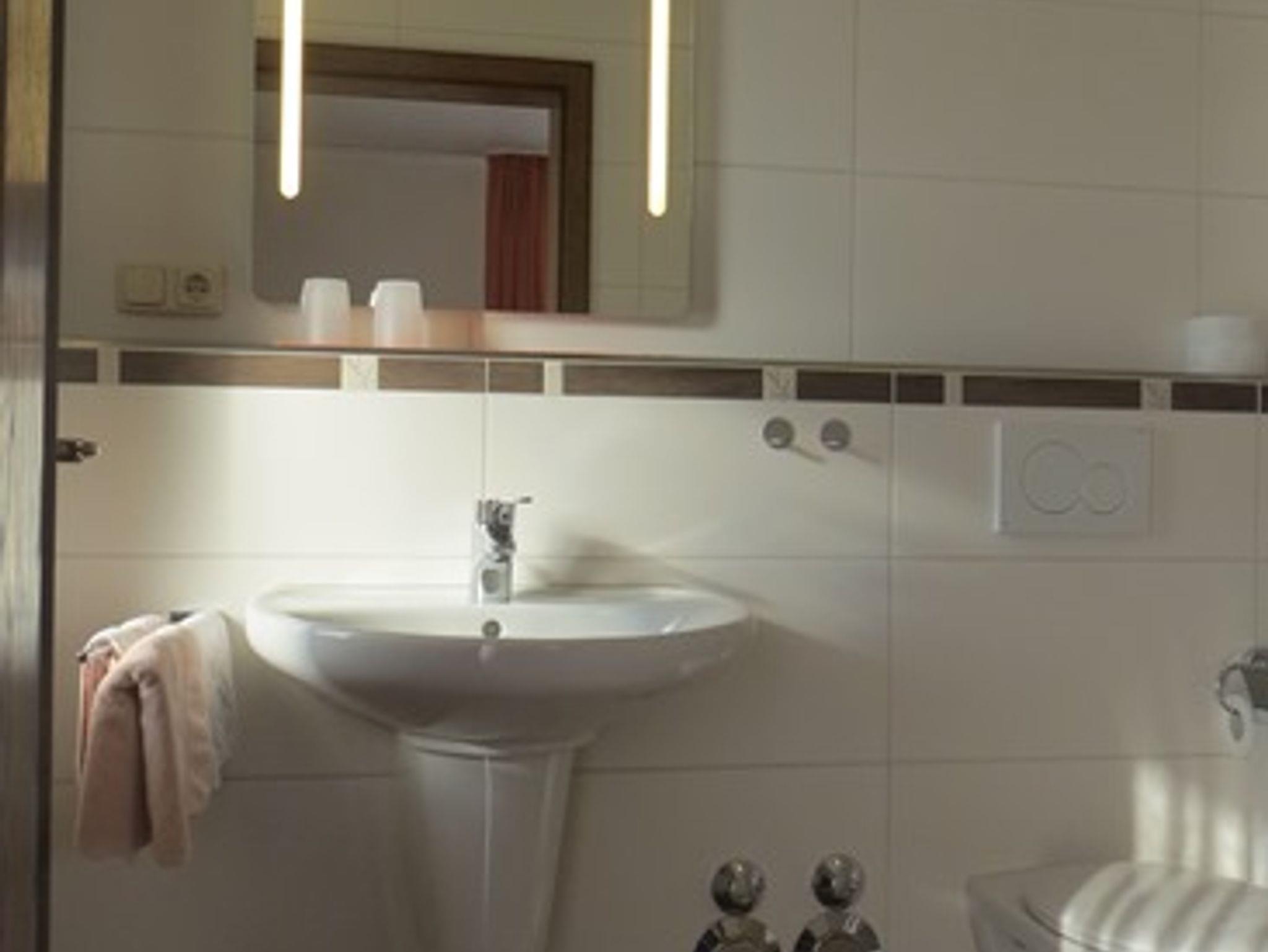 Das Badezimmer mit Dusche oder Badewanne, Fön + WC rundet das Gesamtbild ab.