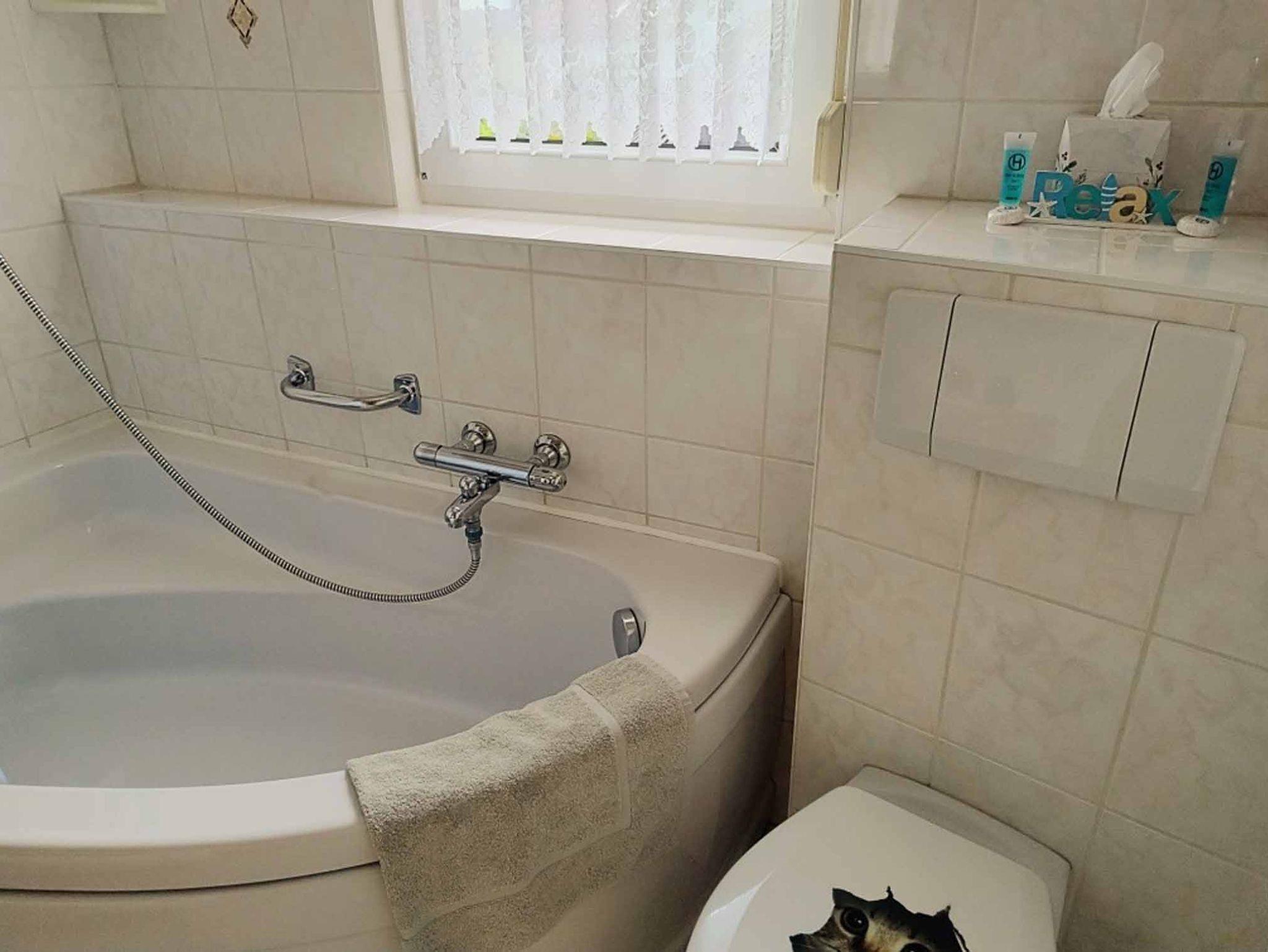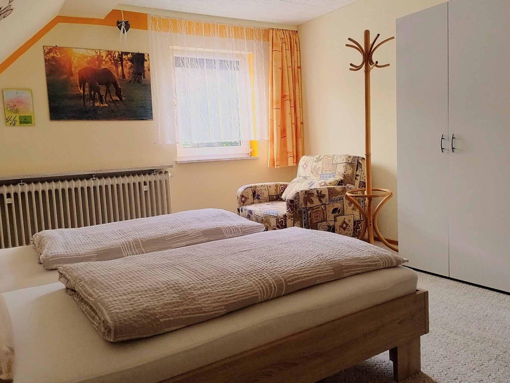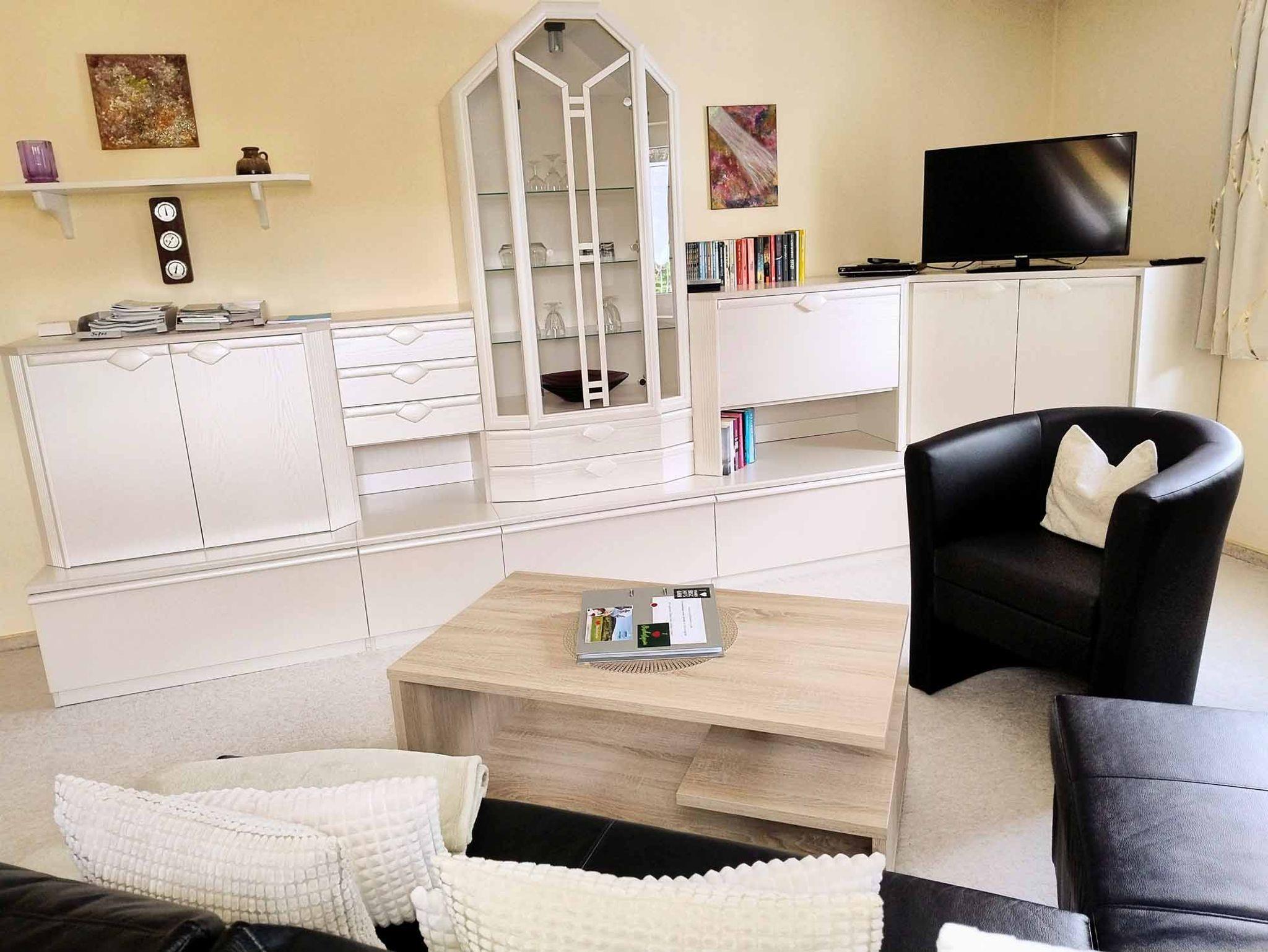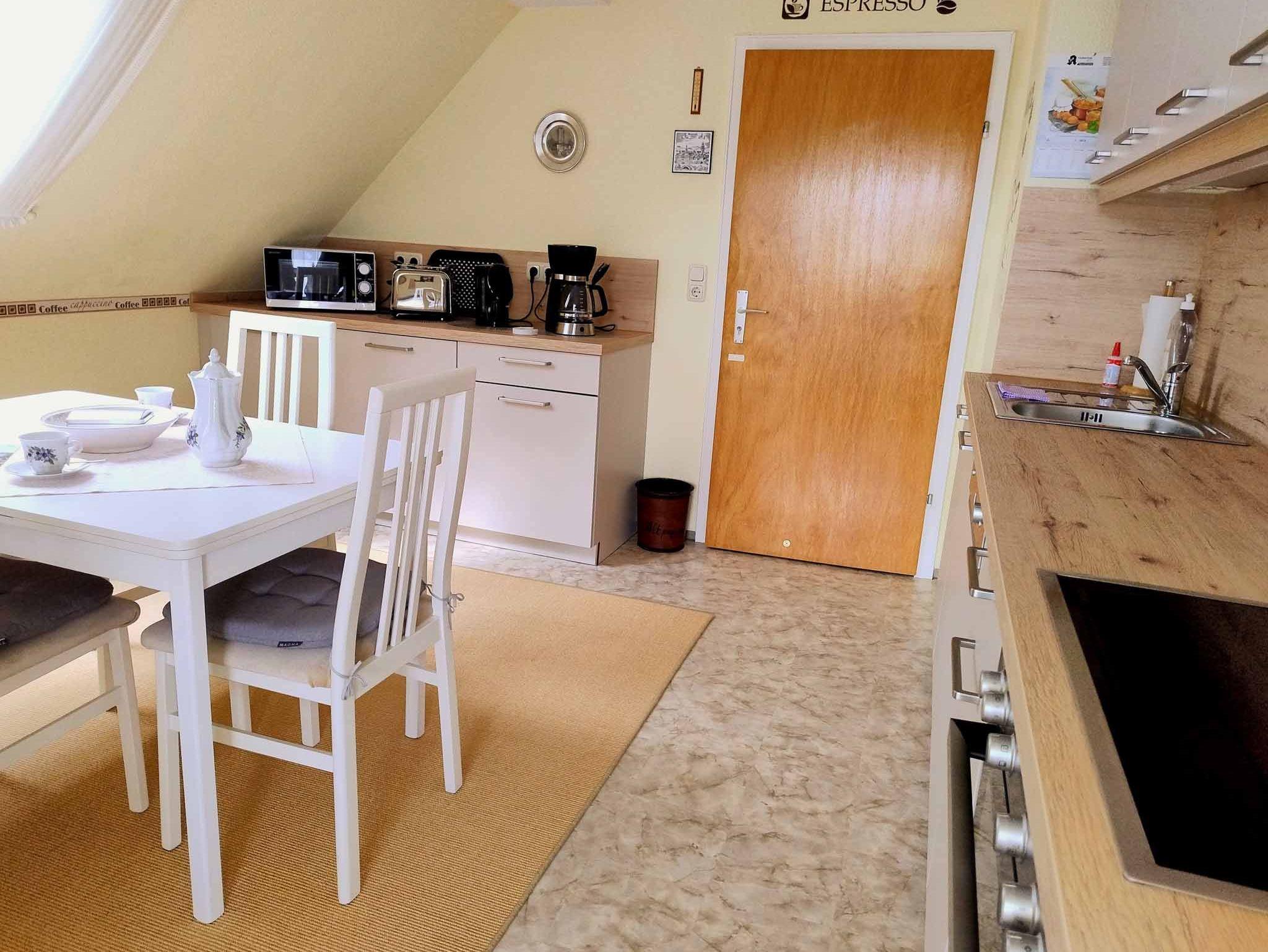 Die liebevoll eingerichtete Ferienwohnung liegt in der 2. Etage (Dachgeschoss) und erstreckt sich über eine Wohnfläche von 65 m2. Zusätzlich steht Ihnen ein Wintergarten (32 m2) zur Verfügung. Das Schlafzimmer verfügt über ein Doppelbett und einen Schreibtisch. Die Küche ist ausgestattet mit Kaffeemaschine, Kühlschrank, Mikrowelle, Kochfeld, Wasserkocher und Toaster. Im Wohnbereich finden Sie einen Fernseher, Couch und DVD-Player. Das Bad verfügt über eine Dusche/Badewanne, WC und Föhn.