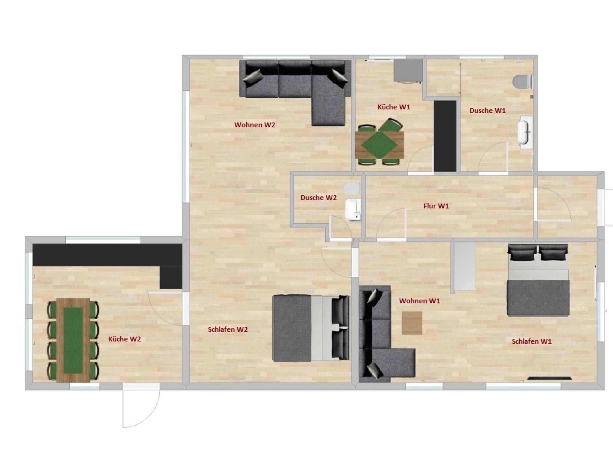 4-6 Personen: 2 Schlafzimmer, 1 Dusche/WC, 1 Küche und 2 Wohnzimmer mit Schlafcouch. (94 m2)