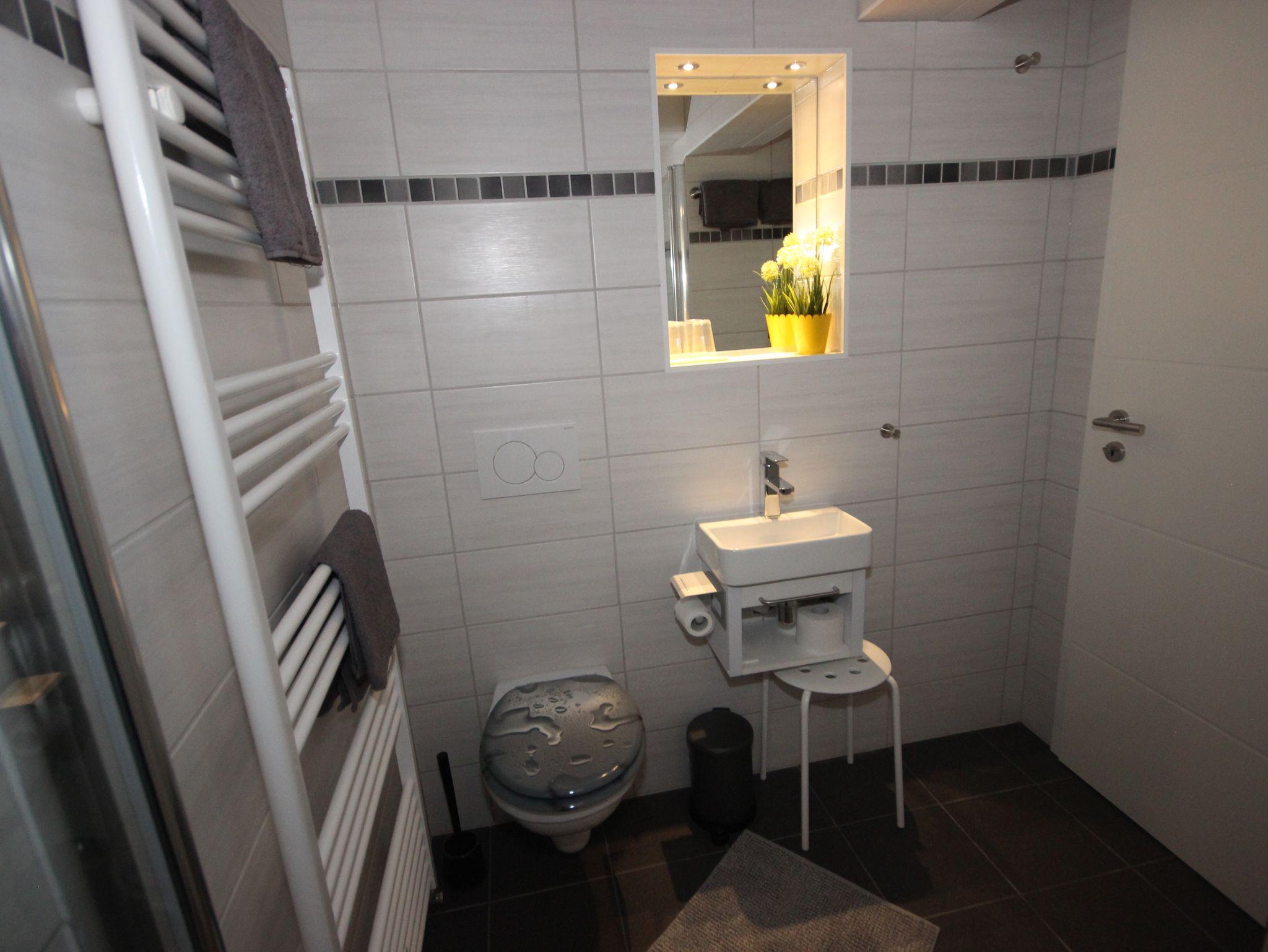 1-3 Personen: 1 Schlafzimmer, 1 Dusche/WC, 1 Küche und 1 Wohnzimmer mit Schlafcouch. (54 m2)