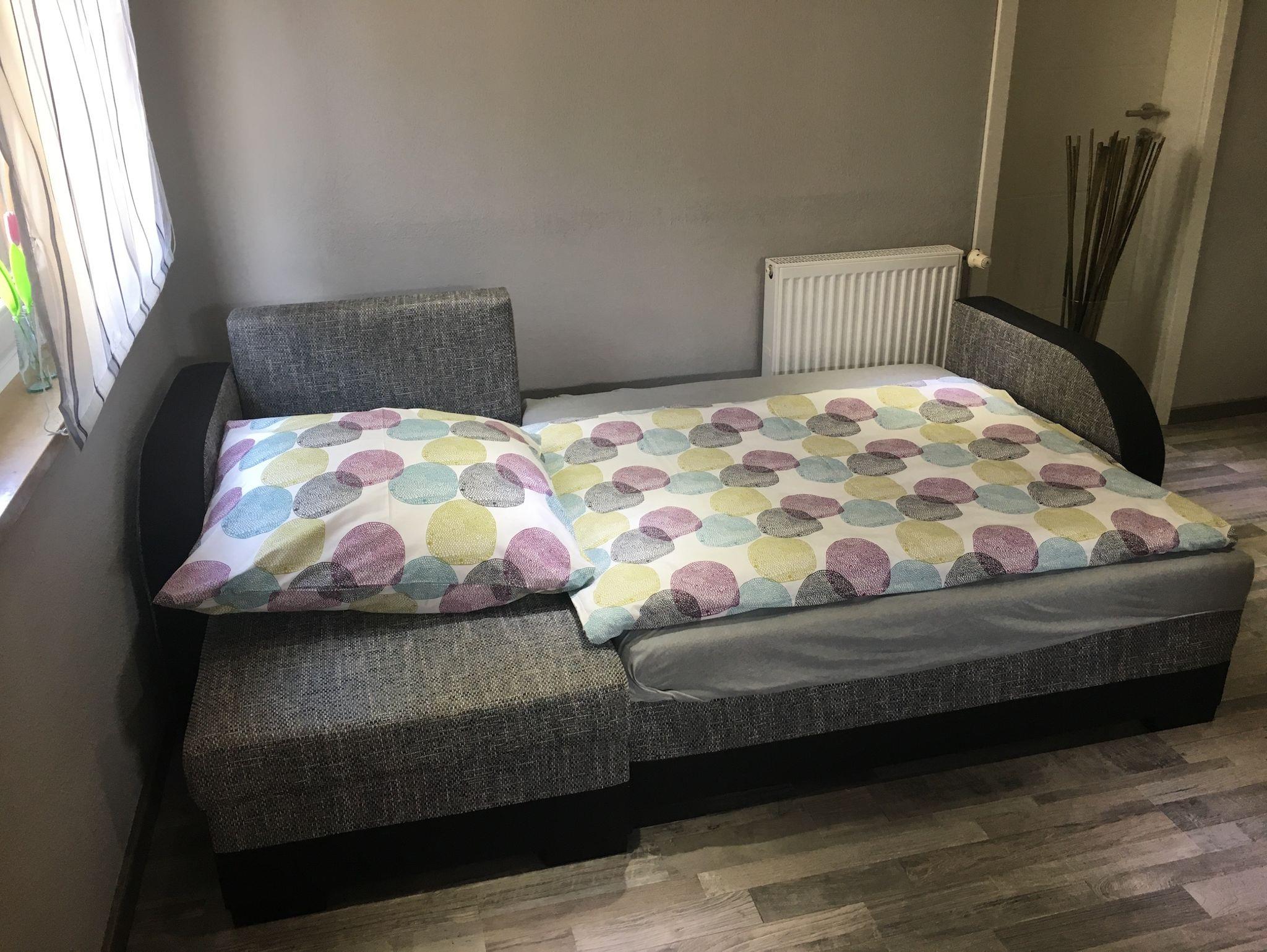 Schlafzimmer: Bettwäsche ist vorhanden. Babybett vorhanden.