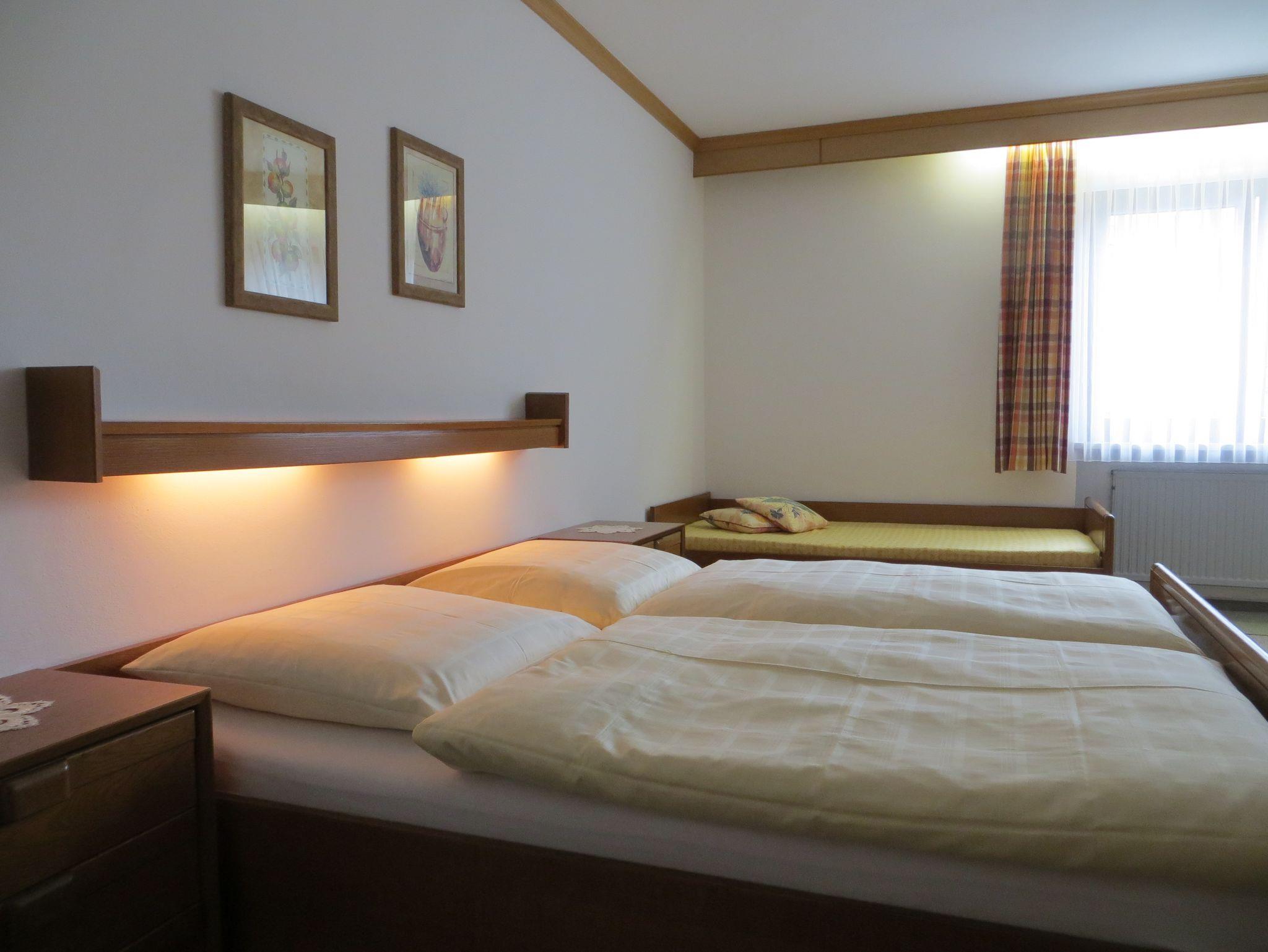 Wir bieten Ihnen ein gemütliches, helles und geräumiges Doppelzimmer, das auch als Dreibettzimmer genutzt werden kann!