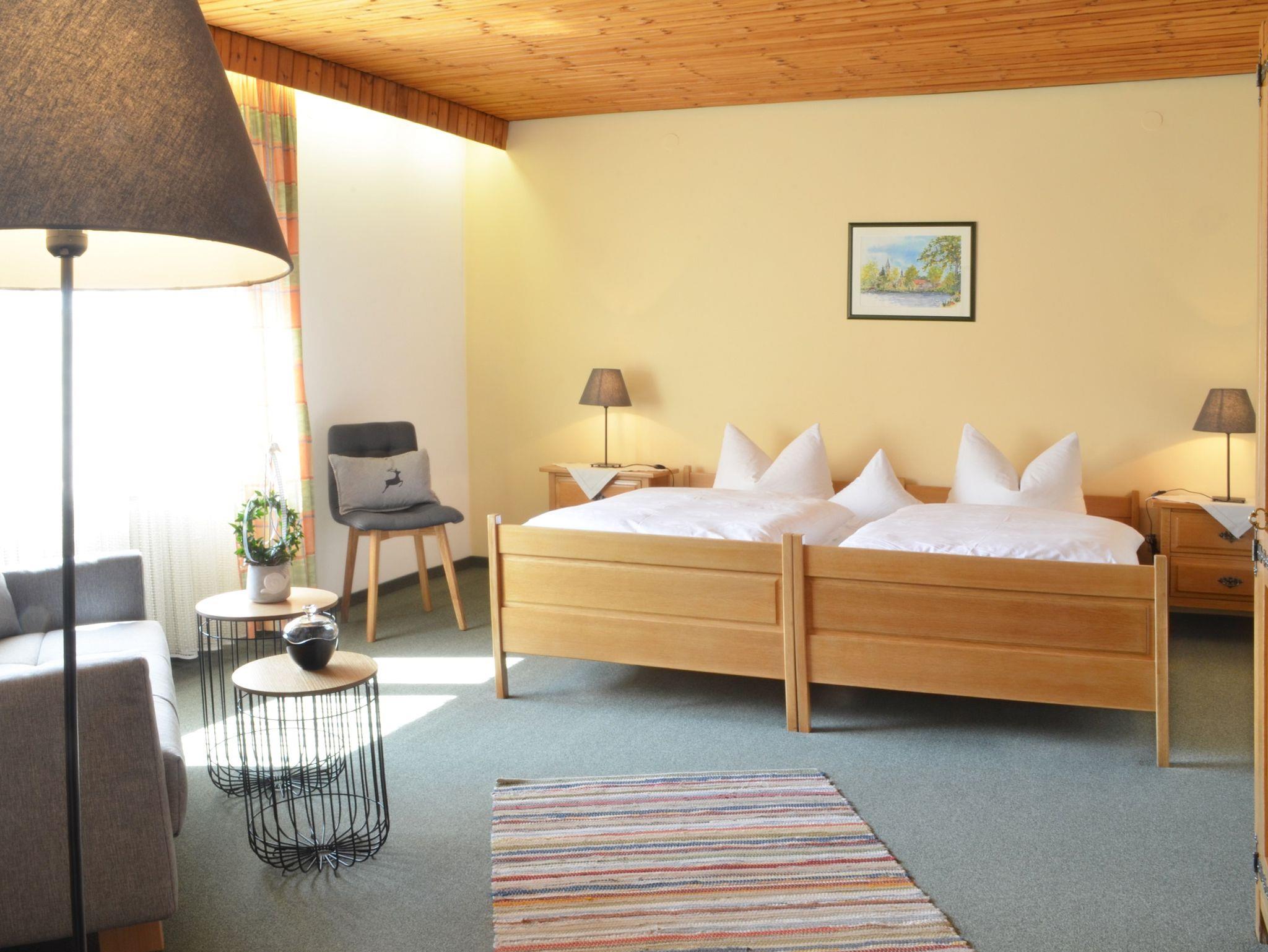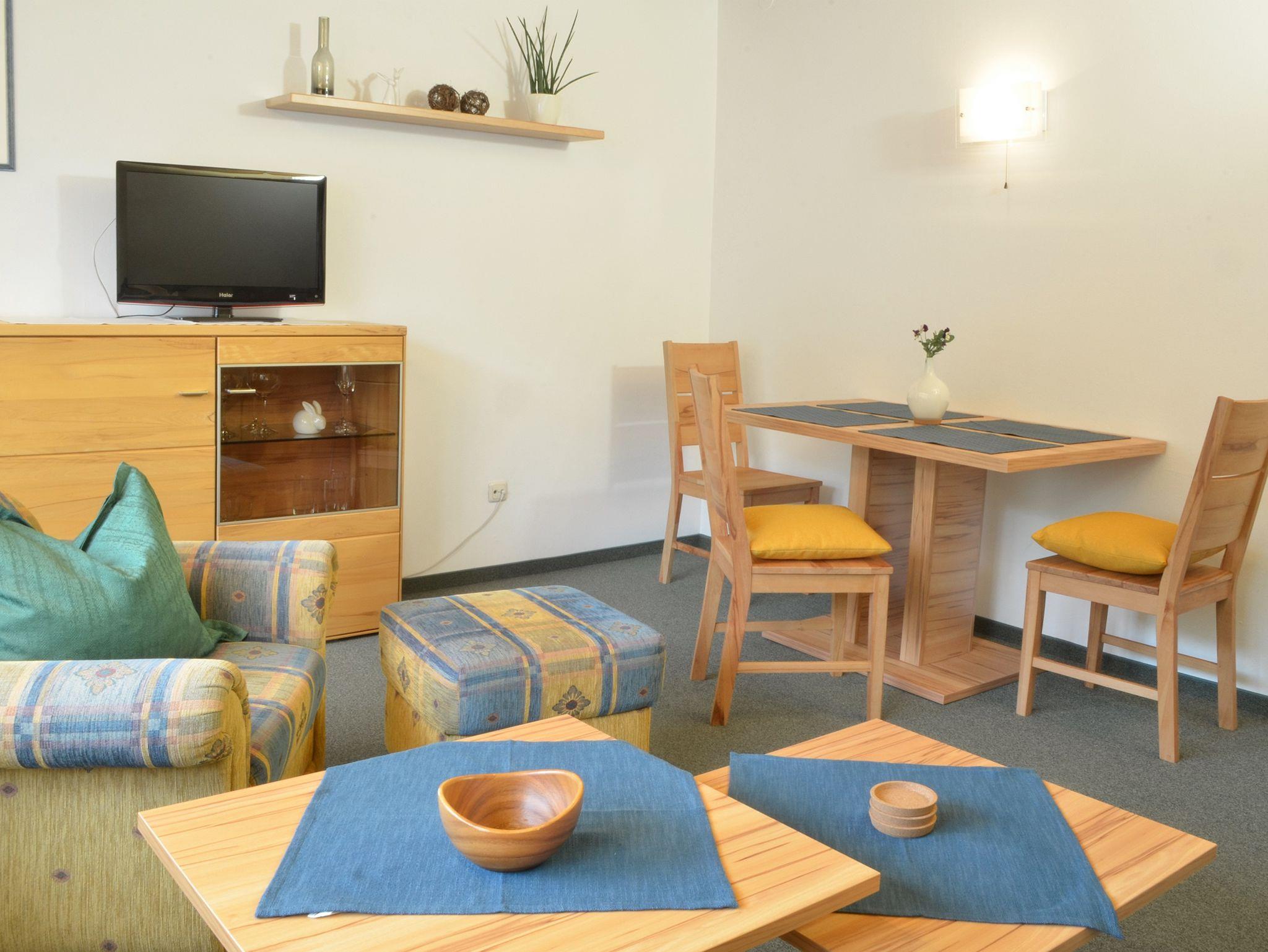 Bei Bedarf kann ZIMMER-NR. 9 - Tür an Tür zur Fewo - mit Schlafmöglichkeiten für 1 Erwachsenen oder 2 Kinder bis 14 Jahre, zugebucht werden! Das Wohn- und Esszimmer der Fewo bietet ausreichend Platz für max. 2 weitere Personen.