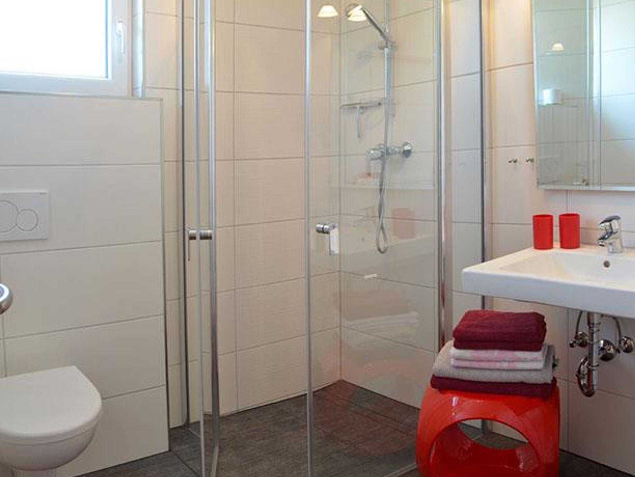 4 Ferienwohnungen haben eine eingerichtete Südterrasse oder Südwest-Terrasse und begehbare Duschen.