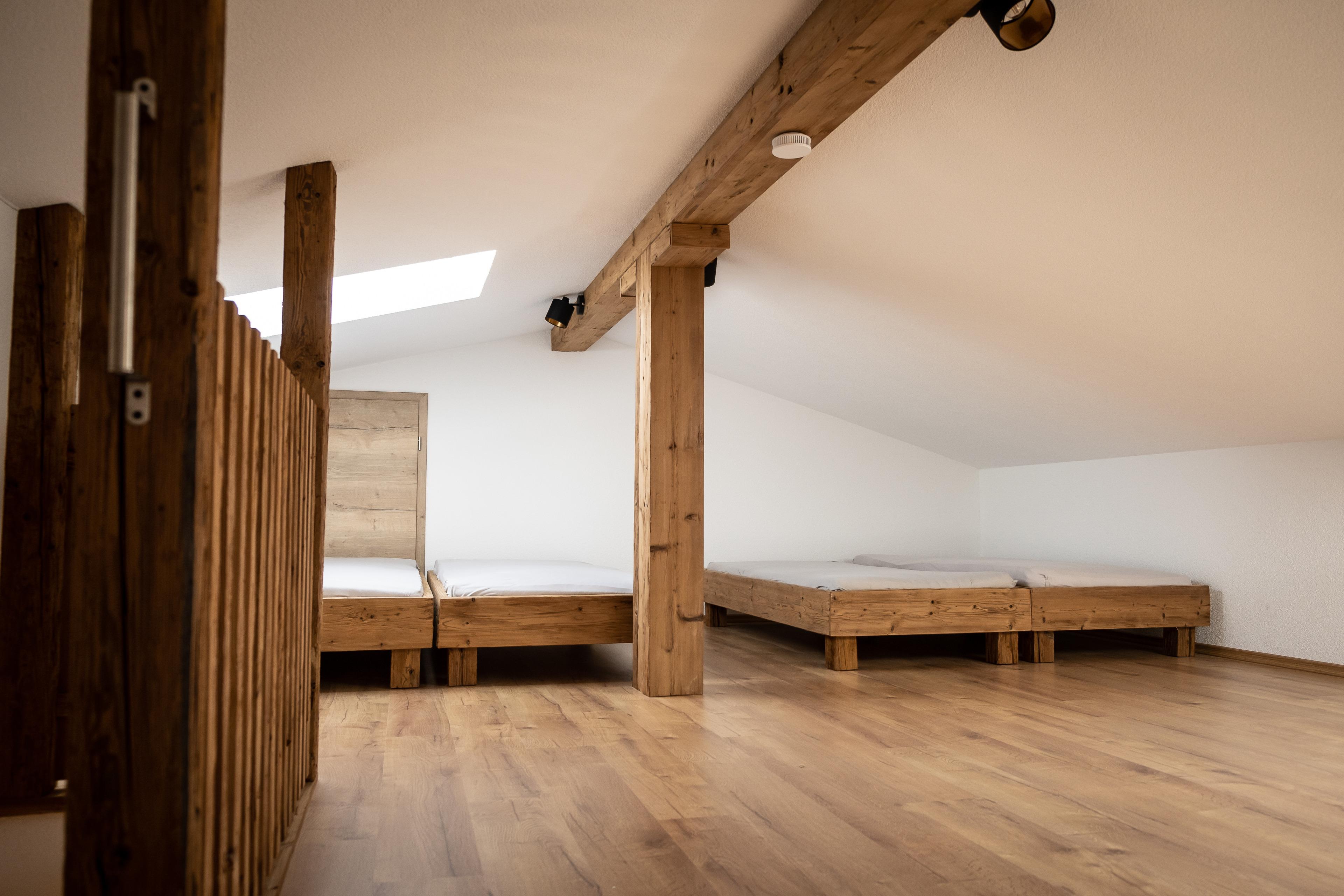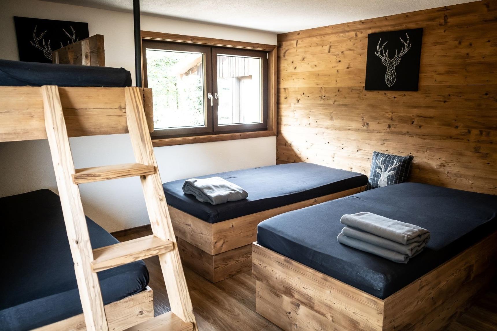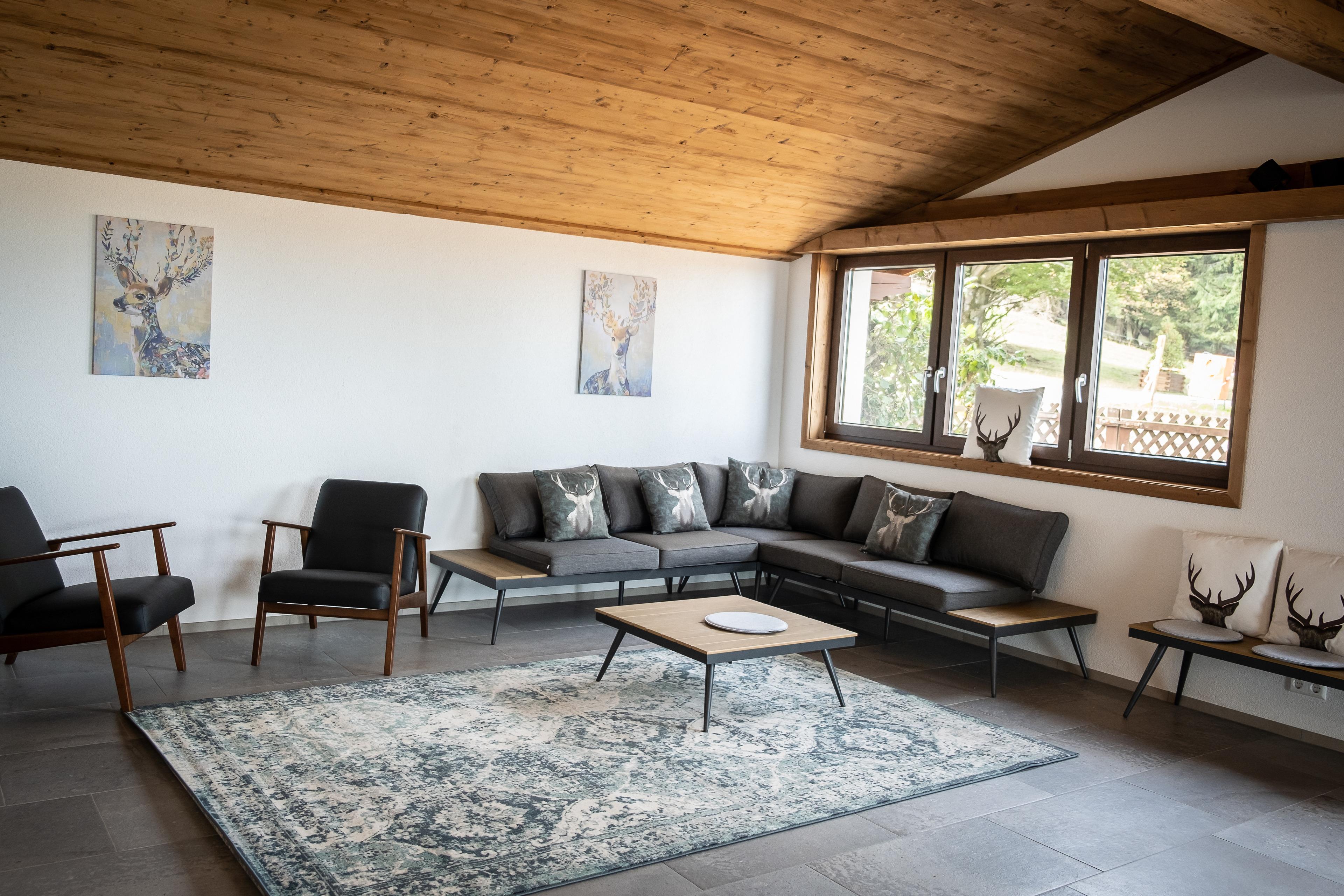 Unter anderem ausgestattet mit insgesamt 4 Schlafräumen mit je 4-5 Schlafplätzen und einem hochwertigem Matratzenlager mit romantischer Aussicht auf den Sternenhimmel, bietet unser Chalet somit Platz für maximal 20 Personen. Eine vollausgestattete und großzügige Küchenzeile im offenen Wohn- und Essbereich lädt zum gemeinsamen Kochen und Verweilen vor einer großen Panoramascheibe ein. Für die richtige Atmosphäre und Gemütlichkeit sorgt ein Holzofen mit Glasscheibe im Wohnbereich sowie ein Grillplatz mit Feuerstelle auf der großzügigen Außenfläche vor der Alm. Insgesamt verfügt die Alm über 3 moderne Bäder mit großer Panoramadusche. Für Kinder steht ein kleiner Spielplatz zur Verfügung. Von der Haflinger Alm aus können Sie viele schöne Wanderungen durch die Rhön starten, oder im Winter Ski fahren. Eine kostenfreie Parkmöglichkeit befindet sich direkt vor dem Chalet. Nach ca. 6,5 km erreichen Sie die kleine Stadt Bischofsheim mit einer schönen Altstadt und Einkaufsmöglichkeiten.