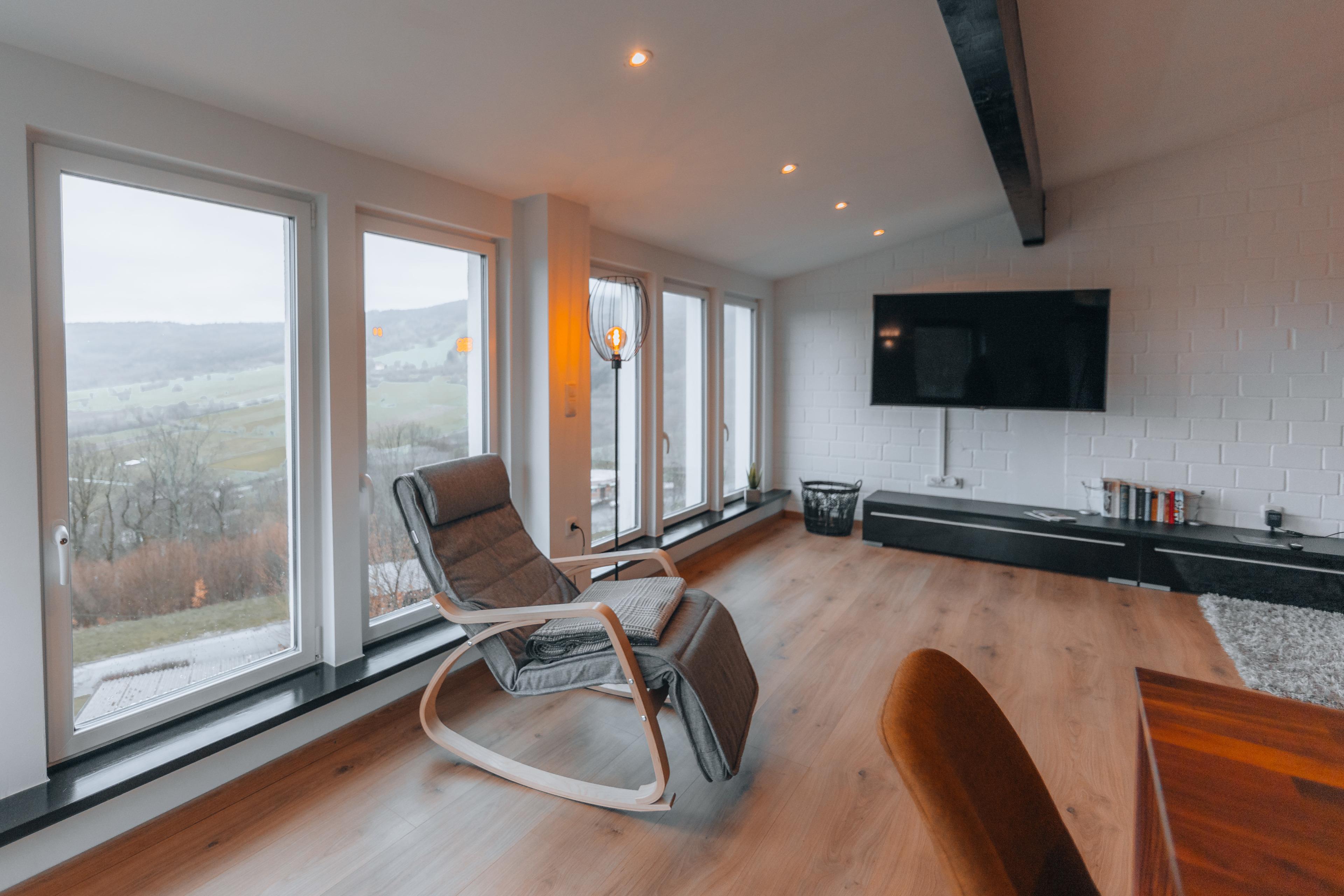 Das Ferienhaus wurde 2022 frisch renoviert & stylisch eingerichtet und befindet sich mitten im Ferienpark Haselbach. An schönen Tagen kann man sich auf eine Aussicht vom Haus bis zu 100 km in die Ferne freuen- in jedem Fall hast du hier einen tollen Blick zum Kreuzberg - Abfahrt „Kanonenrohr“ - Dreitannenlift. Von unserer Terrasse aus hast du zusätzlich noch direkten Blick auf die Kreuzbergschanze. Die liegt nämlich nur ca. 1200 Meter von der Ferienwohnung entfernt (Skisprungschanze Kreuzberg- Haselbach) und ein Fussweg von ca. 15min. führt direkt dort hin.