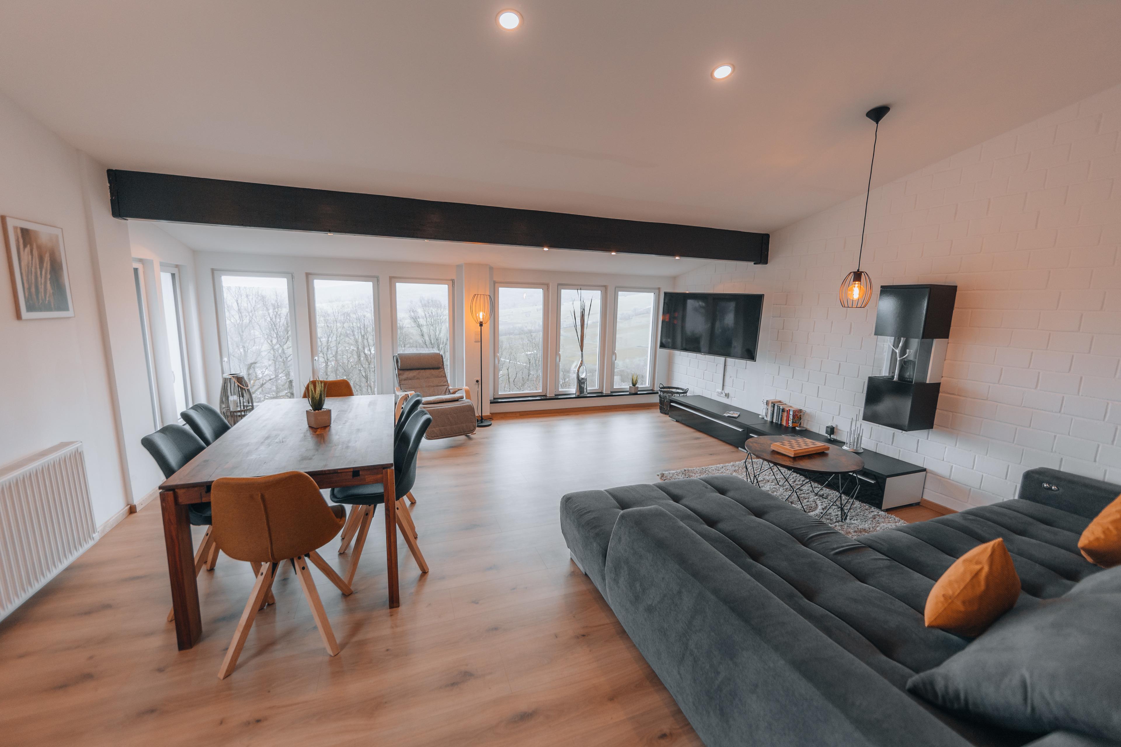 Das Ferienhaus wurde 2022 frisch renoviert & stylisch eingerichtet und befindet sich mitten im Ferienpark Haselbach. An schönen Tagen kann man sich auf eine Aussicht vom Haus bis zu 100 km in die Ferne freuen- in jedem Fall hast du hier einen tollen Blick zum Kreuzberg - Abfahrt „Kanonenrohr“-Dreitannenlift. Von unserer Terrasse aus hast du zusätzlich noch direkten Blick auf die Kreuzbergschanze. (Skisprungschanze Kreuzberg- Haselbach) und ein Fussweg von ca. 15min. führt direkt dort hin.