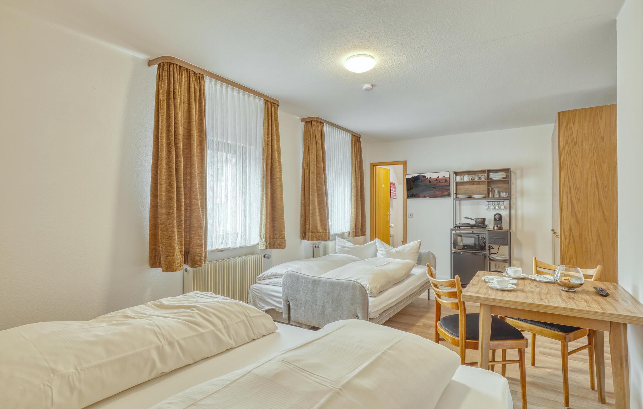 Tilbring nogle afslappende dage i jeres ferielejlighed nær Bischofsheim. Træd ind og føl jer straks hjemme. Lejligheden byder på en rummelig dobbeltseng og en komfortabel sovesofa til to ekstra gæster. Et praktisk te-køkken står til jeres rådighed, ideelt til små måltider eller en afslappet te om eftermiddagen. Det lille stuebord lægger op til at blive hængende og planlægge jeres ferieaktiviteter sammen. Afslut jeres ferie komfortabelt med en god film og nyd den venlige atmosfære i jeres lejlighed.