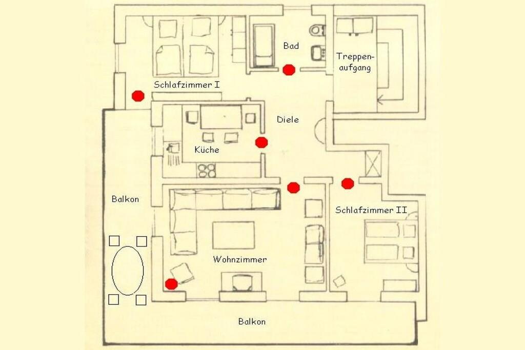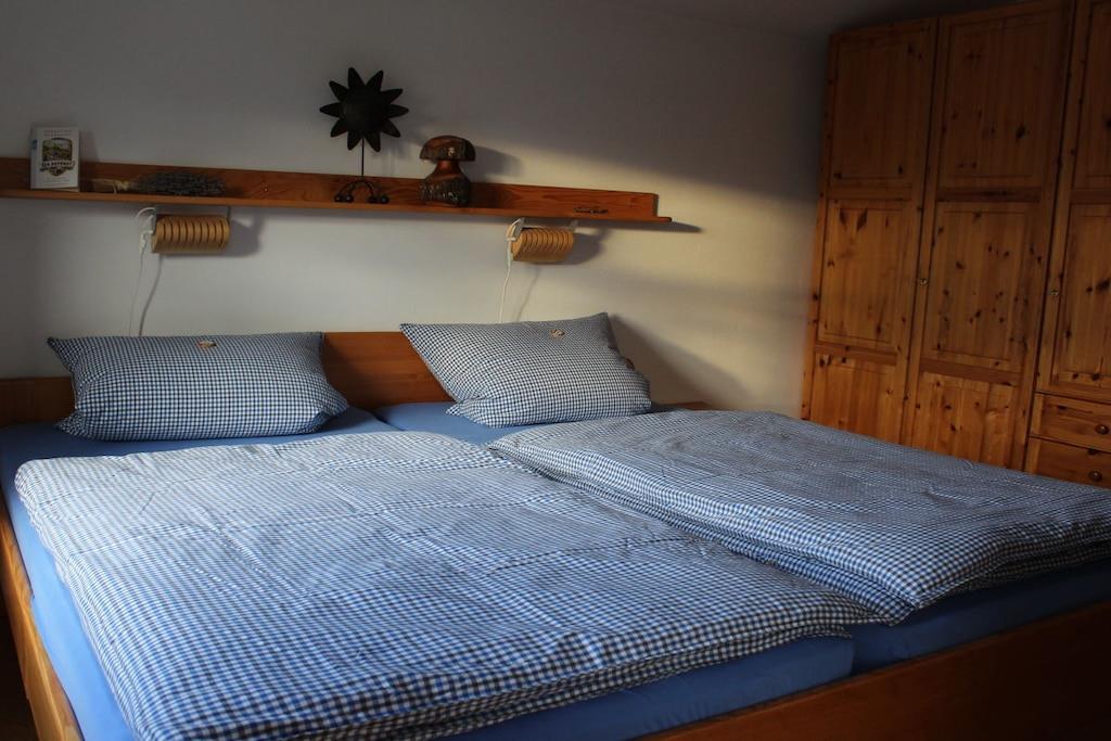 Freundliche und helle Ferienwohnung mit viel Platz zum Lesen, Spielen, Lümmeln. Die Schlafräume wurden mit Kiefermassivholzmöbeln, Korkfußboden und Netzfreischaltung ausgestattet. Ein großer Balkon mit Sitz- und Liegemöglichkeiten lädt zum Relaxen bei schönem Wetter ein. Wir sind seit einigen Jahren von effektiven Mikroorganismen (kurz EM) begeistert und reinigen natürlich auch die Räume unserer Gäste mit diesen chemiefreien Reinigungsmitteln. Alle Räume haben Fußbodenheizung. Die komplett eingerichtete Küche mit Mikrowelle und Spülmaschine begeistert unsere Gäste immer wieder. Natürlich sind ausreichend Hand-, Dusch- und Geschirrtücher und Bettwäsche und Reservekissen (Nacken- bzw Dinkel) vorhanden. Natürlich können wir Ihnen auf Wunsch WLAN und eine Waschmaschine zur Verfügung stellen. Wir freuen uns auf Ihren Besuch!