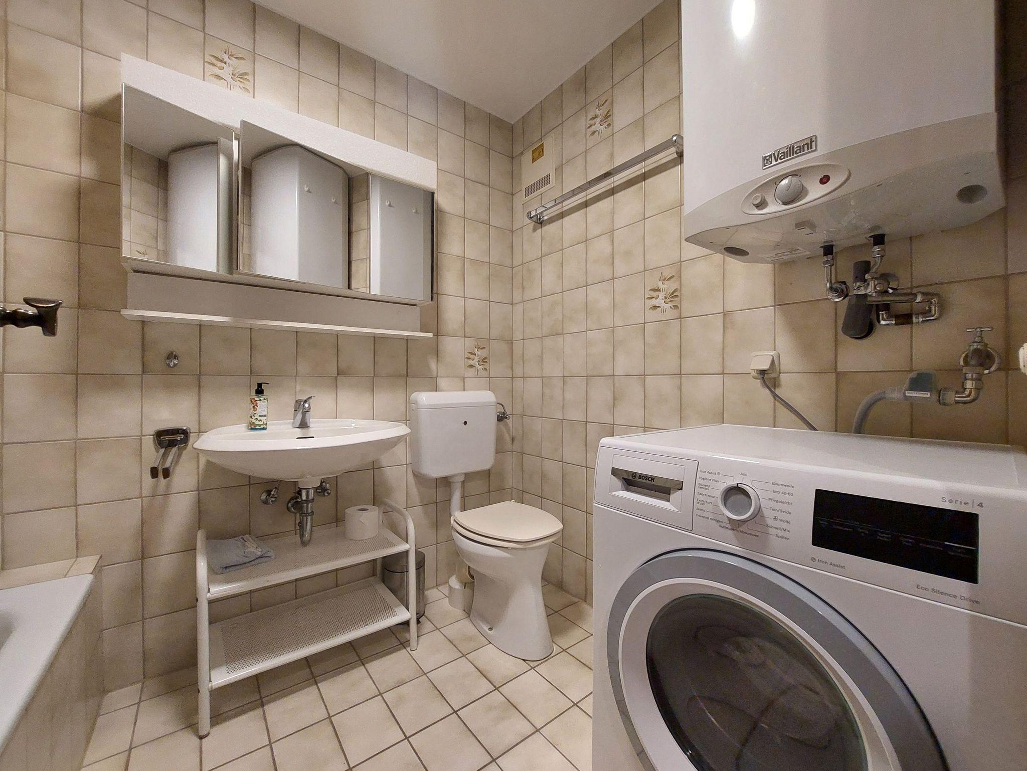 • Bad mit WC, Badewanne mit Duschvorhang, Haarfön, Waschmaschine;