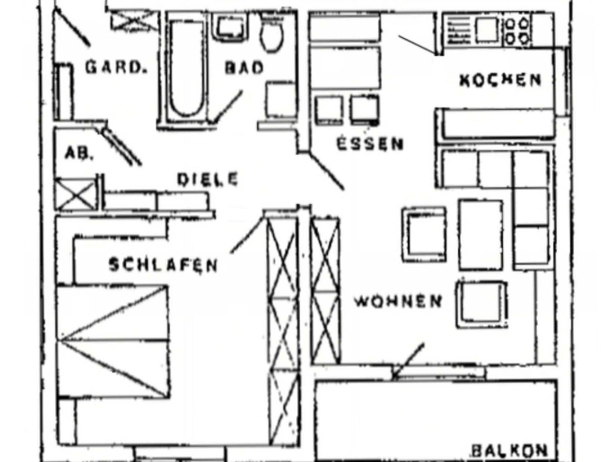 Die Wohnung wurde im Jahr 2024 frisch renoviert und teilweise neu ausgestattet. Die Wohnung Nr. 24 im 2 Obergeschoss verfügt über 1 Schlafzimmer mit Doppelbett (180 x 200), 1 Flur, 1 Küche, 1 Badezimmer mit Badewanne Waschmaschine, 1 Wohnzimmer mit Essplatz und Zugang zum Balkon.