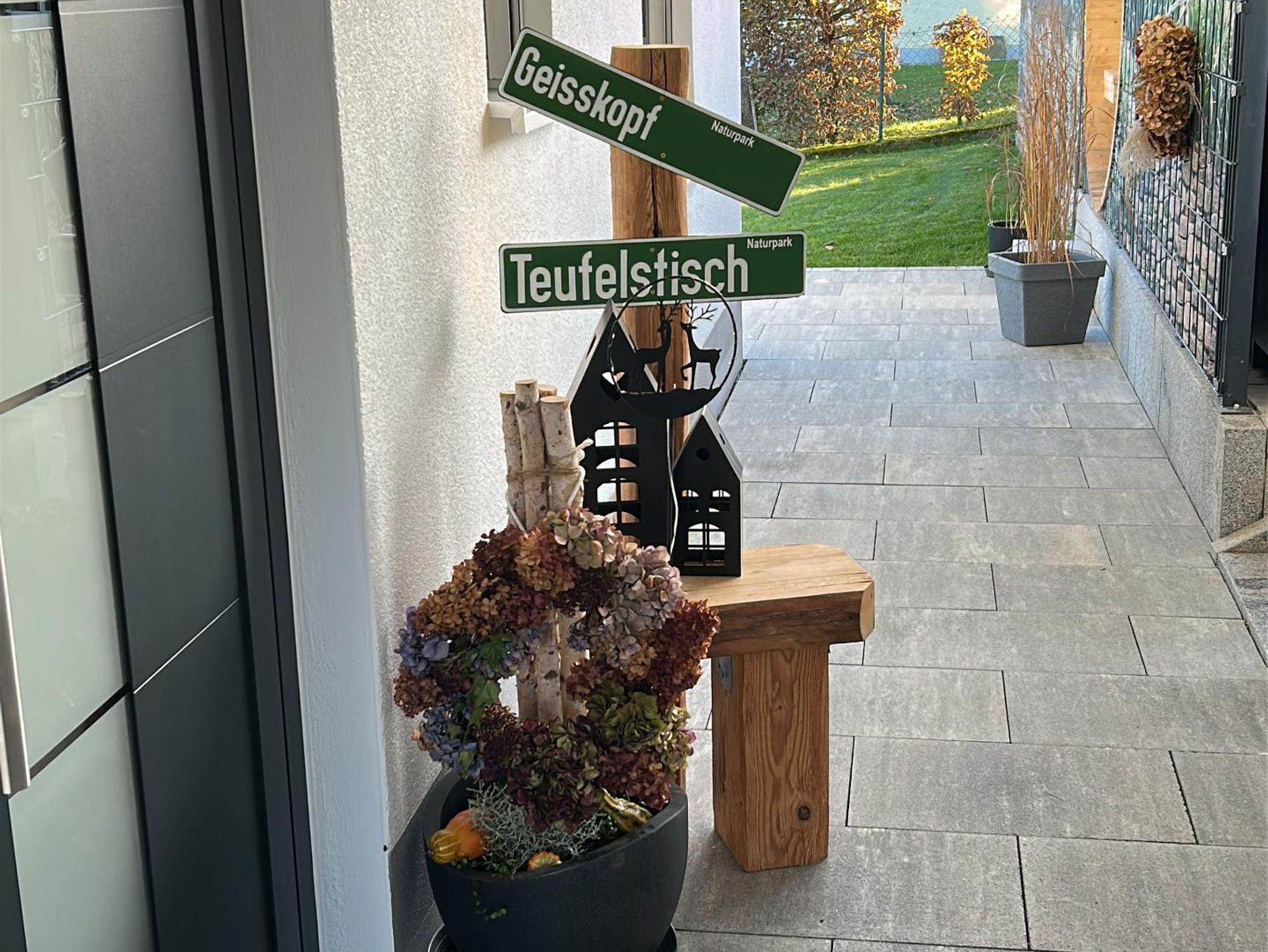Der Geißkopf, im Sommer mit Bikepark, Bogenschießen und Wanderungen, im Winter mit Skifahren, Langlaufloipen und Schlittenbahn ist ca. 4km entfernt. Wanderungen, z.B. zum Teufelstisch, sind ab dem Ferienhaus möglich.