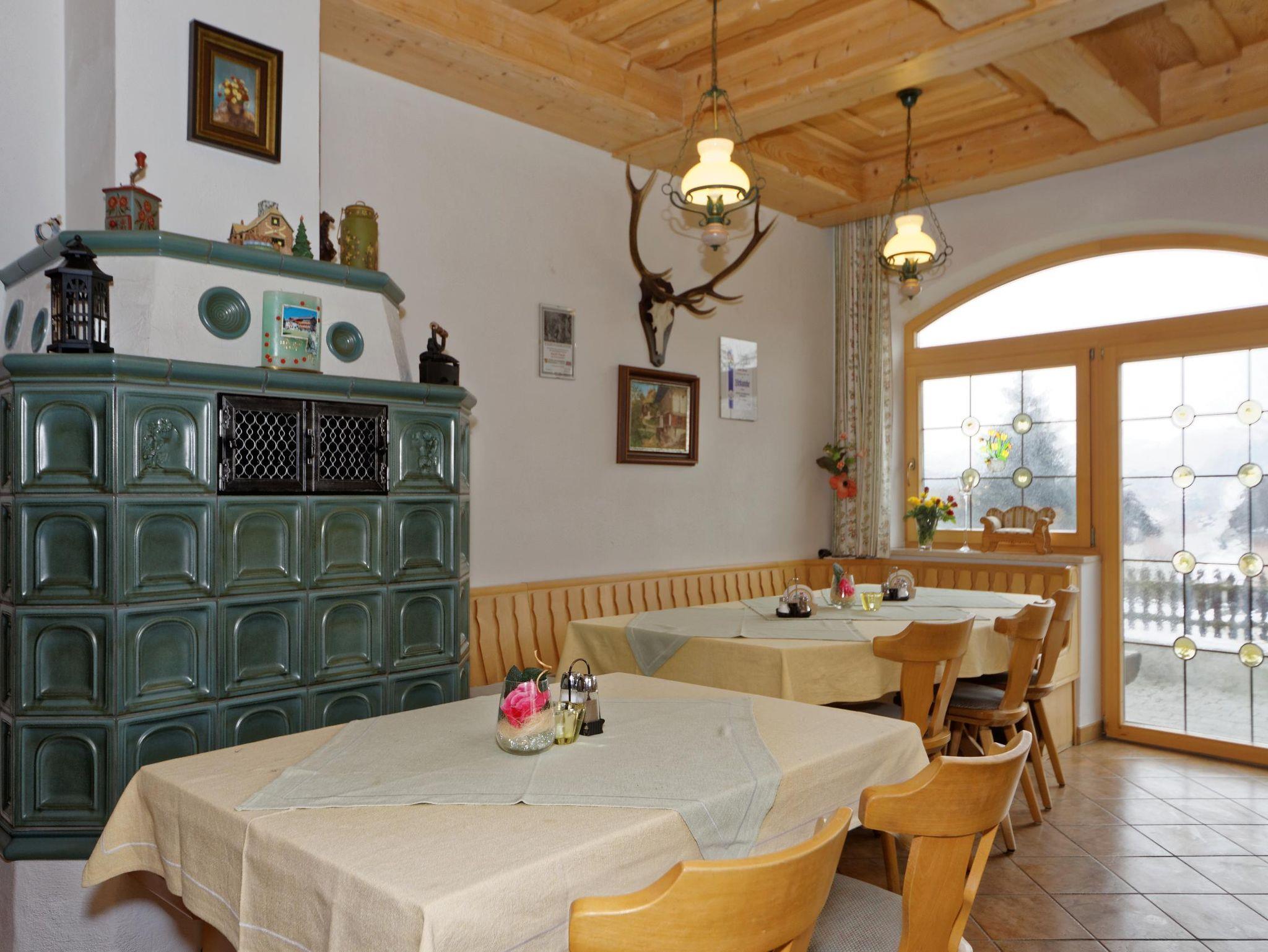 Neben einem reichhaltigen Frühstücksbuffet verwöhnen wir unsere Hausgäste mit vielerlei köstlichen Schmankerln. Gäste der Ferienwohnungen und Appartements können auf Wunsch auch an unserem Frühstücksbuffet sowie am Abendessen teilnehmen. Ebenfalls steht Ihnen unser Aufenthaltsraum, in dem Sie mit anderen Hausgästen gemütliche Stunden verbringen können, zur Verfügung.