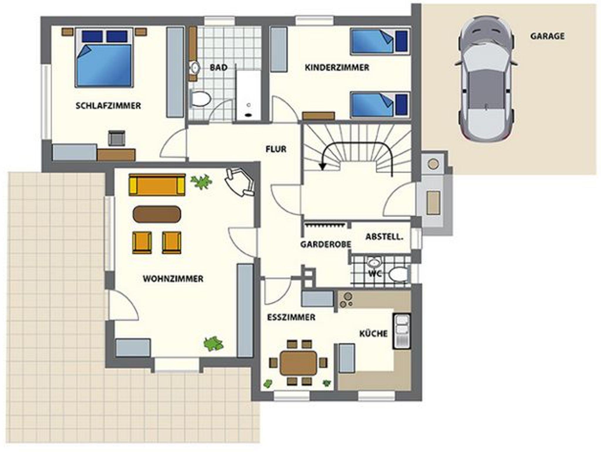 Die ca. 110 qm große Wohnfläche liegt auf einer Ebene. Das