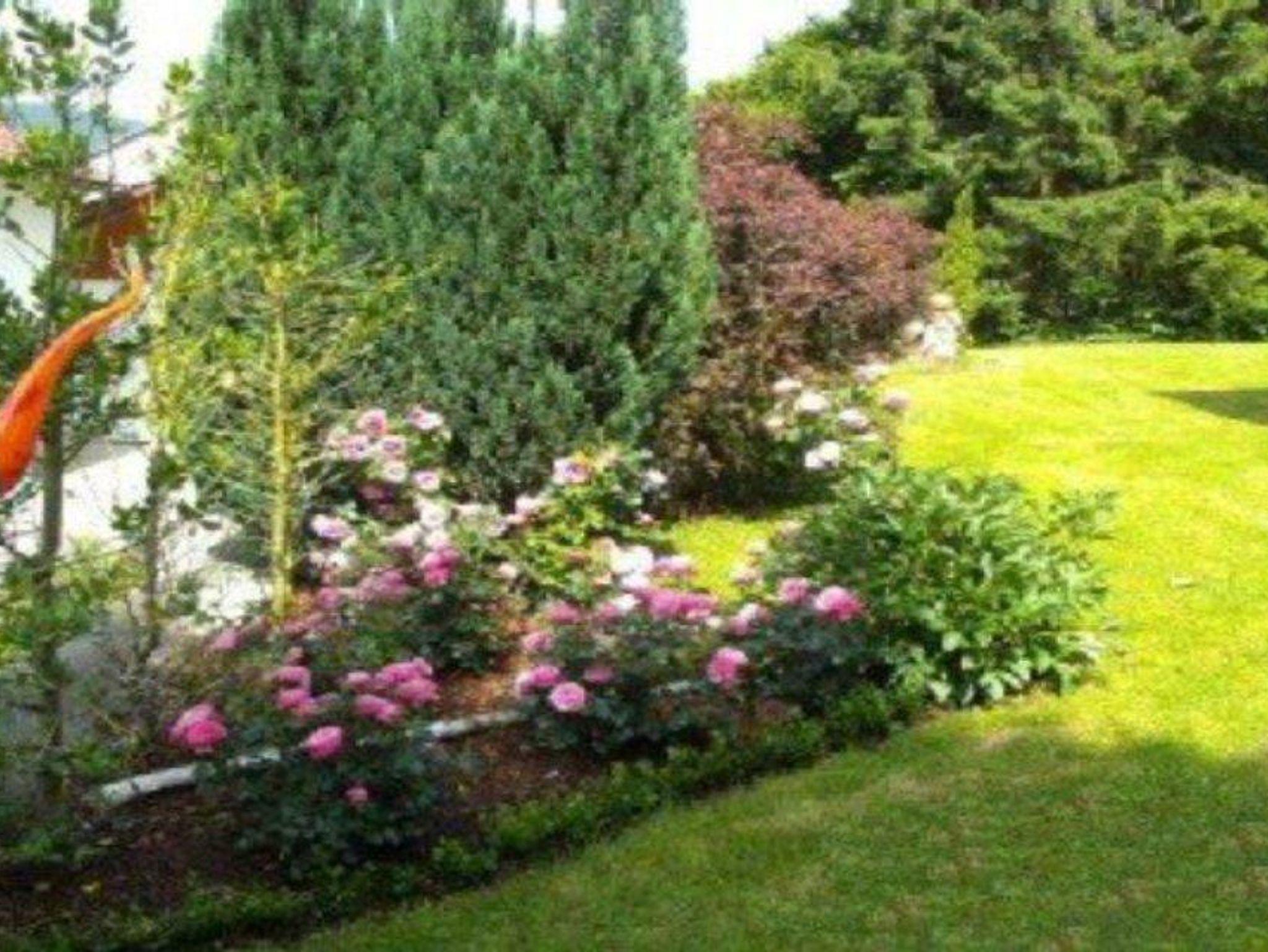in den gepflegten Garten.