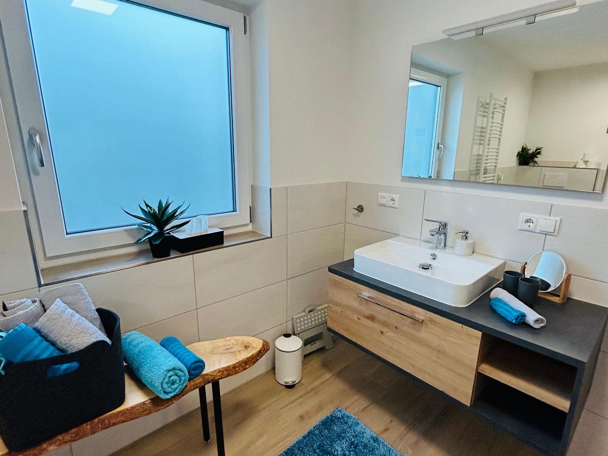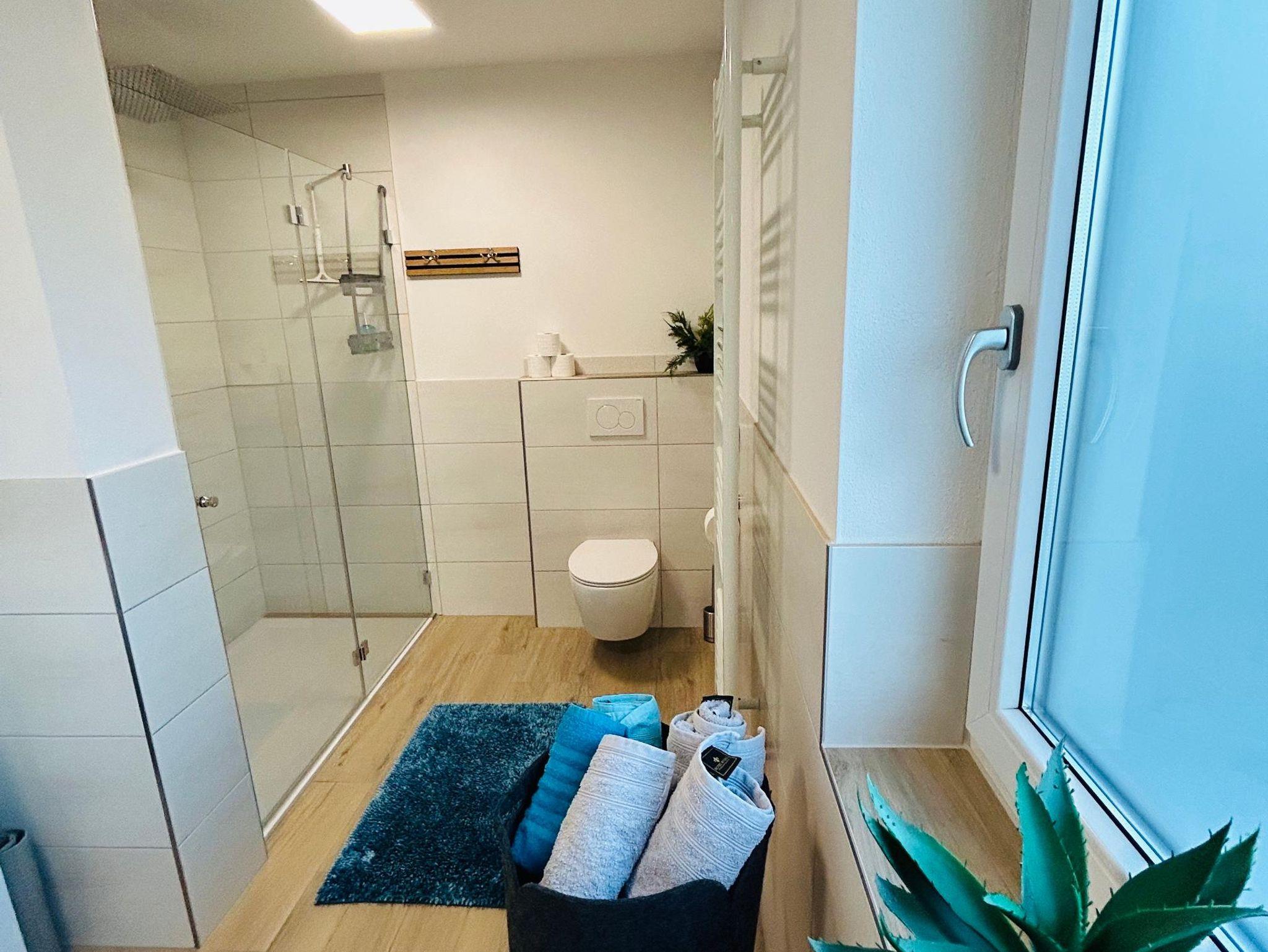 Das Badezimmer besticht durch die XL Regendusche, WC, Waschtisch mit genügend Ablage, Handtücher und Föhn. Außerdem steht Euch eine Waschmaschine zur Verfügung. Ein weiterer Pluspunkt ist das Gäste WC mit Urinal.