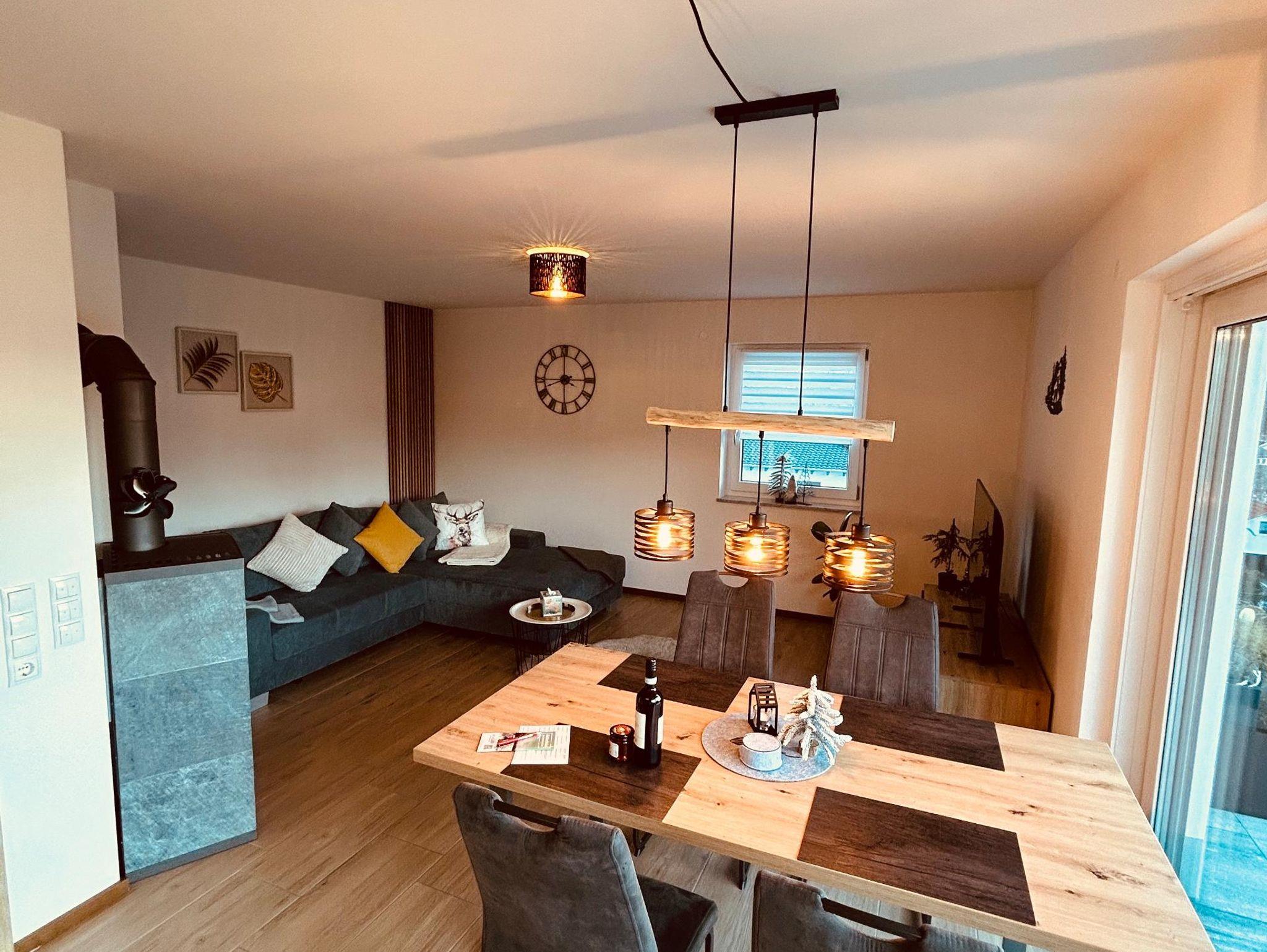 Eine großzügige Raumaufteilung, liebevolle Ausstattung und Dekoration sorgen ebenso zum sich Wohlfühlen bei, wie auch freies W-LAN, Fußbodenheizung mit einer Wärmepumpe betrieben und elektrischen Außenrollos.