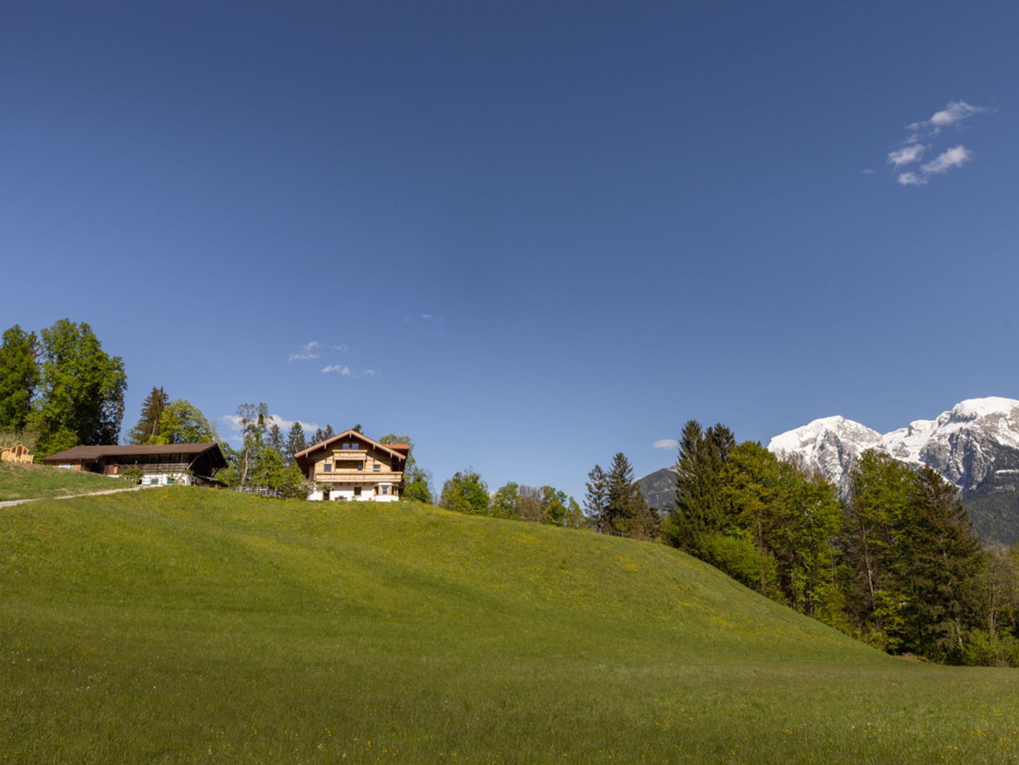 Unser Hof liegt malerisch auf einer Anhöhe von 680 Metern mit Blick auf die wunderbare Bergwelt des Berchtesgadener Landes in bester Alleinlage. Der Panoramablick schwenkt vom Kehlstein über den Watzmann zum Hochkalter - eine Aussicht, die auch uns täglich dankbar sein lässt. Ramsau und Berchtesgaden liegen fünf km entfernt, den Königssee erreichen Sie in etwa 15 Minuten, nach Salzburg brauchen Sie ungefähr 40 Minuten und auch die Grenze nach Österreich ist ganz nah.