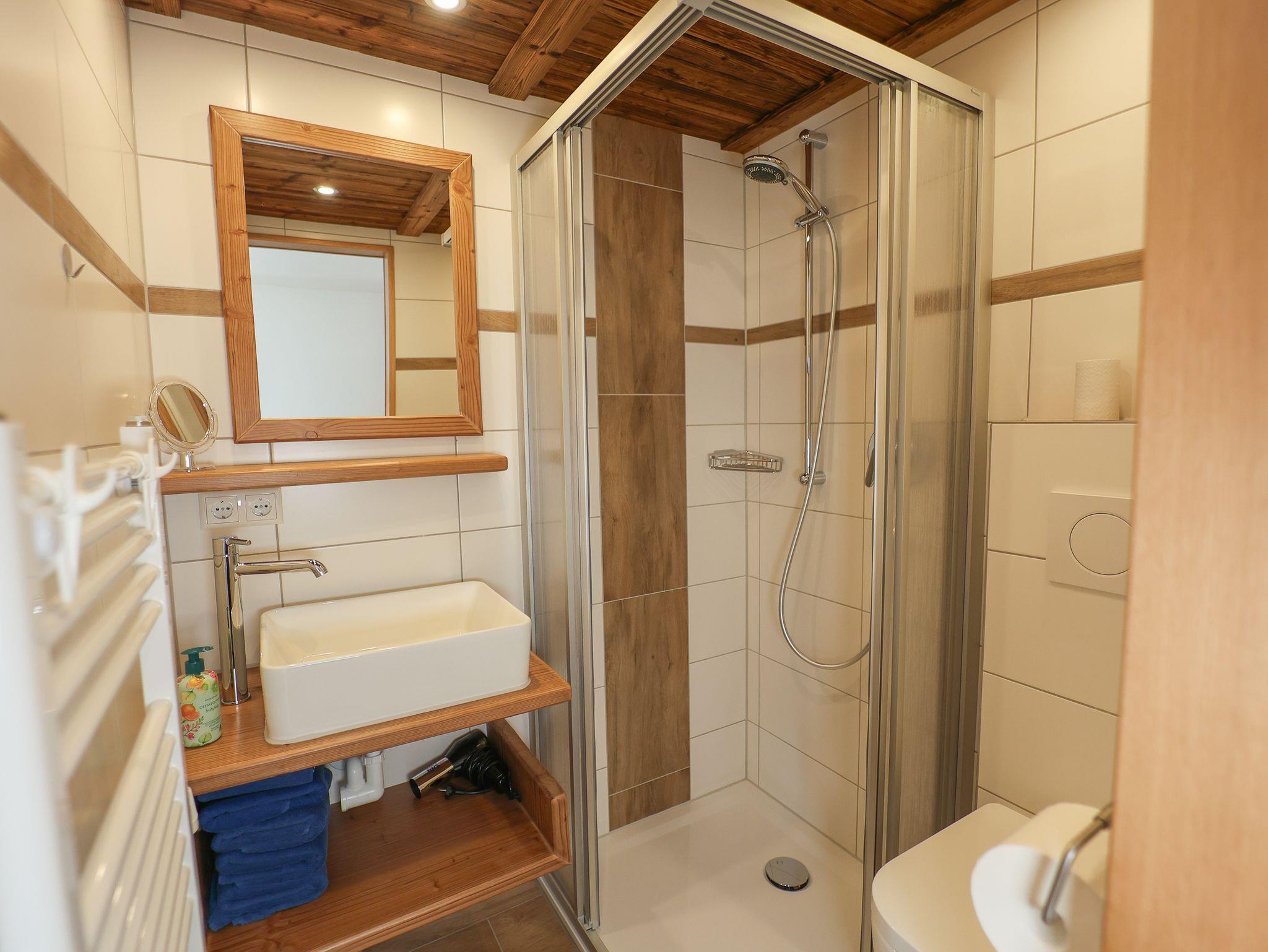 37 qm große, helle, freundliche, sonnige Ferienwohnung. Die Küche ist komplett eingerichtet und mit Spülmaschine, Essecke und Süd-/Ostbalkon mit Aschenbecher. Schlafzimmer mit Doppelbett (180 x 200 cm). Dusche, WC, Sat-TV u. O/Südbalkon mit Panoramablick. Gemütliches Wohnzimmer mit Sofa, das als zusätzliche Schlafgelegenheit genutzt werden kann. Die Ferienwohnung ist modern und im Landhausstil kombiniert eingerichtet.