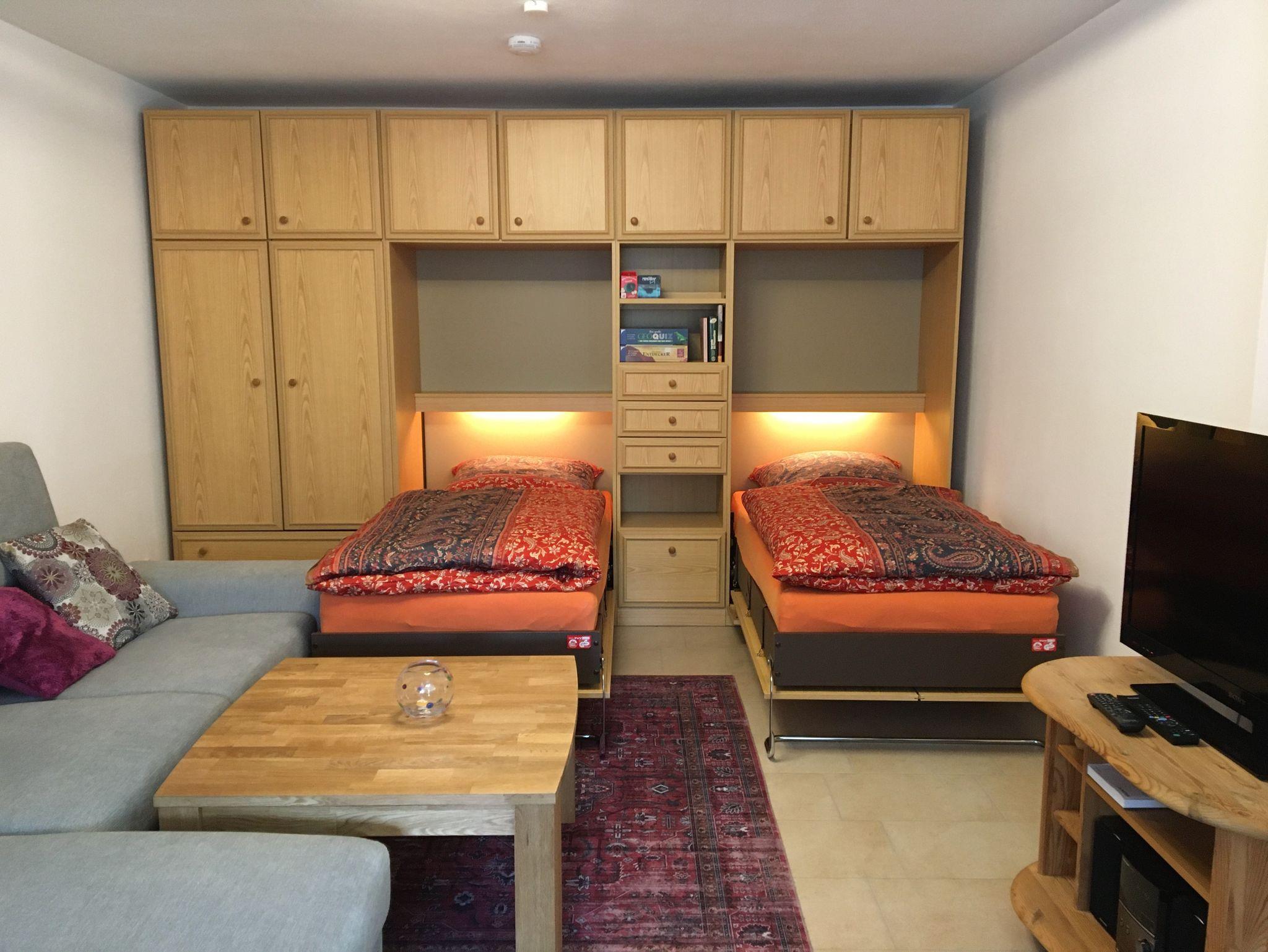 Unsere familienfreundliche Ferienwohnung ist für 1-4 Personen geeignet (54 m2). Sie bietet Ihnen ein Schlafzimmer mit einem Doppelbett, eine vollausgestattete Küche, ein Badezimmer mit Dusche und WC, einen Abstellraum sowie ein großes Wohnzimmer mit gemütlicher Essecke und Blick in den Garten und auf die Berge. Im Wohnzimmerschrank verbergen sich zwei Klappbetten, die zu zwei bequemen Betten ausgeklappt werden können. Nach Absprache und gegen Gebühr kann eine Waschmaschine und ein Trockner genutzt werden. Alle Zimmer sind Nichtraucherzonen. Gerne können Sie auf der Terrasse rauchen. Die Wohnung wurde im Februar/März 2024 renoviert. Das Mitbringen von Haustieren ist nicht gestattet. Die Ferienwohnung ist nicht barrierefrei zu erreichen.