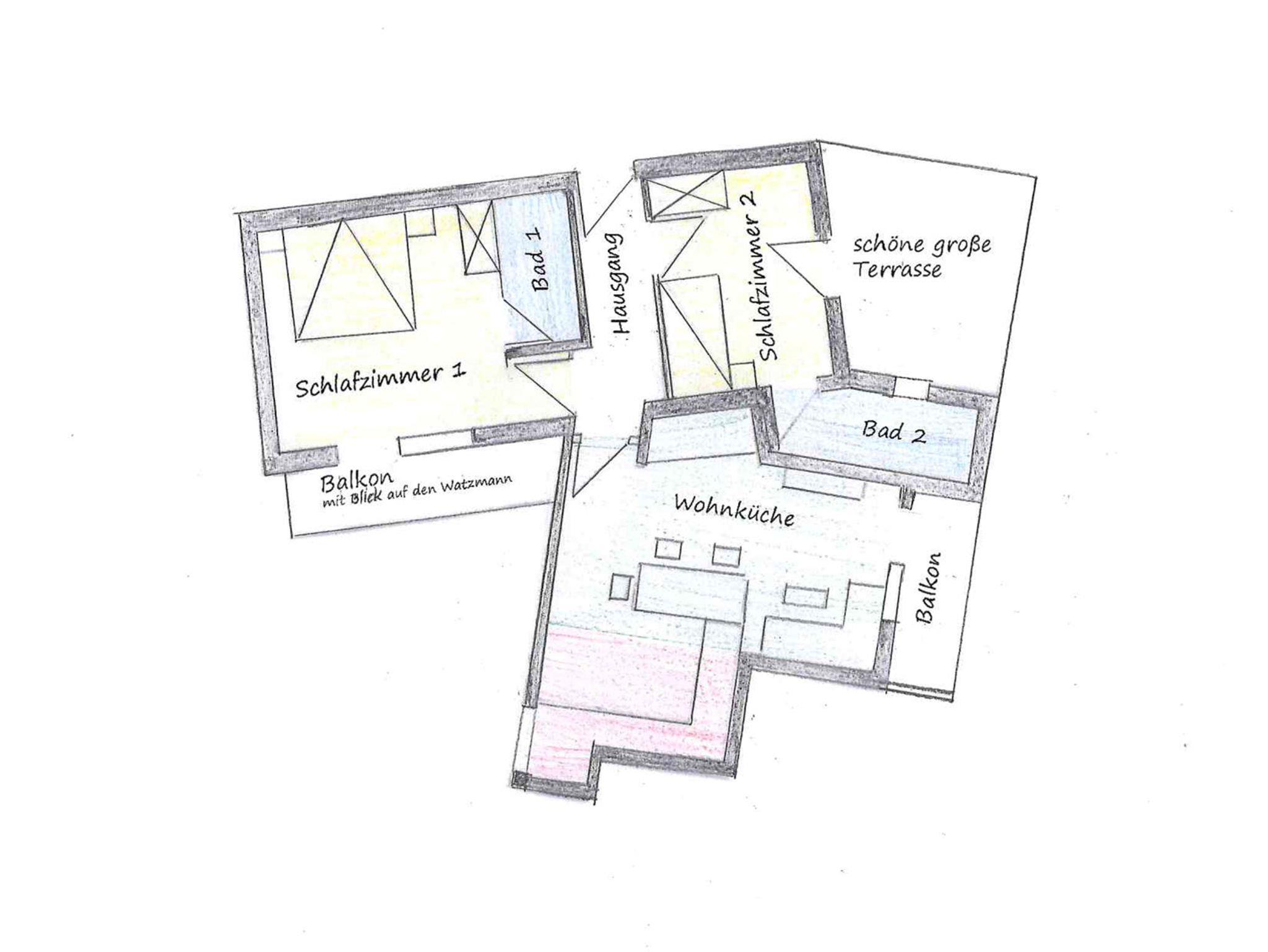 Gästehaus Watzmannblick, Ferienwohnung 5 Watzmannkind für 1-3 Pers., ca. 70 m², 2 SZ, Wohnkü., 2 Bäder, 2 Bk
