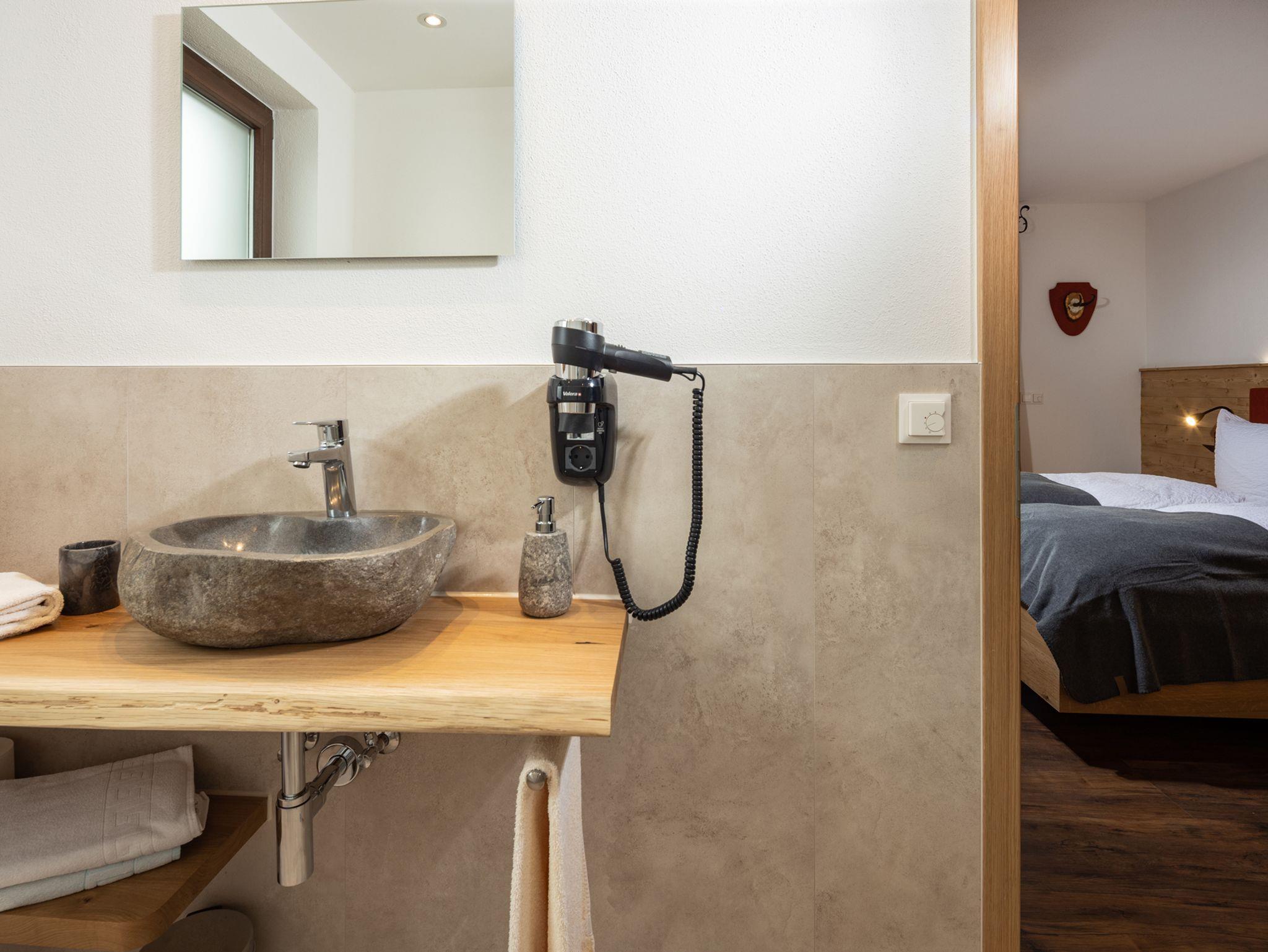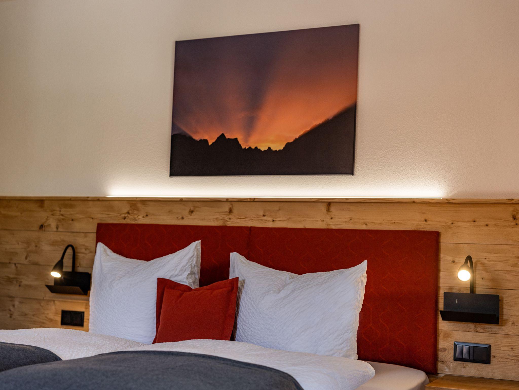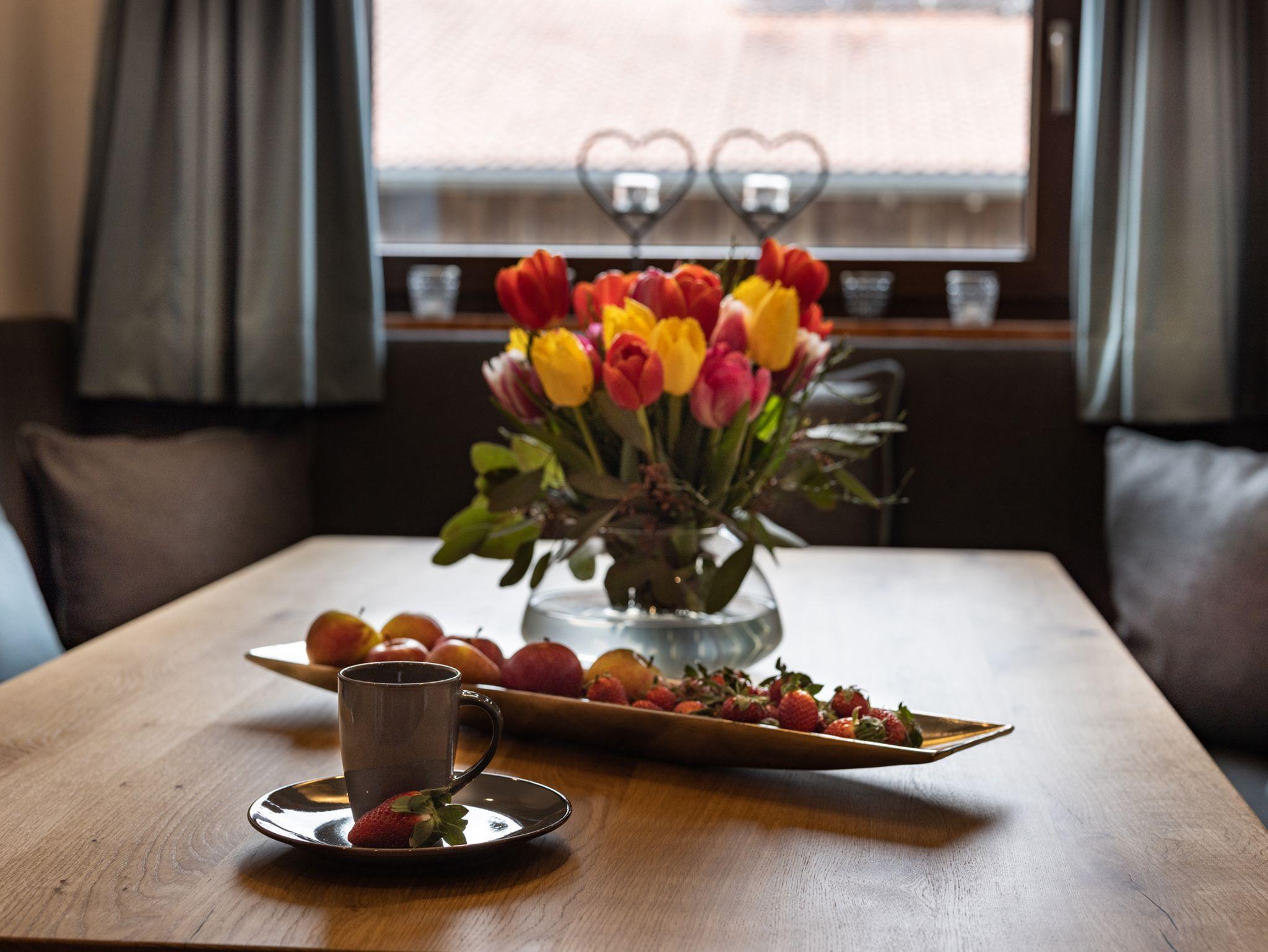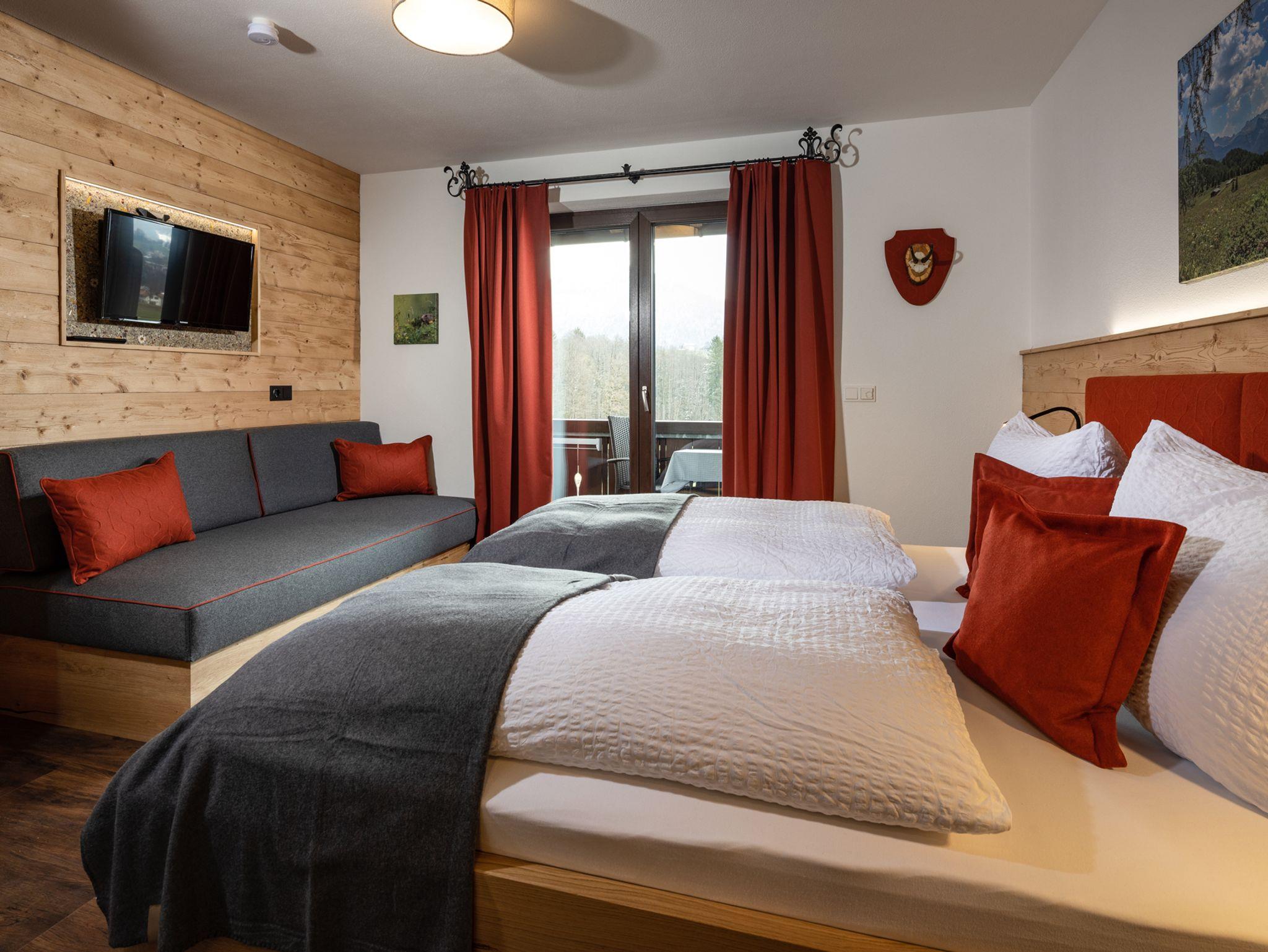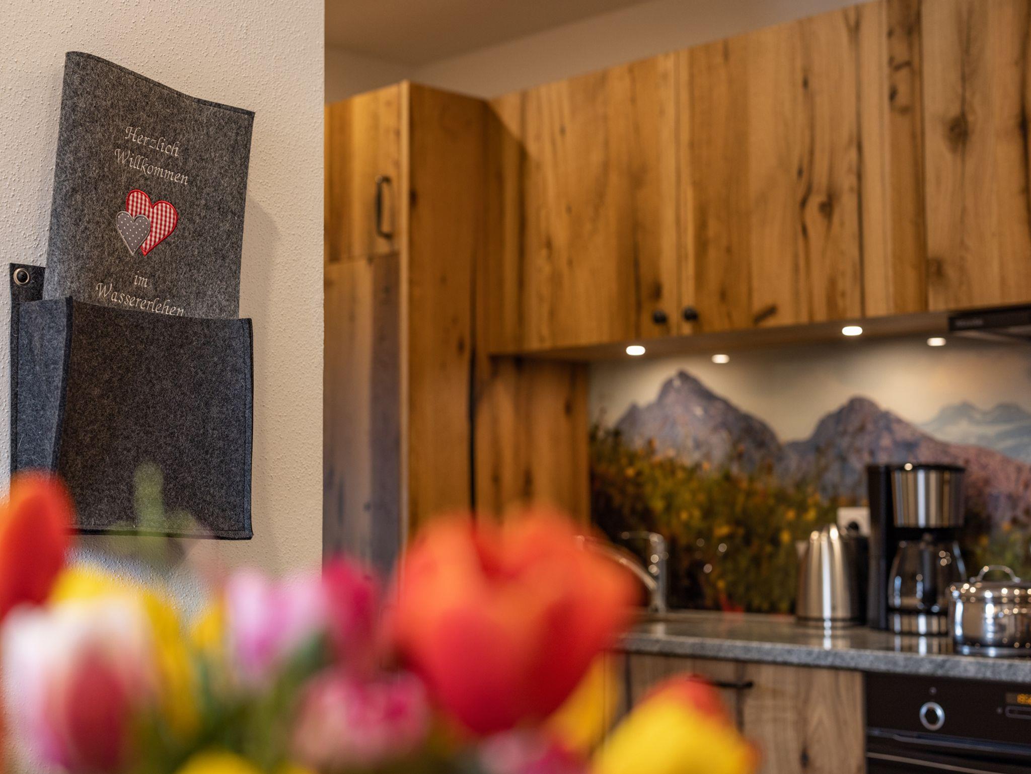 Sie suchen Erholung in einer Ferienwohnung, die komplett ausgestattet ist, bei traumhaftem Bergpanorama inmitten der Natur liegt und von der aus Sie ideal Ihre Ausflugsziele erreichen? Dann sind Sie bei uns richtig!Unsere Ferienwohnung Alpendistel eignet sich perfekt für den Urlaub als Familie oder mit Freunden und bietet für Sie:- Verfügbarkeit bis zu 6 Personen- zwei Balkone mit herrlichem Bergblick- zwei separate Schlafräume mit Massivholzbetten und jeweils einer bequemen Schlafcouch und Flachbildfernseher- zwei separate Badezimmer mit Regendusche- eine komplett ausgestattete Küchenzeile mit Herd, Backofen, Kühlschrank, Geschirrspülmaschine, Kaffeemaschine, Wasserkocher und Toaster- eine gemeinsame Wohnstube mit gemütlicher Eckbank- eine Fußbodenheizung, die für angenehme Wärme sorgt- kostenlose WLAN-Nutzung- Hand- und Geschirrtücher, sowie Bettwäsche- Wäscheständer und Bügelbrett, sowie Wäscheservice auf Anfrage- täglicher Semmelservice und großzügige Getränkeauswahl im Haus- wöchentlicher WäschewechselAlle Möbel wurden exklusiv von einer heimischen Schreinerei gefertigt.