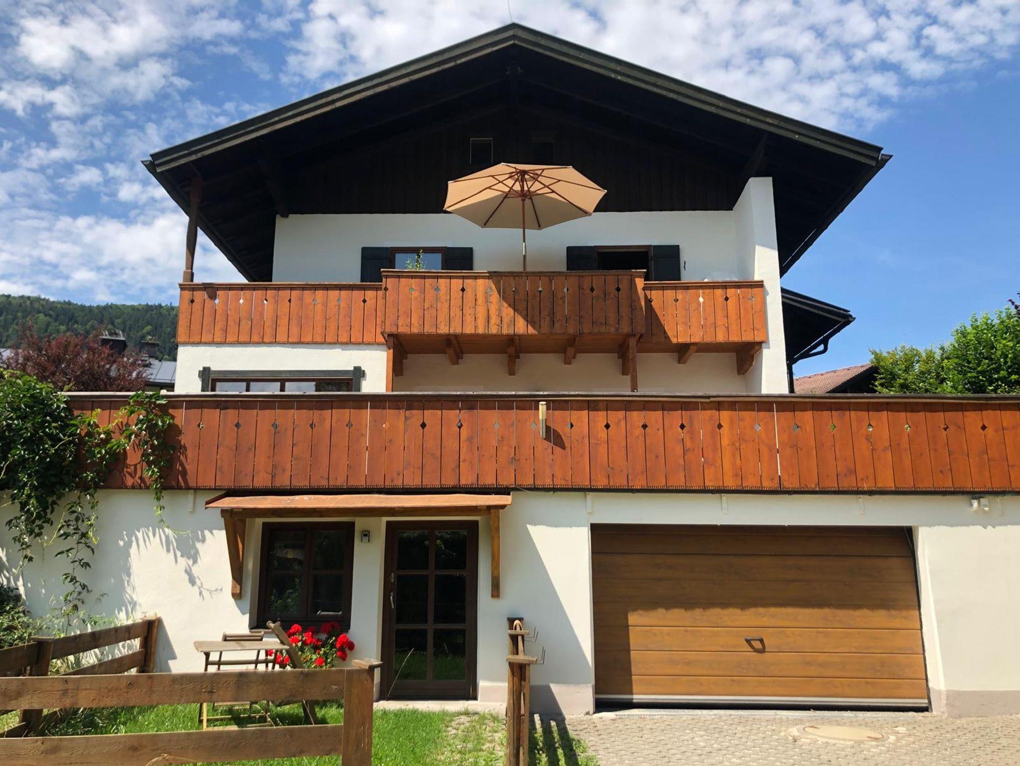 Die 75 qm große Wohnung befindet sich im OG und verfügt über einen großen rundum Balkon mit Bergblick, eine moderne vollausgestattete Küche, ein Wohn- und Esszimmer und 2 Schlafzimmer. Von den Zimmern aus genießt man einen grandiosen Blick auf den einzigartigen Watzmann und die umliegenden Berge. Der großzügige Garten kann ebenfalls genutzt werden. Ein eigener PKW Stellplatz befindet sich direkt vor dem Haus.