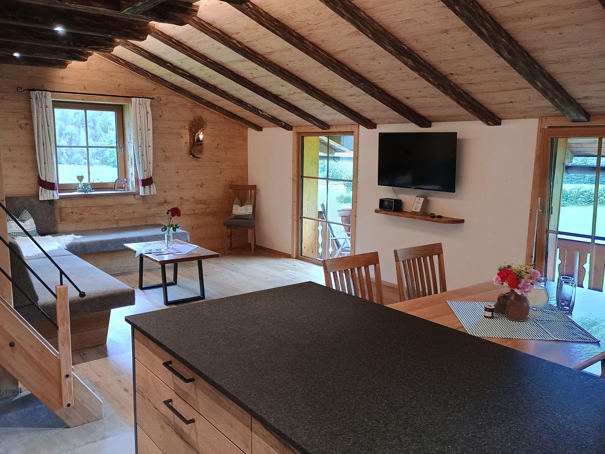Ferienwohnung ca. 82 m², mit Balkon und Blick auf den Watzmann. Gemütlich eingerichtete und gut ausgestattete Wohnküche mit Küchenblock, Mikrowelle, Kühlschrank mit Gefrierfach und Geschirrspüler, gemütlicher Sitzecke und Sat-TV. Zwei getrennte Schlafzimmer. Geräumige, bestens gepflegte Sanitäranlagen mit Dusche und WC.Waschmaschine und Trockner im Gemeinschaftsraum sowie Staubsauger verfügbar.Auf Wunsch bieten wir gerne an:Brötchenservicetäglich frische Eier und Milch von unserem Bauernhof