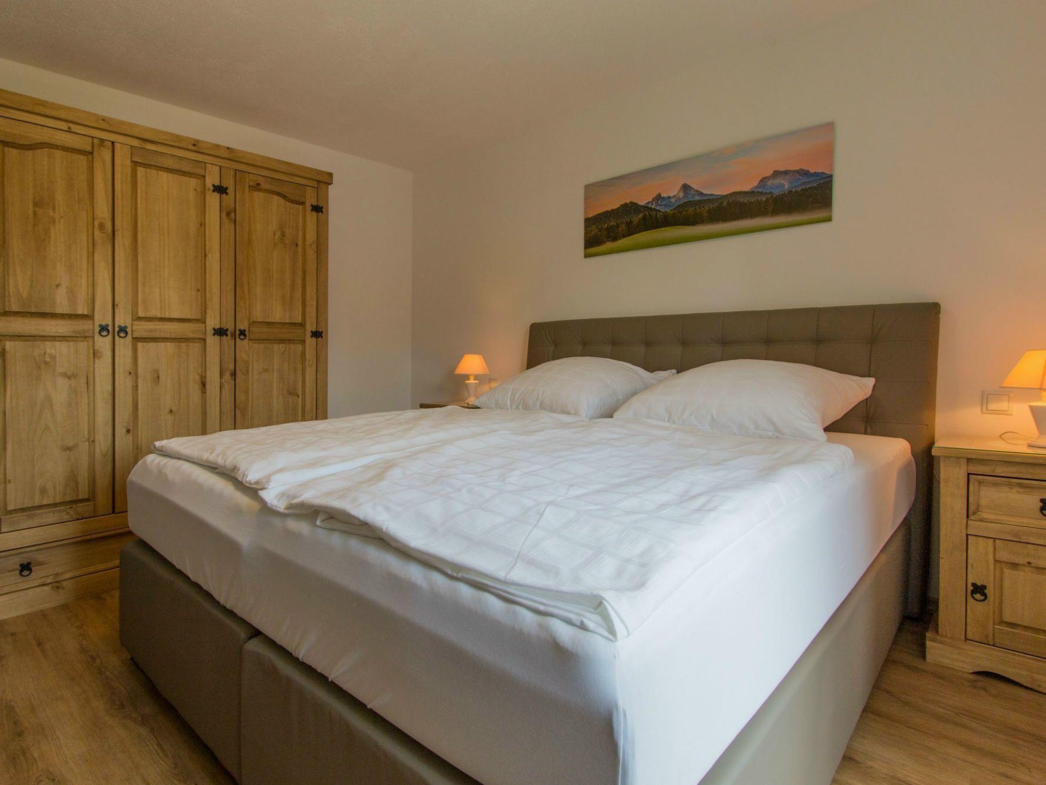 In ruhiger, sonniger Lage mit herrlichem Blick auf das Bergpanorama bieten wir Ihnen eine modern ansprechende ****Ferienwohnung im 1. Stock für 2 Personen. Die Wohnung hat ein separates Schlafzimmer mit Boxspringbett und ein großes Bad mit Regendusche. Großzügige Wohnküche mit gemütlichem Ecksofa, großem LED-Fernseher und voll ausgestatteter Küchenzeile (Senseo) Kaffeemaschine, Wasserkocher, Toaster, Eierkocher, 4-Plattenherd mit Backofen, Kühlschrank und Geschirrspülmaschine). Großer Süd- und Ostbalkon mit Balkonmöbeln mit Blick vom Kehlsteinhaus bis zum Watzmann. Ein Carportstellplatz, WLAN, Geschirrtücher, Handtücher, Bettwäsche, Fön, Toilettenpapier sowie Seifen, Spülmittel, Kaffeepads, eine Auswahl an Tees, Gewürze und Öl zum Kochen stehen Ihnen kostenlos zur Verfügung. Max. 2 Hunde sind herzlich willkommen. Für Ihren Vierbeiner steht eine Hundeschlafmatte, Futternäpfe und ein Handtuch bereit. 1 Hund pro Tag 10€. 2 Hunde pro Tag 16€.