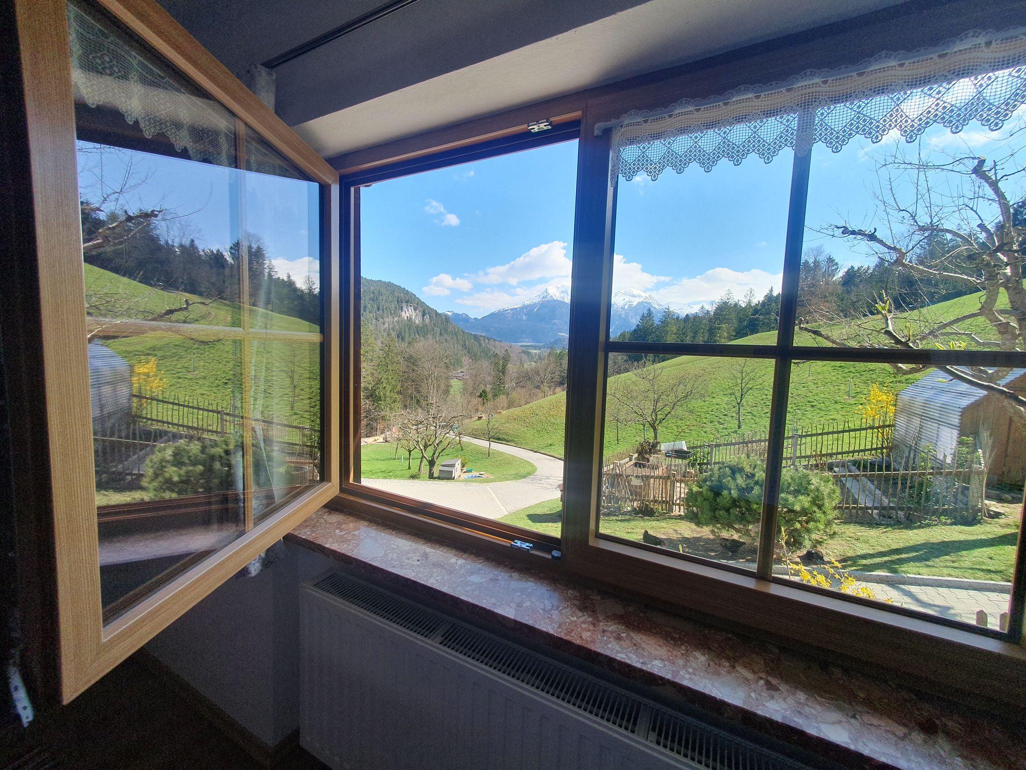 Einen herrlichen Blick auf die umliegenden Berge bieten die großen Panorama Fenster.