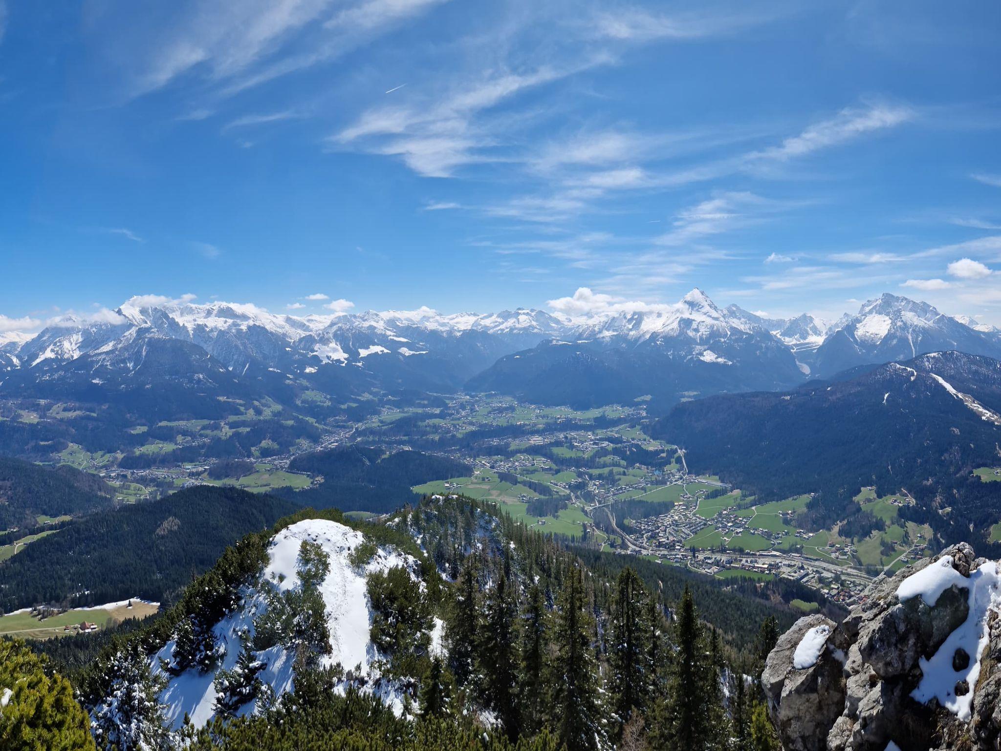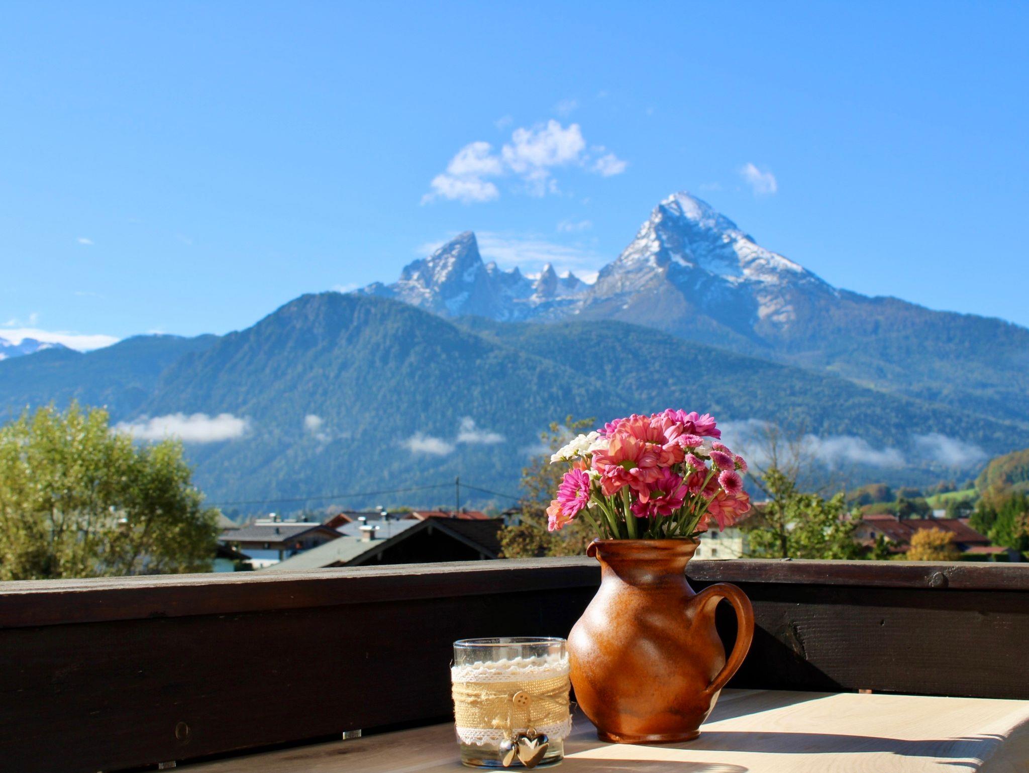 Auf der Süd- und Westseite befindet sich ein großer Balkon, welcher einen herrlichen Blick auf die Berchtesgadener Alpen, inklusive des sagenumwobenen Watzmanns bietet.