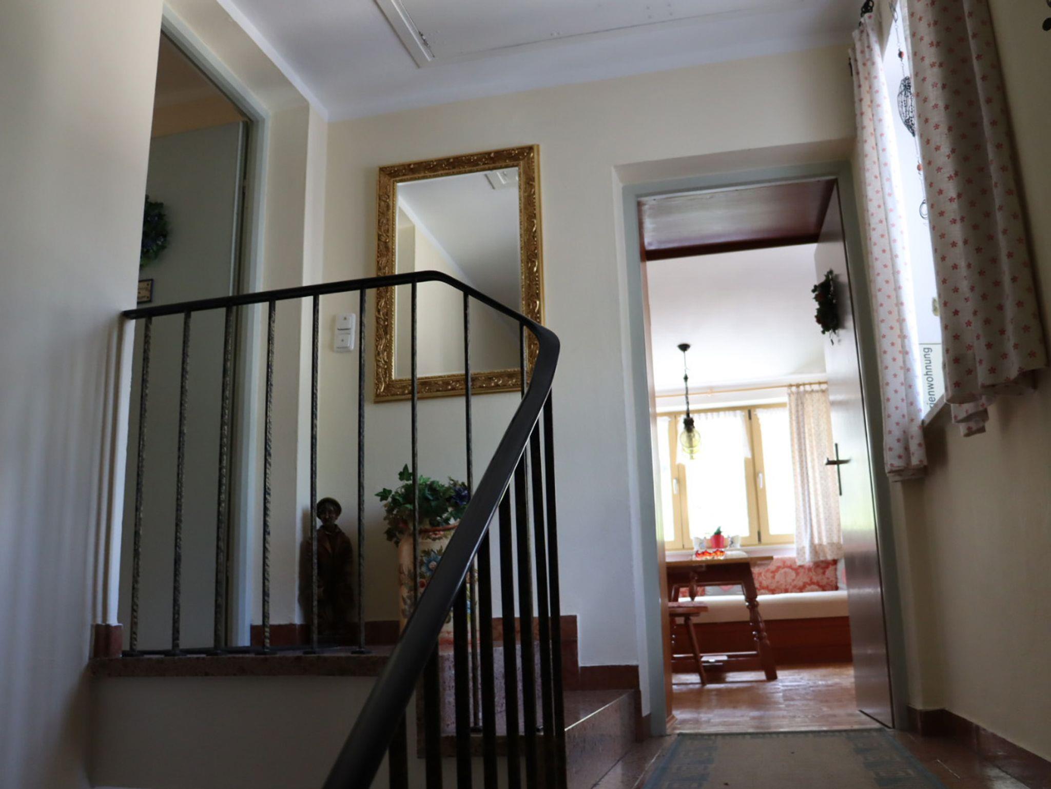 Ferienwohnung mit herrlichem Blick auf Bergpanorama. Komfortable z.T. neu ausgestattete Zimmer. Unser Motto: Wohlfühlen und neue Kräfte sammeln! Die neu renovierte Ferienwohnung im 1. OG bietet ein modernes Schlafzimmer mit Balkon, ein Bad mit Waschmaschine und ein separates WC. In der gemütlichen Küche mit Spülmaschine befindet sich eine Eßecke für 4 Personen. Das sehr geräumige Wohnzimmer mit großer Eck-Couch bietet einen traumhaften Bergblick und hat ebenfalls einen Balkon. Es befinden sich zwei Fernseher mit Kabel-TV, einer mit DVD-Player, in der Ferienwohnung.