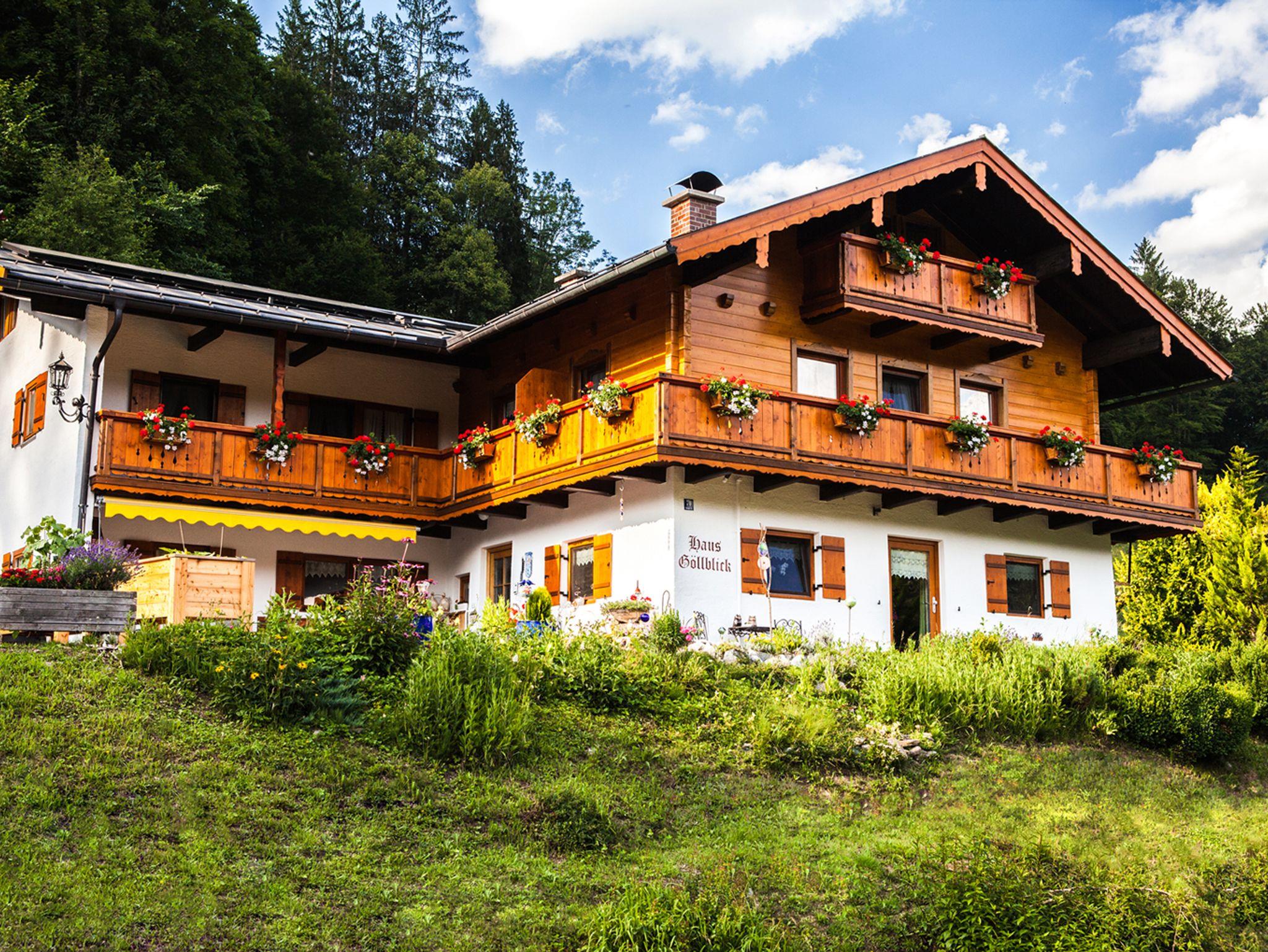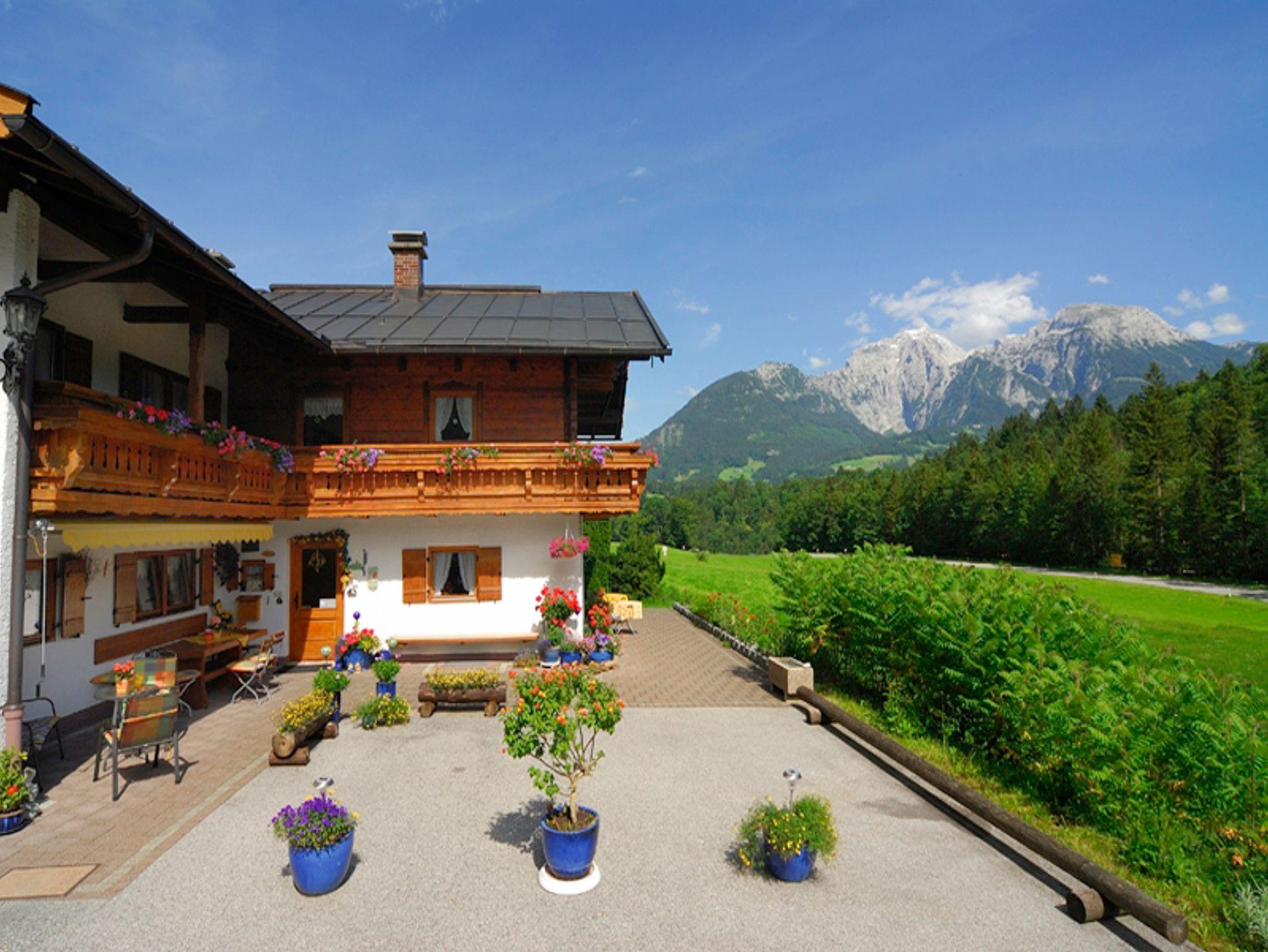 Sie finden unser gepflegtes, zentral gelegenes Haus an der B 305 auf einer Anhöhe in Alleinlage am Waldrand zwischen Berchtesgaden und Ramsau mit bequemer Autozufahrt und großer Parkfläche. Genießen Sie Ihren Urlaub in gemütlicher, freundlicher Atmosphäre und dem einzigartigen Ausblick auf Kehlstein mit Kehlsteinhaus, Hoher Göll, Hohes Brett, Jenner, Grünstein, Watzmann und Hochkalter.Fühlen Sie sich wohl in liebevoll und geschmackvoll eingerichteten Ferienwohnungen und entspannen Sie auf dem überdachten Freisitz.In wenigen Autominuten erreichen Sie unsere Skigebiete, Langlaufloipen, Rodelbahnen, Ausflugsziele, Wandergebiete, Sole- und Thermalhallenbäder und Kureinrichtungen. Wanderwege in verschiedene Richtungen beginnen direkt am Haus und bieten ideale Voraussetzungen für einen Wanderurlaub im Berchtesgadener Land.Die Festspiel-, Kongress- und Messestadt Salzburg und die Kurstadt Bad Reichenhall liegen nur 20 km entfernt.Die Bushaltestelle ist 10 Gehminuten entfernt. Gratis Bus fahren mit Ihrer Kurkarte!