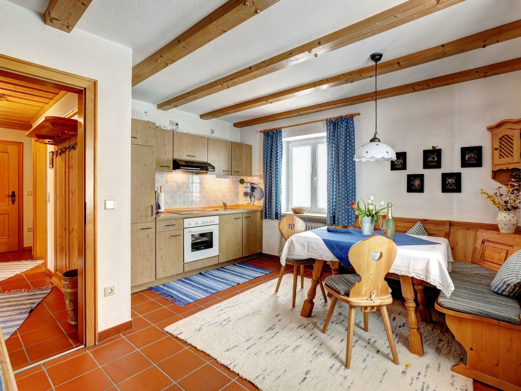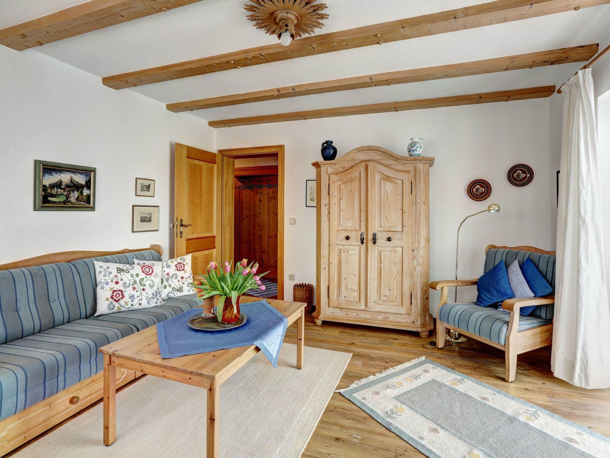 Ferienwohnungen Fendt, Ferienwohnung Watzmann für 1-2 Pers., 54 m², Schlafzimmer, Wohnraum mit Küche, Terrasse