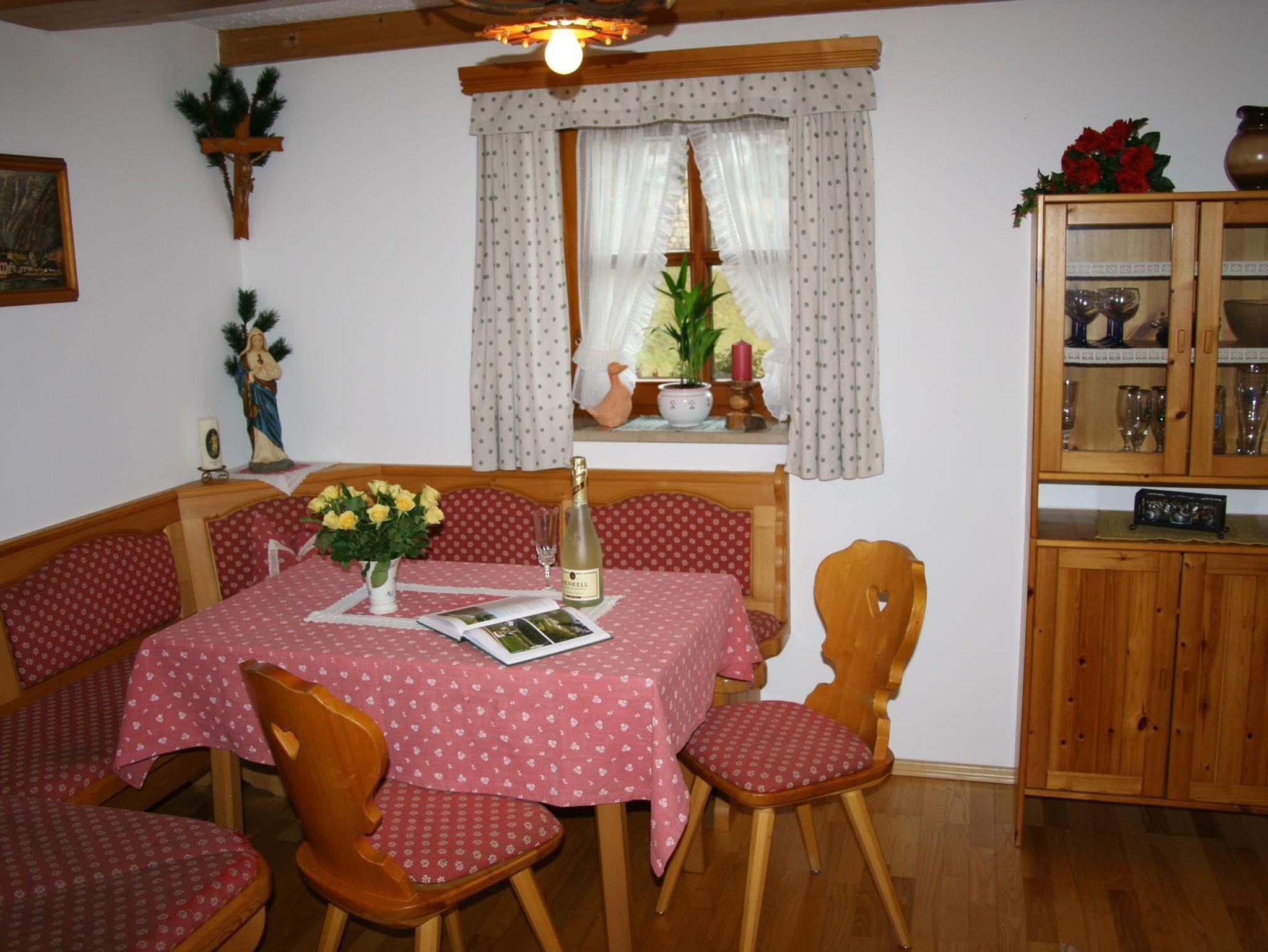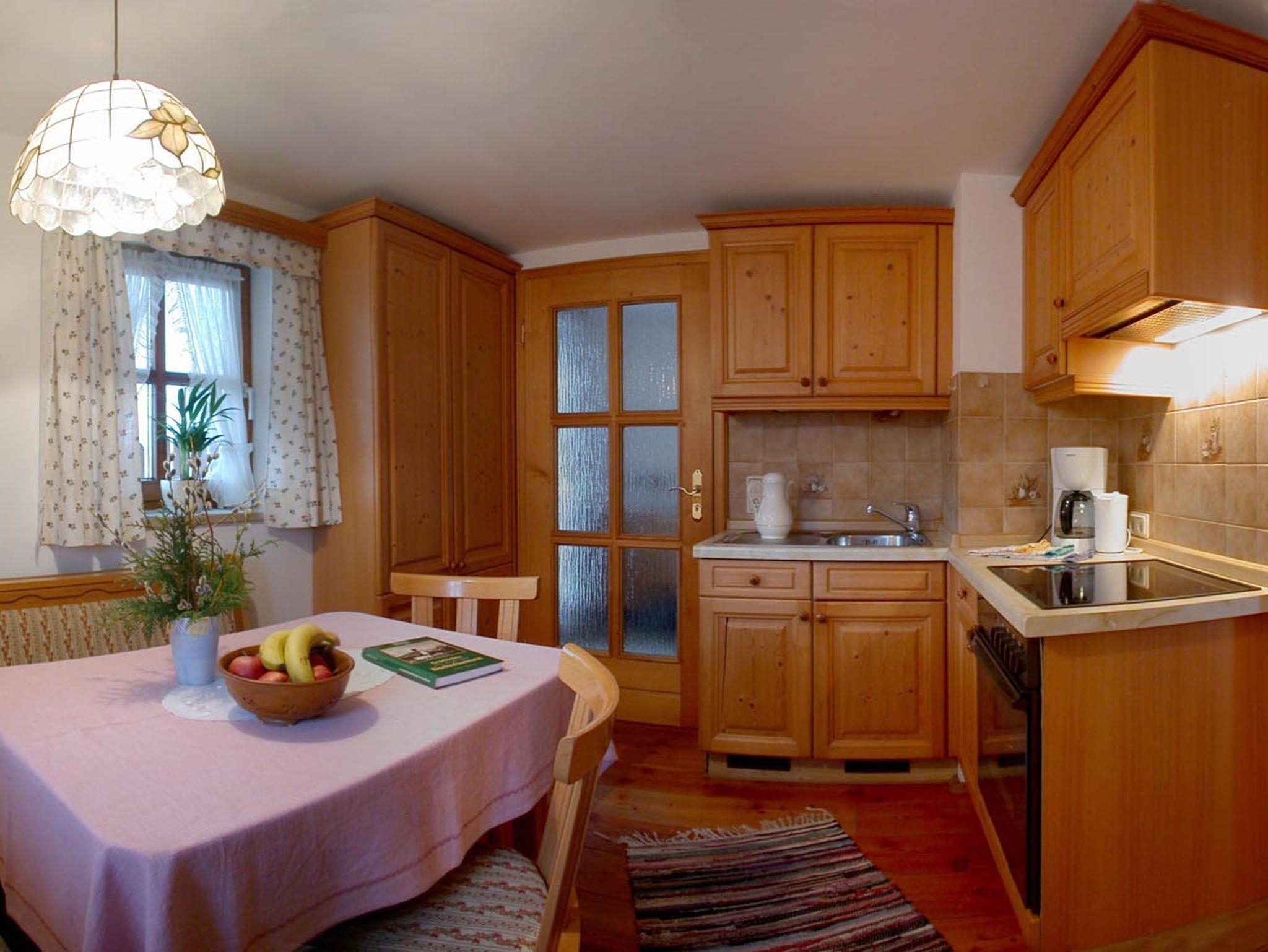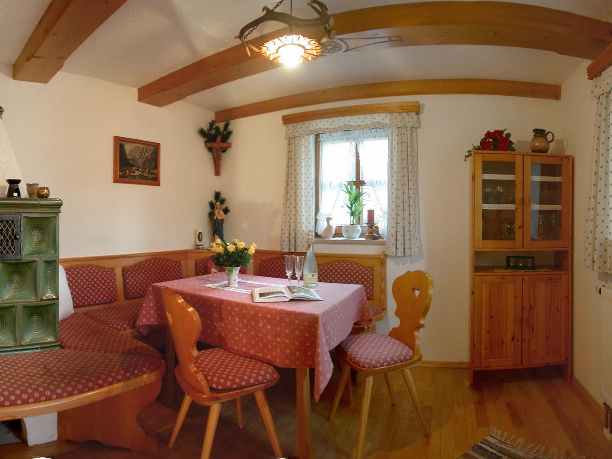 Im Erdgeschoss befinden sich die Küche mit Essecke, ein WC und die Wohnstube mit Kachelofen. Wir haben bei Anreise einen Korb mit Holz für Sie vorbereitet und zeigen Ihnen auch gerne, wie Sie den Ofen anheizen. Wenn Sie mehr Holz benötigen, können Sie dieses gerne von uns entgegennehmen.