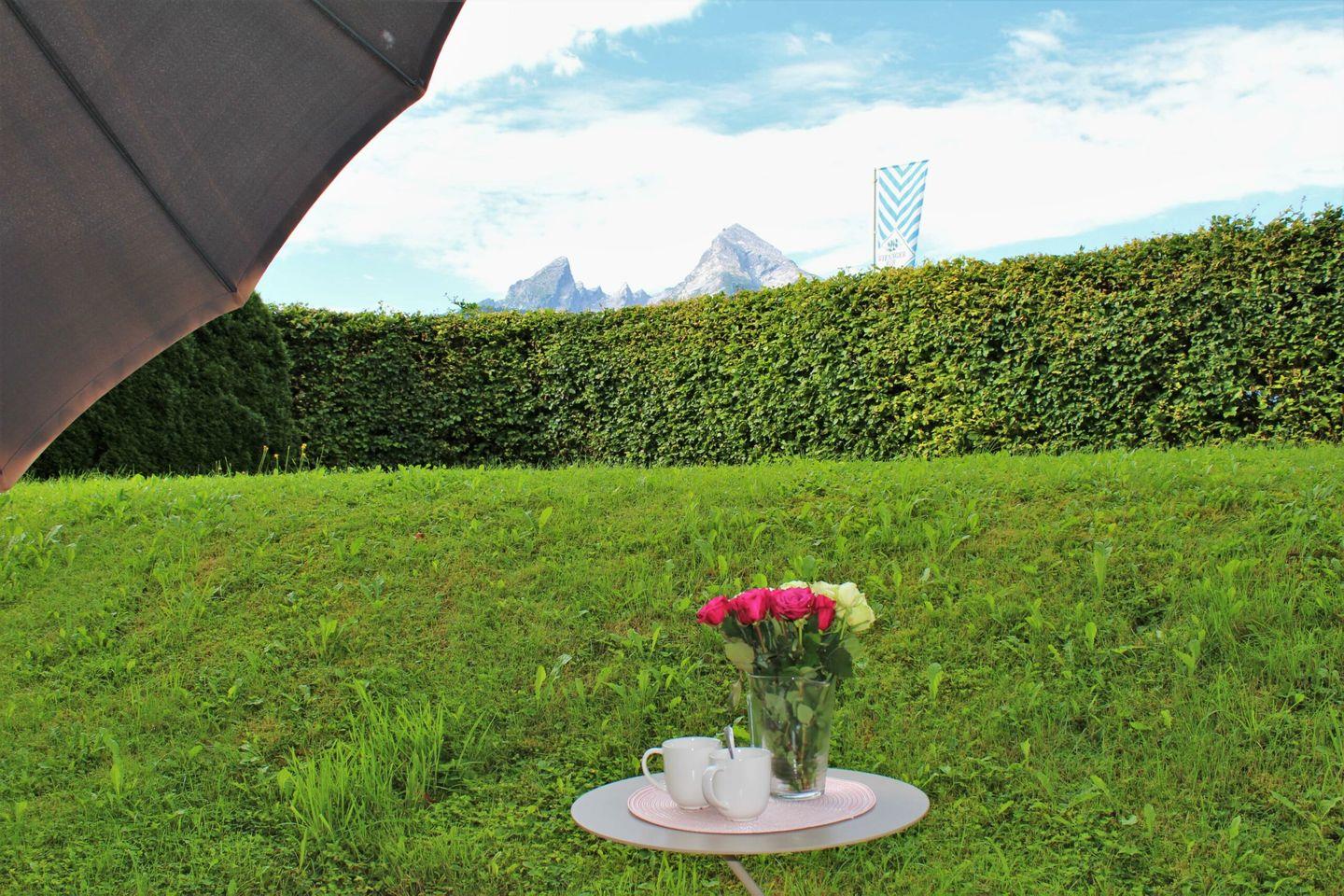 Der helle Wohn-, Schlaf- und Küchenbereich wurde im März 2025 mit viel Liebe zum Detail komplett renoviert und vereint modernen Komfort mit gemütlichem Ambiente. Die gut ausgestattete Küchenzeile, das bequeme Doppelbett und die kleine Sitzecke bieten alles, was man für eine entspannte Auszeit braucht. Die Küchenzeile verfügt über einen Herd, Backofen, Mikrowelle, Spülmaschine, Kühlschrank mit integriertem Gefrierfach, Kaffeemaschine, Toaster und Wasserkocher. Das Badezimmer mit Dusche und WC ist zudem mit einem Haartrockner ausgestattet. Große Fenster lassen das Tageslicht herein und schaffen eine angenehme Wohnatmosphäre. Auf der eigenen Terrasse genießen Sie sonnige Stunden und einen wunderschönen Blick auf den Watzmann – ein perfekter Ort für das Frühstück am Morgen oder ein Glas Wein am Abend. Kostenfreies WLAN, ein Parkplatz direkt am Haus, eine Gemeinschaftswaschmaschine (kostenpflichtig) sowie ein Abstellraum für Fahrräder runden das Angebot ab.
