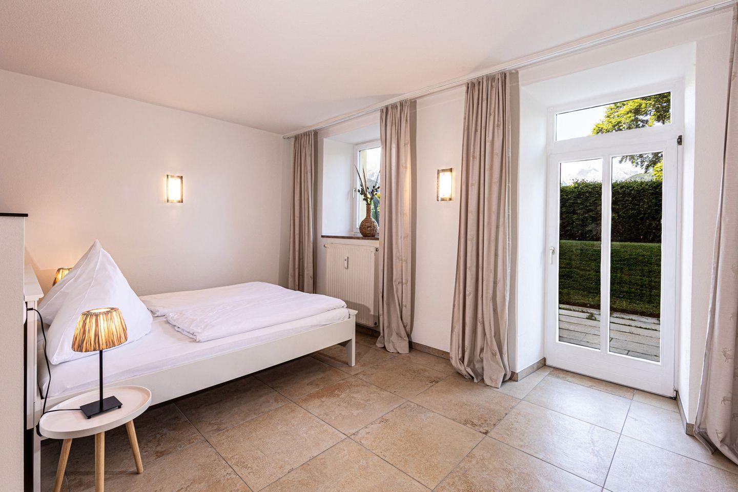 Das Einraum-Apartment "Alpennest" mit Terrasse liegt in Bischofswiesen und befindet sich im Souterrain einer Jugendstilvilla. Der Wohn-, Schlaf- und Küchenbereich vereint modernen Komfort mit gemütlichem Ambiente. Die gut ausgestattete Küchenzeile, das bequeme Doppelbett und die kleine Sitzecke bieten alles, was man für eine entspannte Auszeit braucht. Kostenfreies WLAN, ein Parkplatz, eine Gemeinschaftswaschmaschine (kostenpflichtig) sowie ein Abstellraum für Fahrräder runden das Angebot ab.