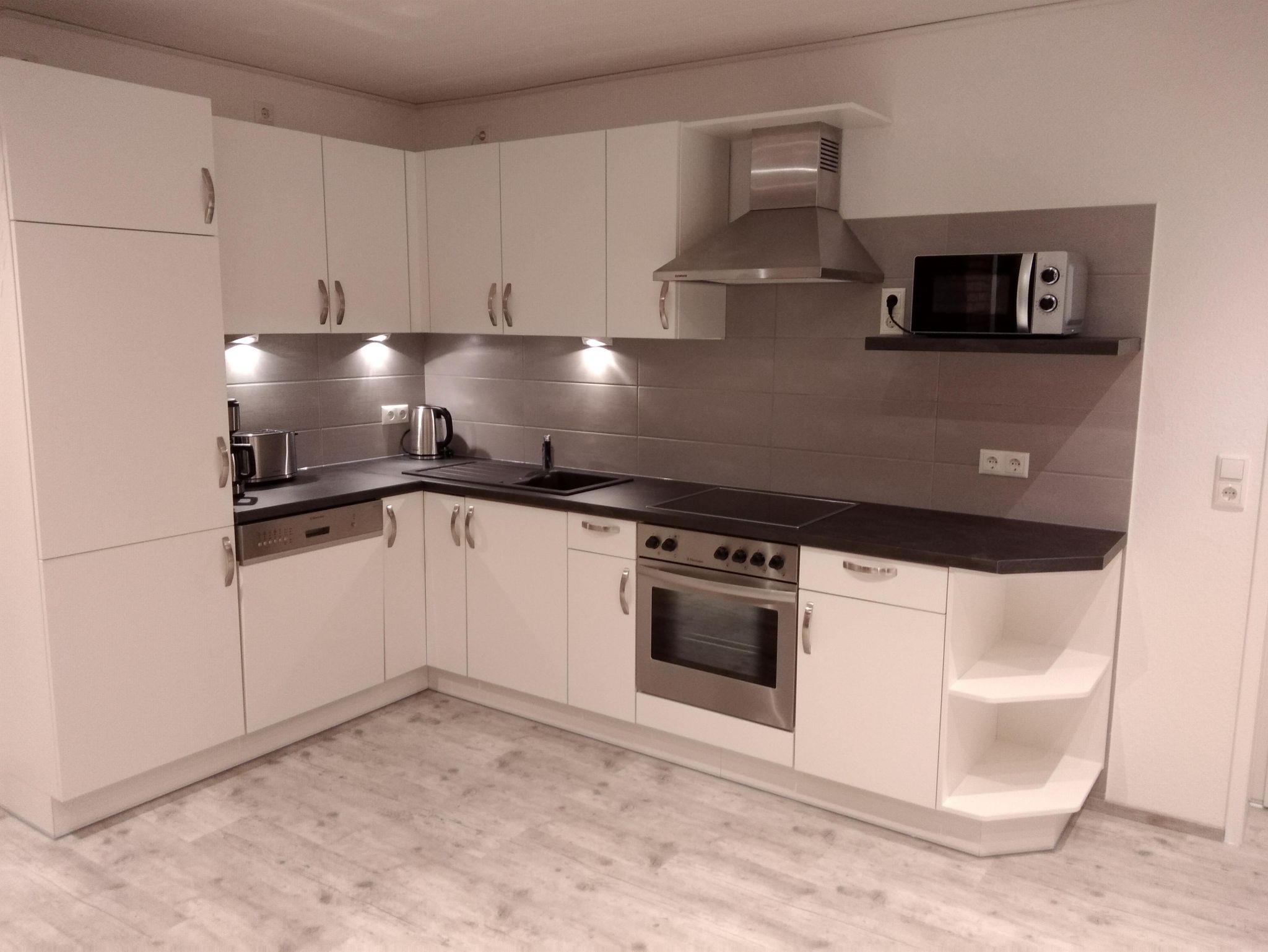 1 großer Raum mit Küche, übergehend ins Wohnzimmer, in dem sich auch noch ein großes Schlafsofa befindet.