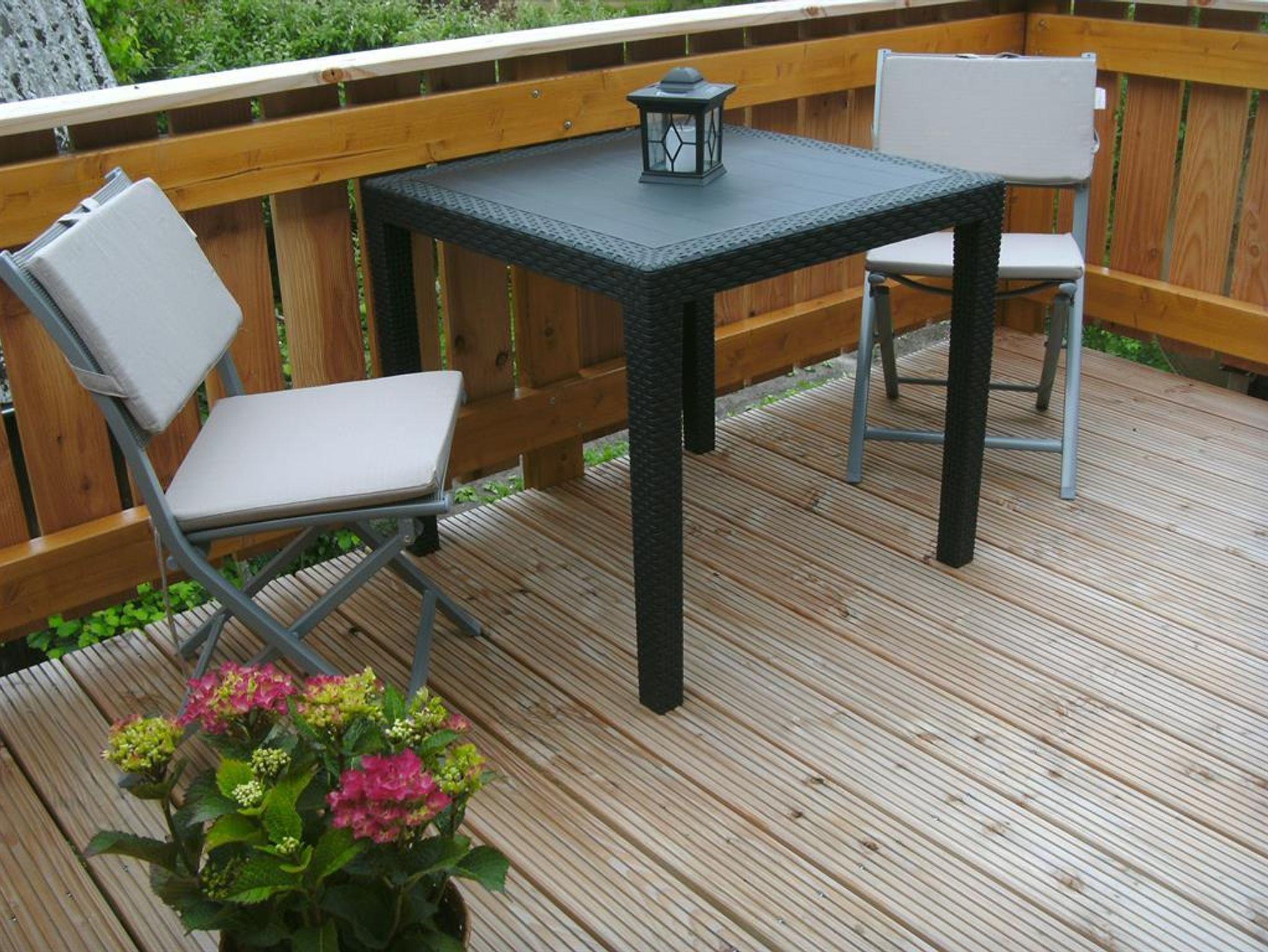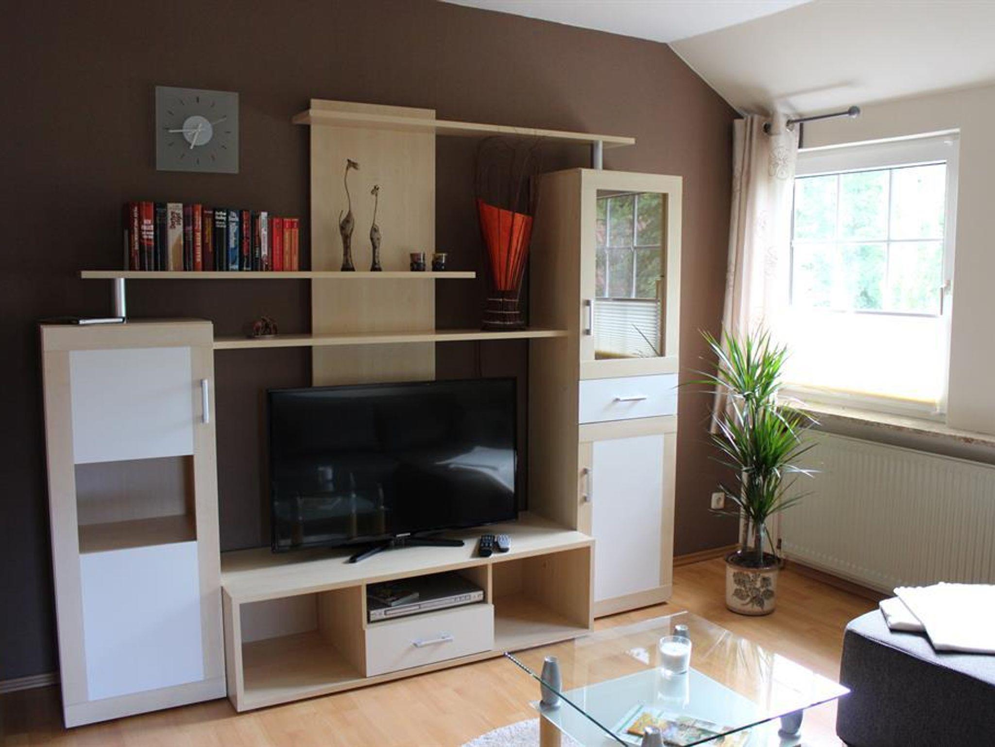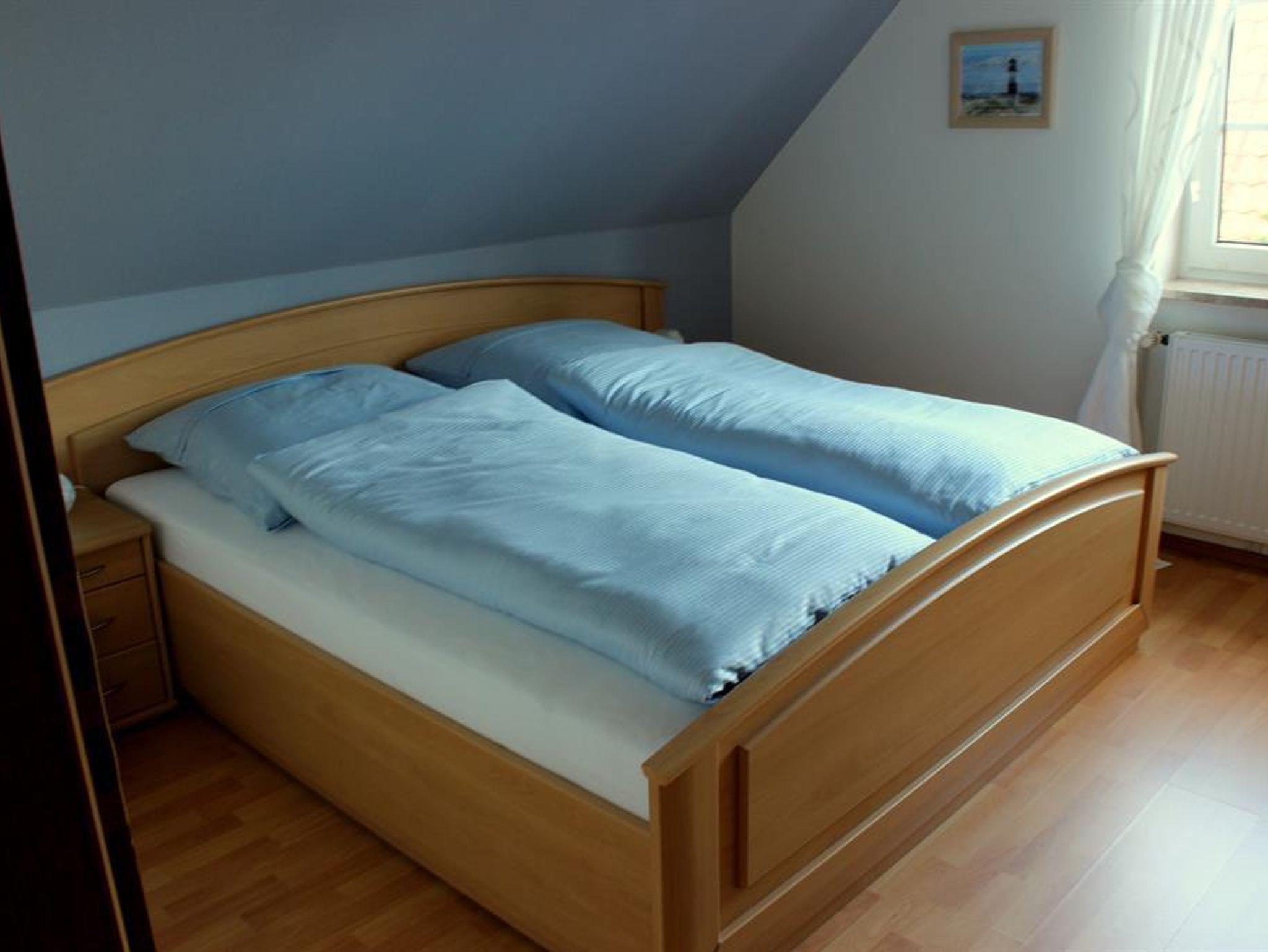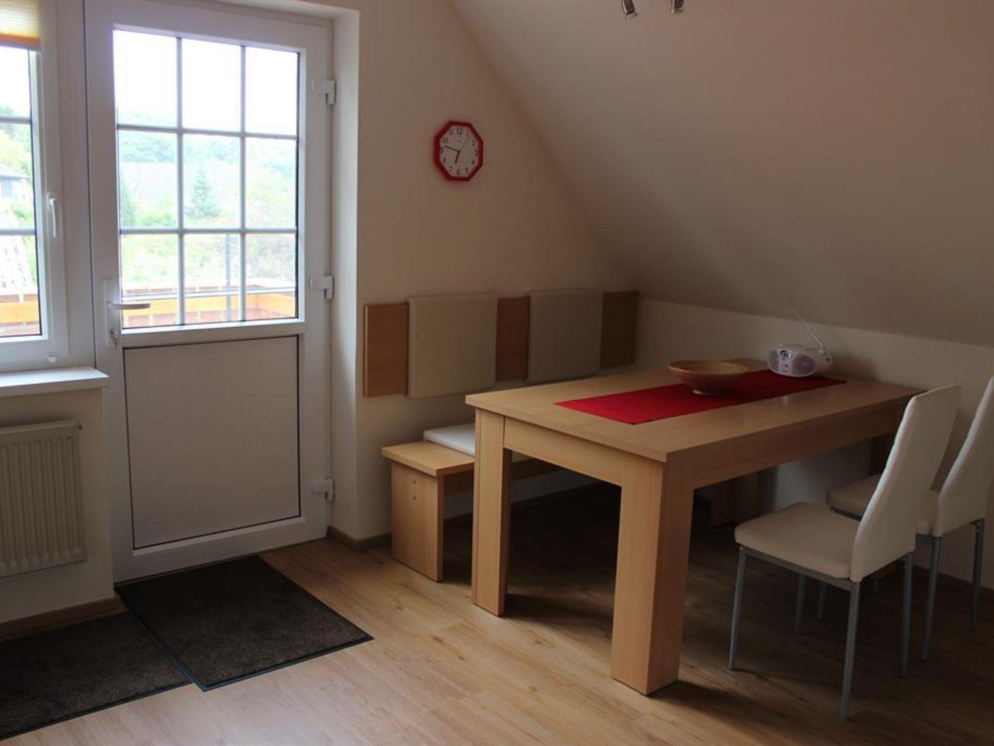 Die Ferienwohnung befindet sich im 1. Stock eines Einfamilienhauses. Zugang von Außen über eine separate Treppe an deren Ende ein Balkon von einer Größe von 2,5 x 3 Meter anschließt. Von dort ist die Wohnung zu betreten. Oben an der Treppe kann ein Türgitter angebracht werden. Im Eingangsbereich befindet sich eine Garderobe, eine Küchenzeile und eine Essecke. Ausserdem sind noch ein Wohnzimmer und ein Schlafzimmer vorhanden. Im Bad gibt es 2 Waschbecken, Toilette, Dusche und Badewanne. Haustiere sind nicht erlaubt. Es handelt sich um eine Nichtraucherwohnung.