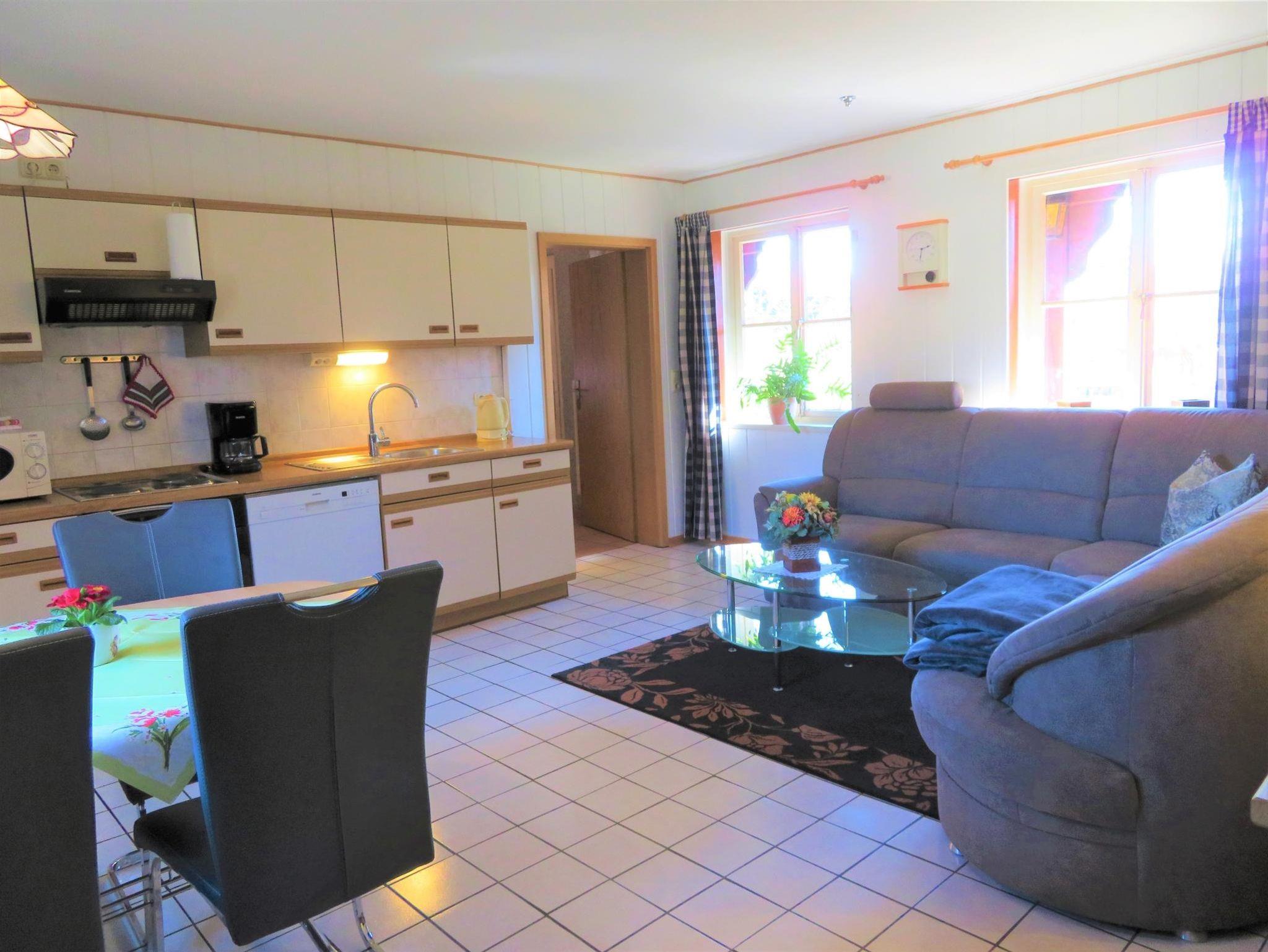 Die Ferienwohnung befindet sich im Anbau des Gästehauses über zwei Etagen.