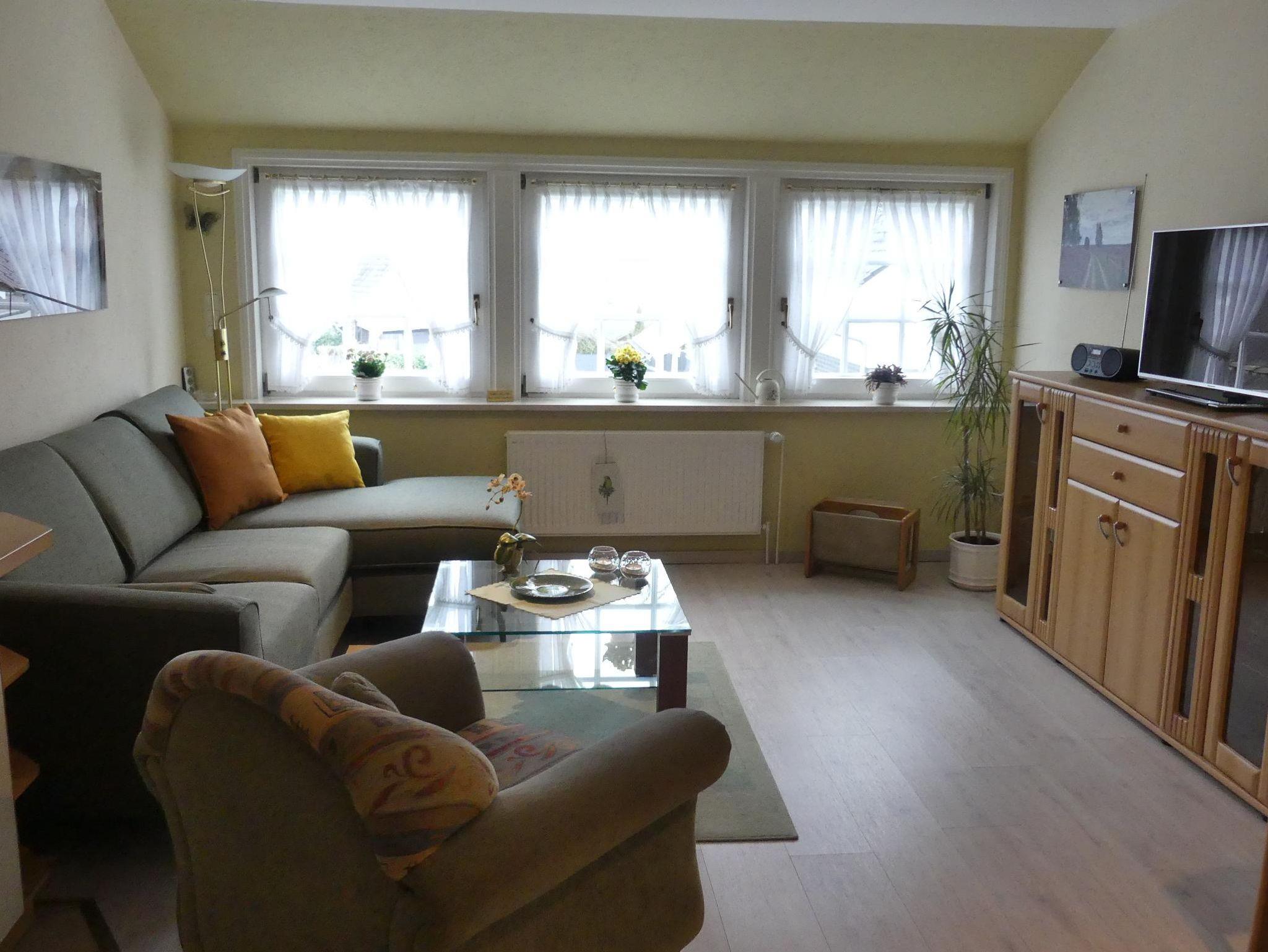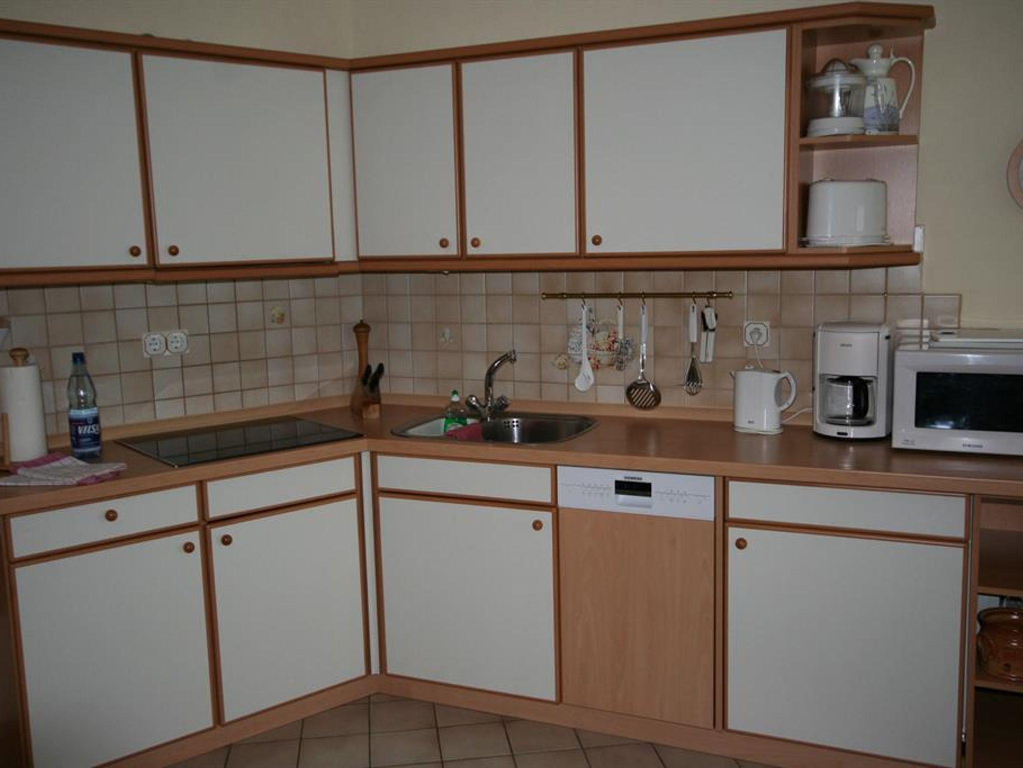 Ferienwohnung rechts ist ca. 62 qm groß und ist ebenfalls für 2 - 3 Personen bzw. für 2 Erwachsene und 2 Kinder ausgelegt. Sie besteht aus einem Wohn/Esszimmer mit angegliederter Küchenzeile, Flur, zwei Schlafzimmern und einem Bad. Ausstattung: LCD-Flachbild-TV digital, DVD-Player, Radio und W-LAN, Kühlschrank, Spülmaschine, 4-Zonen-Ceranfeld, Kombi-Mikrowelle mit Backofen, Kaffeemaschine, Wasserkocher, Toaster, Kaffee-Pad-Maschine, Küchenhandtücher, Spülmittel, Tabs, Müllbeutel + Reinigungsmittel und vieles mehr. Doppelbett 1,90 x 2,00 m Boxspringbett 1,40 x 2,00 m, Einbauschränken und Ablagen, Save, Dusche, Fön, Seife, Toilettenpapier + Kosmetikartikel
