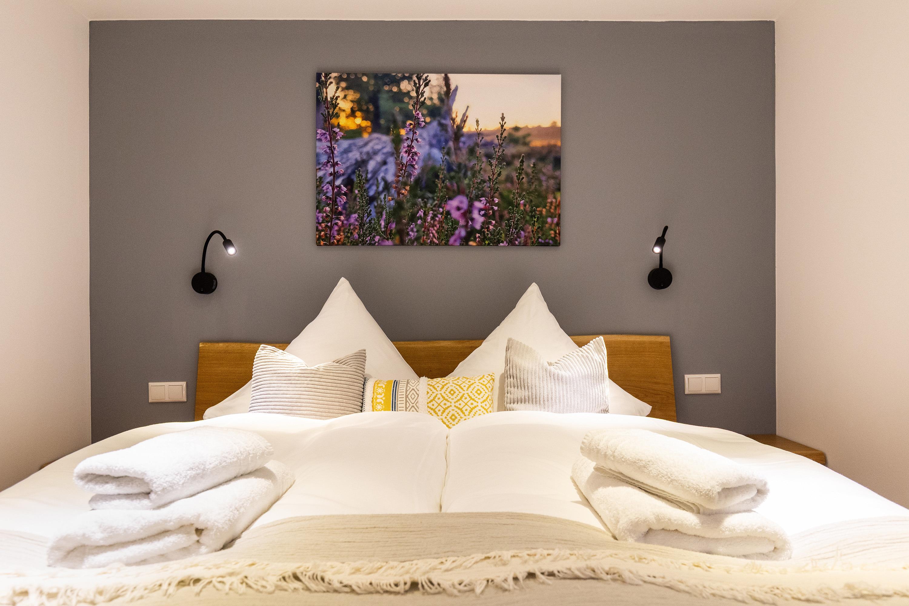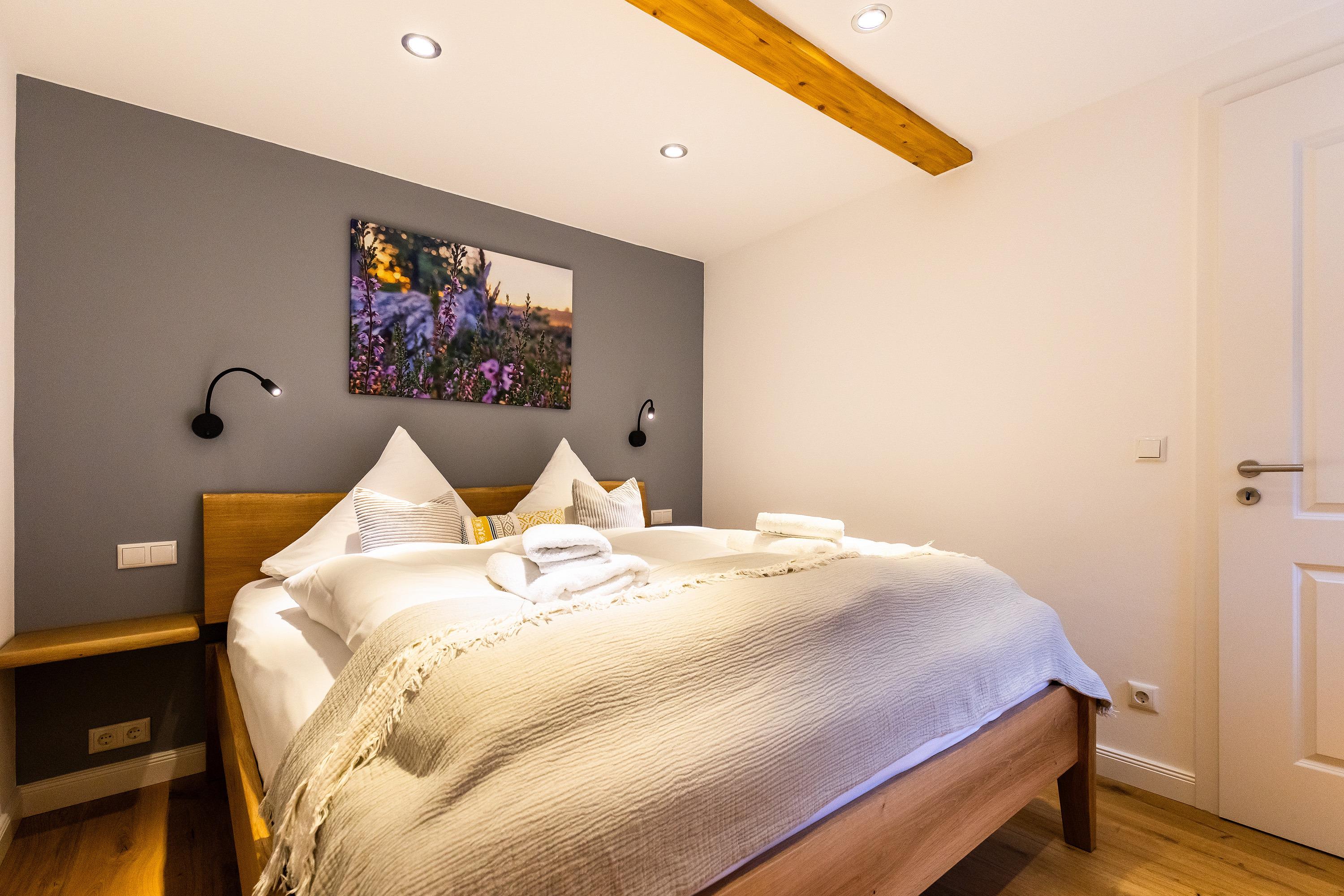 Unsere neuste Wohnung! Sie liegt hofmittig direkt neben dem Hofladen. Liebevoll im modernen Landhausstil eingerichtet mit Fußbodenheizung, ebenerdiger Glasdusche, großem Holzbalkon, Markise und Blick in den Garten. Sie bietet Platz für 2 Personen und es gibt eine hochwertige Schlafcouch im Wohnzimmer.