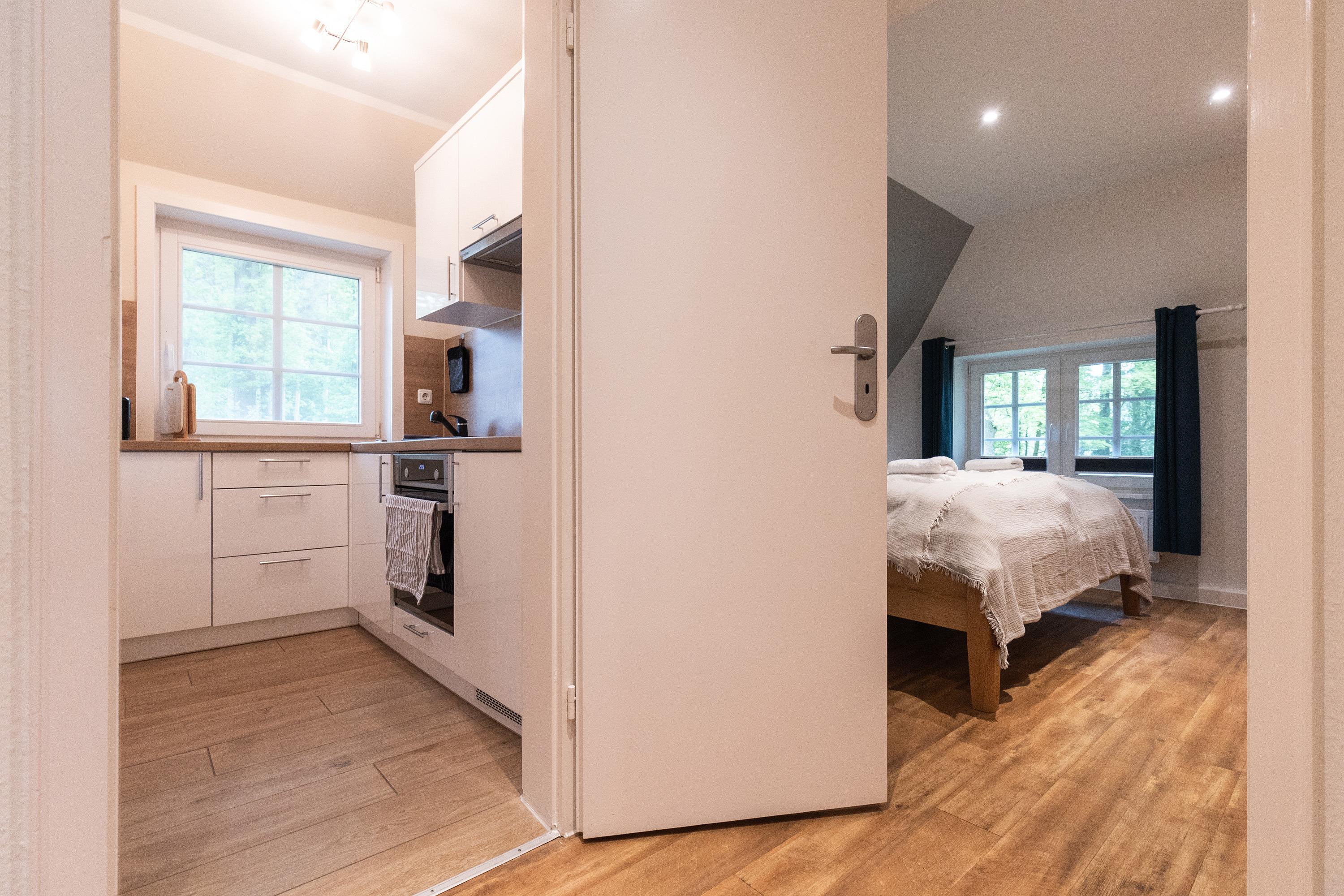 Das Fachwerkhaus war der alte Kuhstall des Hofes, der Anfang der 70er Jahre von der Hofmitte ab- und hier wiederaufgebaut wurde. Anfangs ungenutzt, sind hier seit 1974 vier Ferienwohnungen beheimatet die liebevoll im Landhausstil eingerichtet sind und regelmäßig renoviert werden. Die Wohnungen unten bieten je Platz für bis 6 Personen mit Nutzung Schlafcouch, und die gemütlichen oberen Wohnungen je bis 4Personen mit Nutzung Schlafcouch. Zur Verfügung stehen 2 Terrassen sowie ein Garten mit ausreichend Sitzmöglichkeiten. Parkplätze befinden sich direkt vor dem Haus.