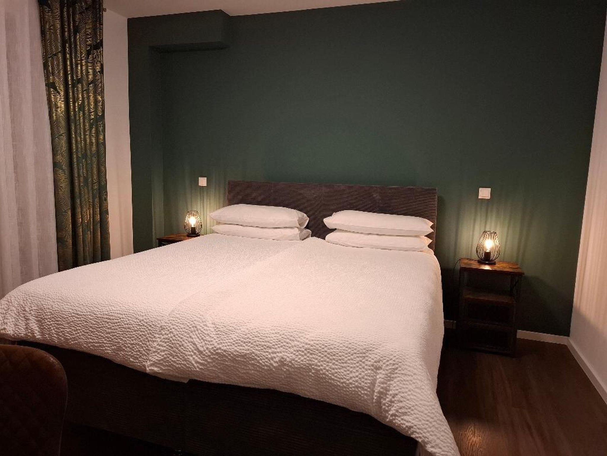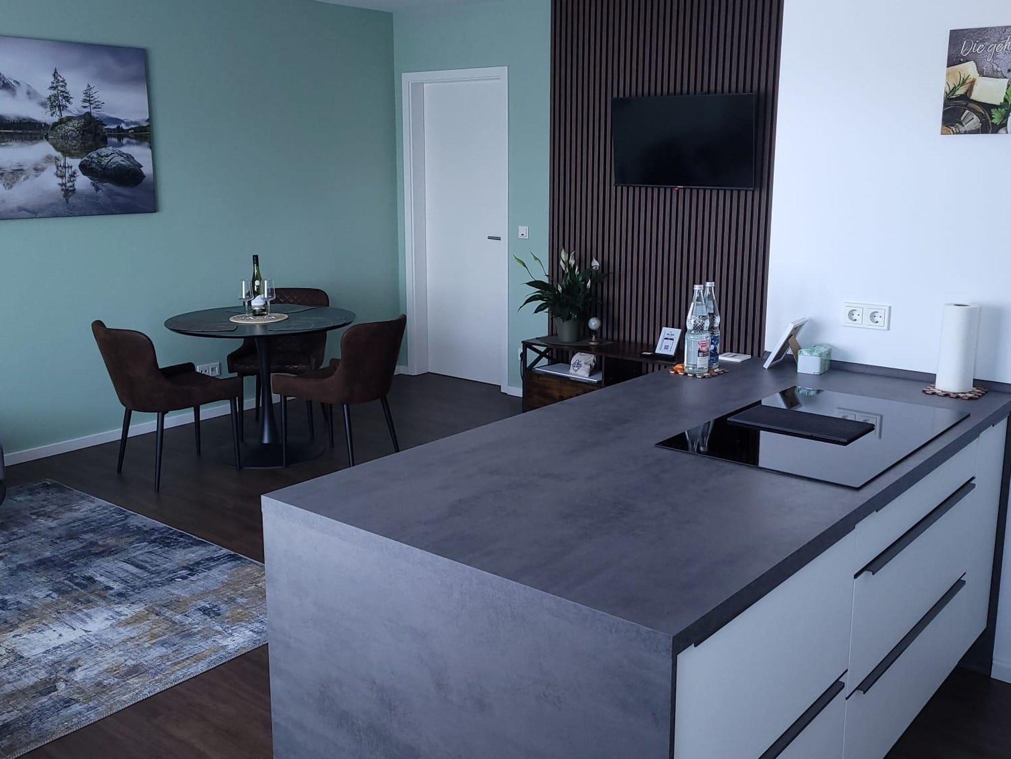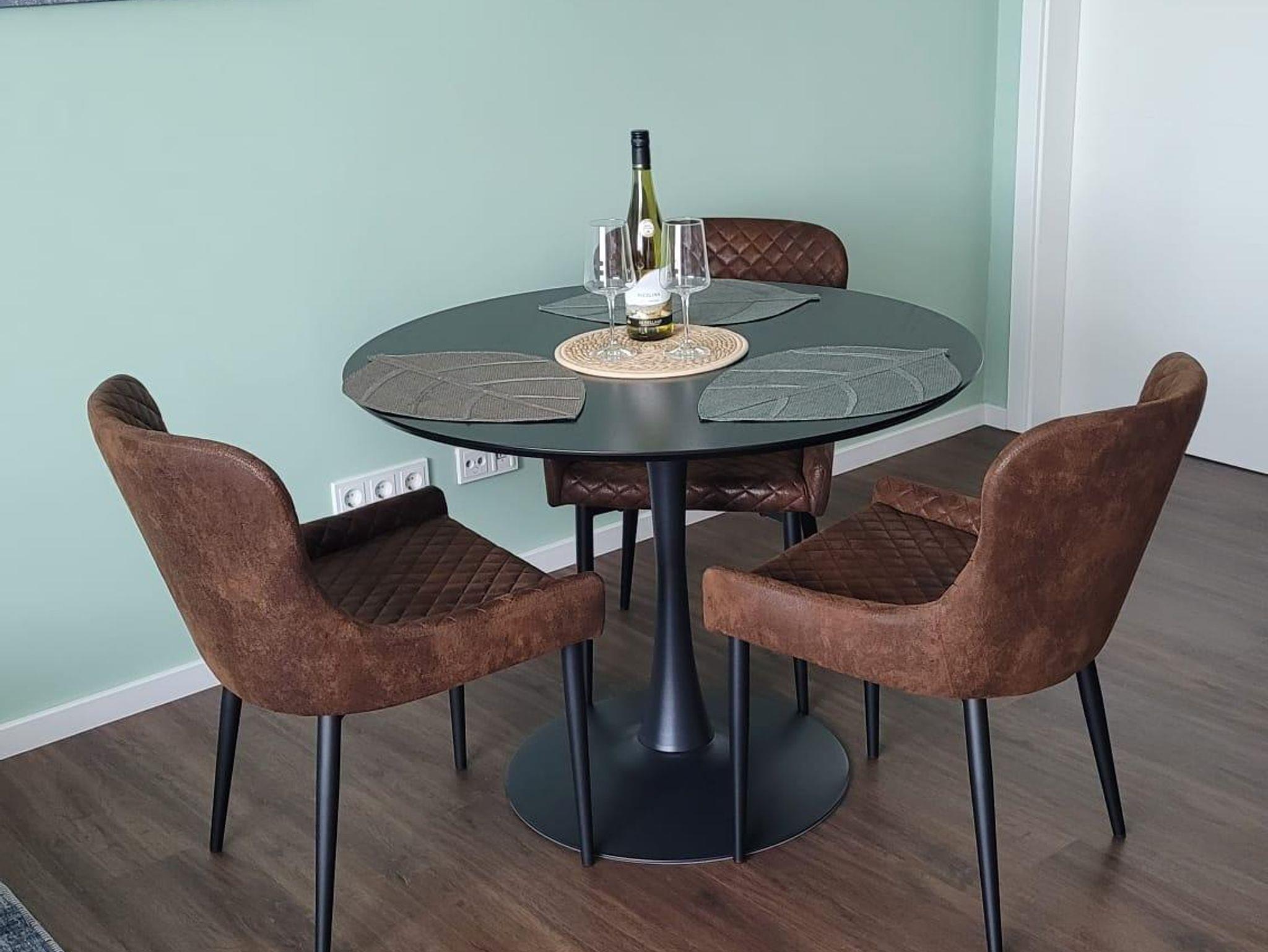 Die Wohnung befindet sich im Obergeschoss und verfügt über insgesamt 76 qm. Ein großes Schlafzimmer mit bequemem Boxspringbett, ein gemütliches Wohnzimmer mit Smart Tv , Couch (als Schlafcouch für einen Gast nutzbar), Esstisch und dazu eine voll eingerichtete Küche mit Backofen, Mikrowelle, Induktionsherd, Kühl- und Gefrierschrank, Wein-Kühlschrank, Geschirrspüler, Kaffeemaschine und Kochwasser.