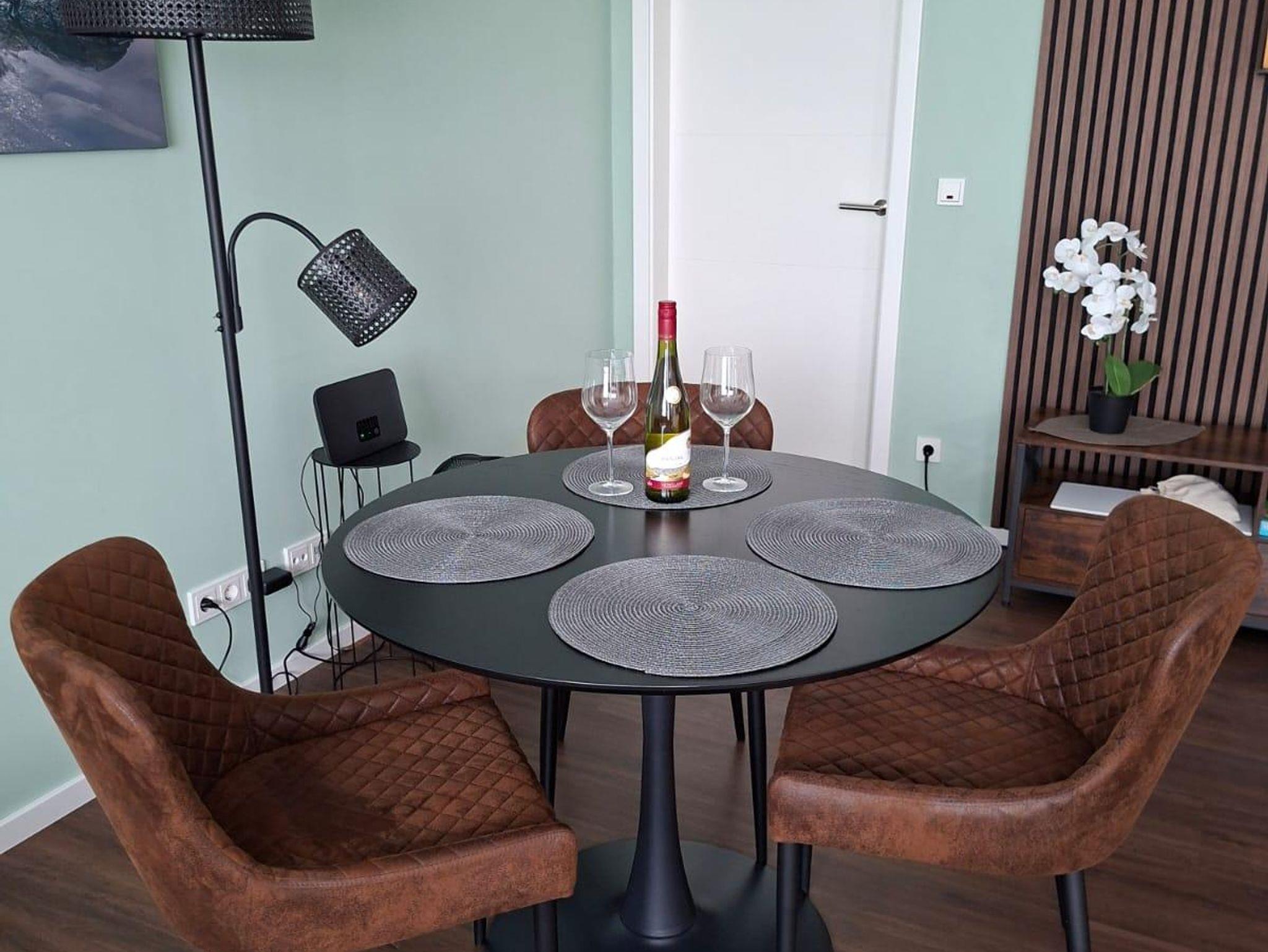 Die offene Küche ist komplett ausgestattet mit hochwertigen Geräten, sodass Sie Ihre Lieblingsgerichte zubereiten können, während der Essbereich genügend Platz für gesellige Abende bietet. In dem komfortablen Schlafzimmer können Sie nach einem erlebnisreichen Tag in der Umgebung entspannen und neue Energie tanken. Frische Bettwäsche und ein ruhiger Schlafbereich sorgen für erholsame Nächte.