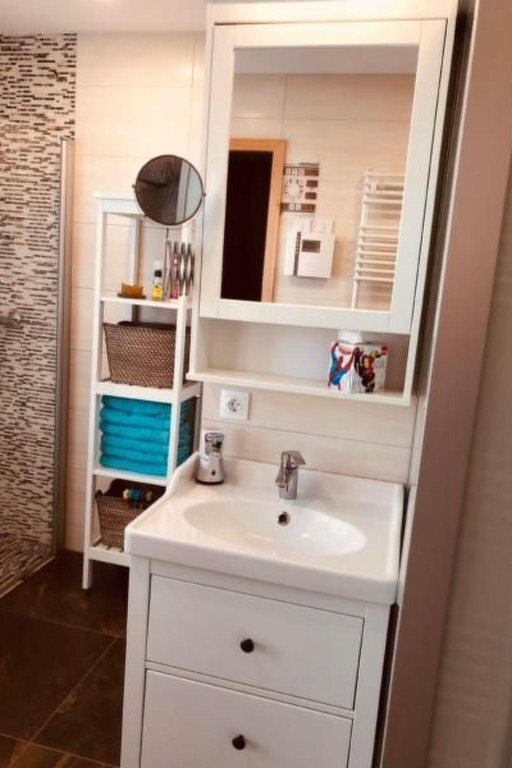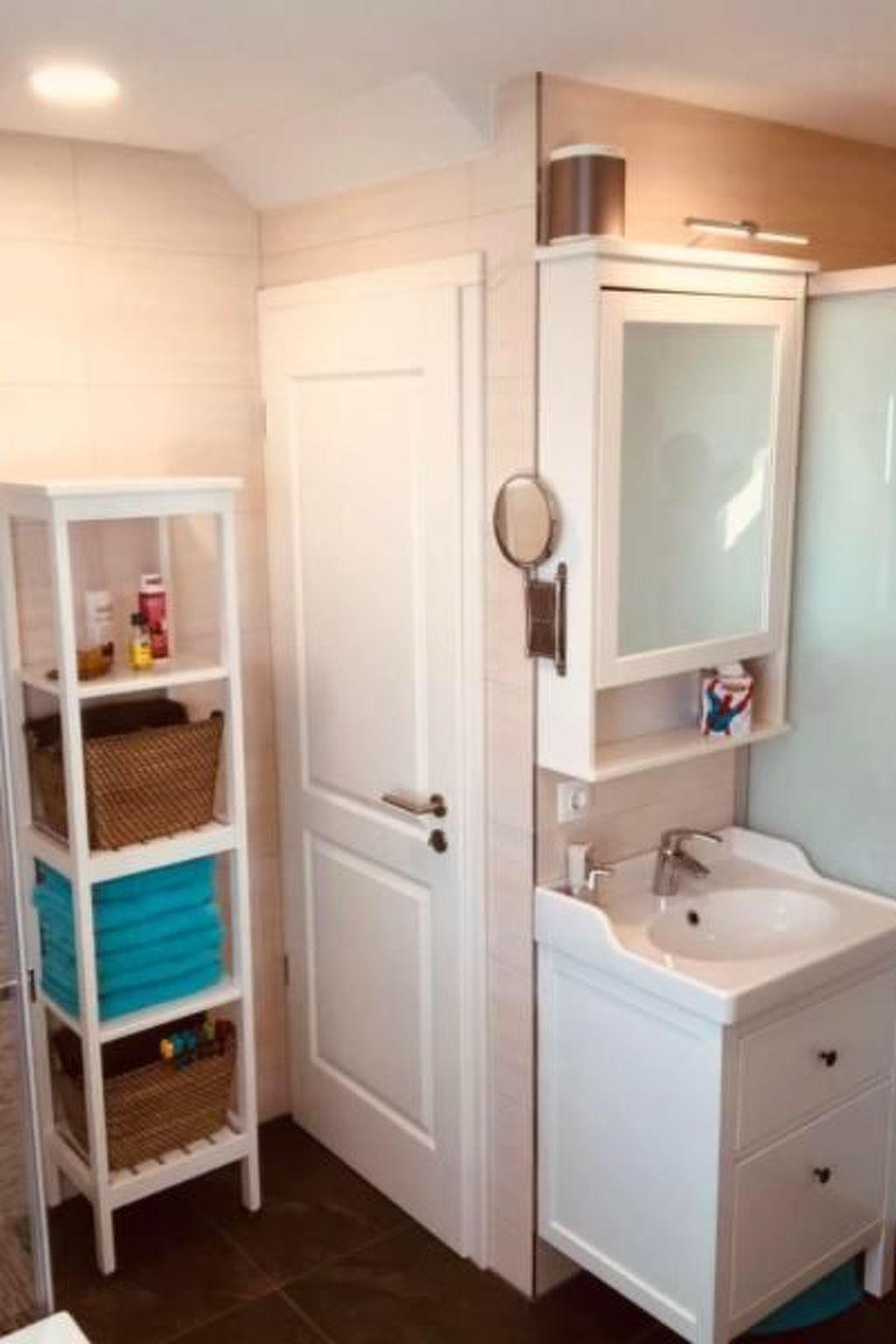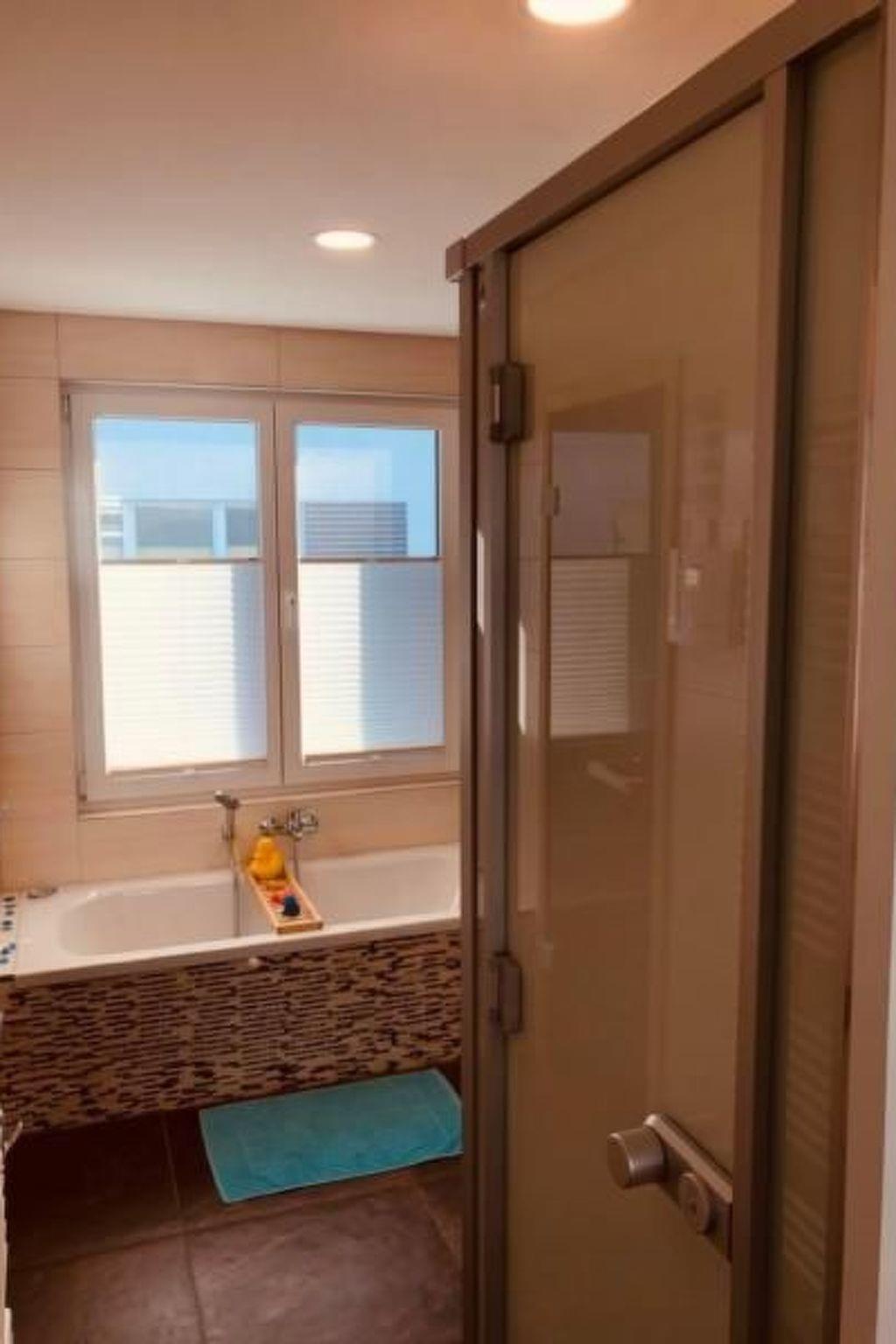 The large, modern tiled bathroom with XL shower cubicle, bathtub with a view of the lake, washbasin and separate WC cubicle offers every conceivable comfort. The Finnish sauna has a mirrored window with a marvellous view of the water.