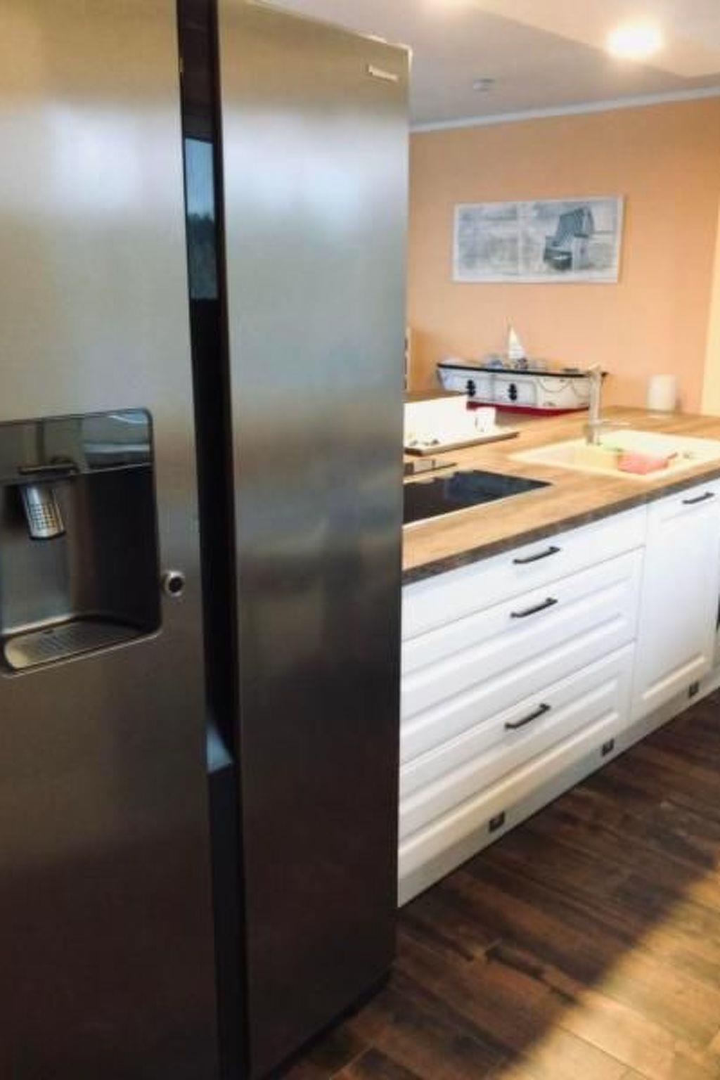 The spacious eat-in kitchen with plenty of storage space is located on the same level. There is plenty of space for provisions in the large double-door fridge. It also has an integrated ice cube, crushed ice and water dispenser. Induction hob, microwave oven, dishwasher and coffee machine are of course available. The large 3-piece dining table offers plenty of space and can be moved apart as required.